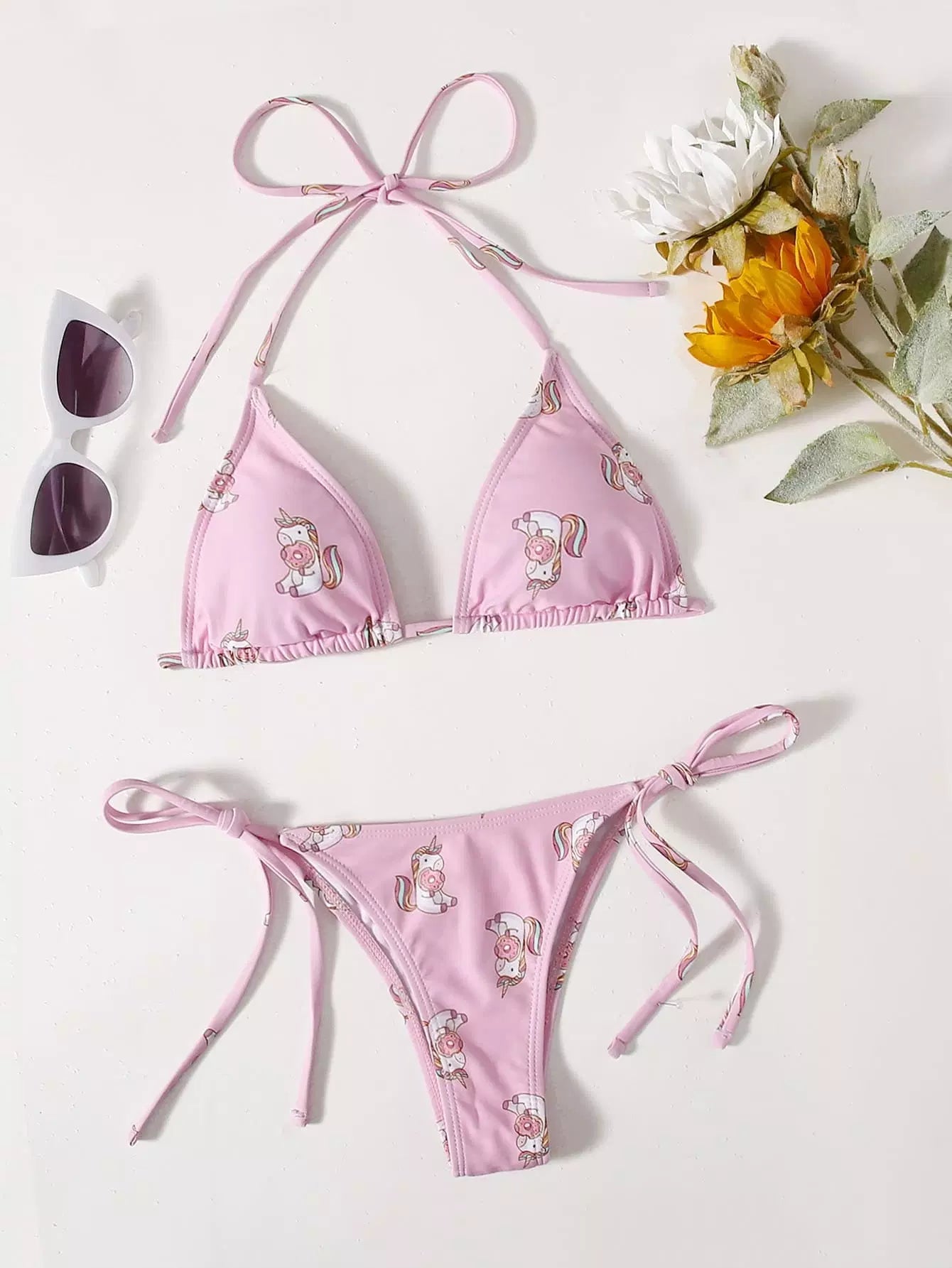 Unicorn Print Triangle Thong Bikini Swimsuit