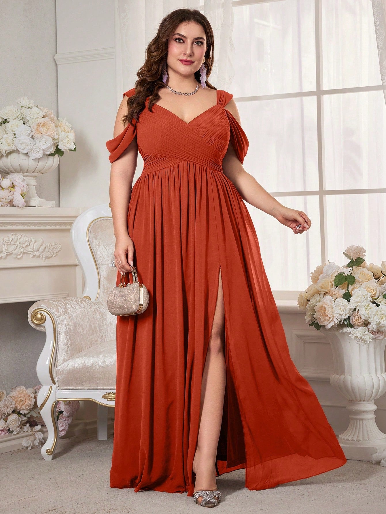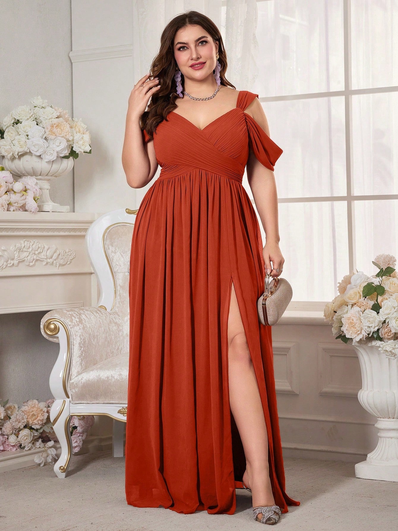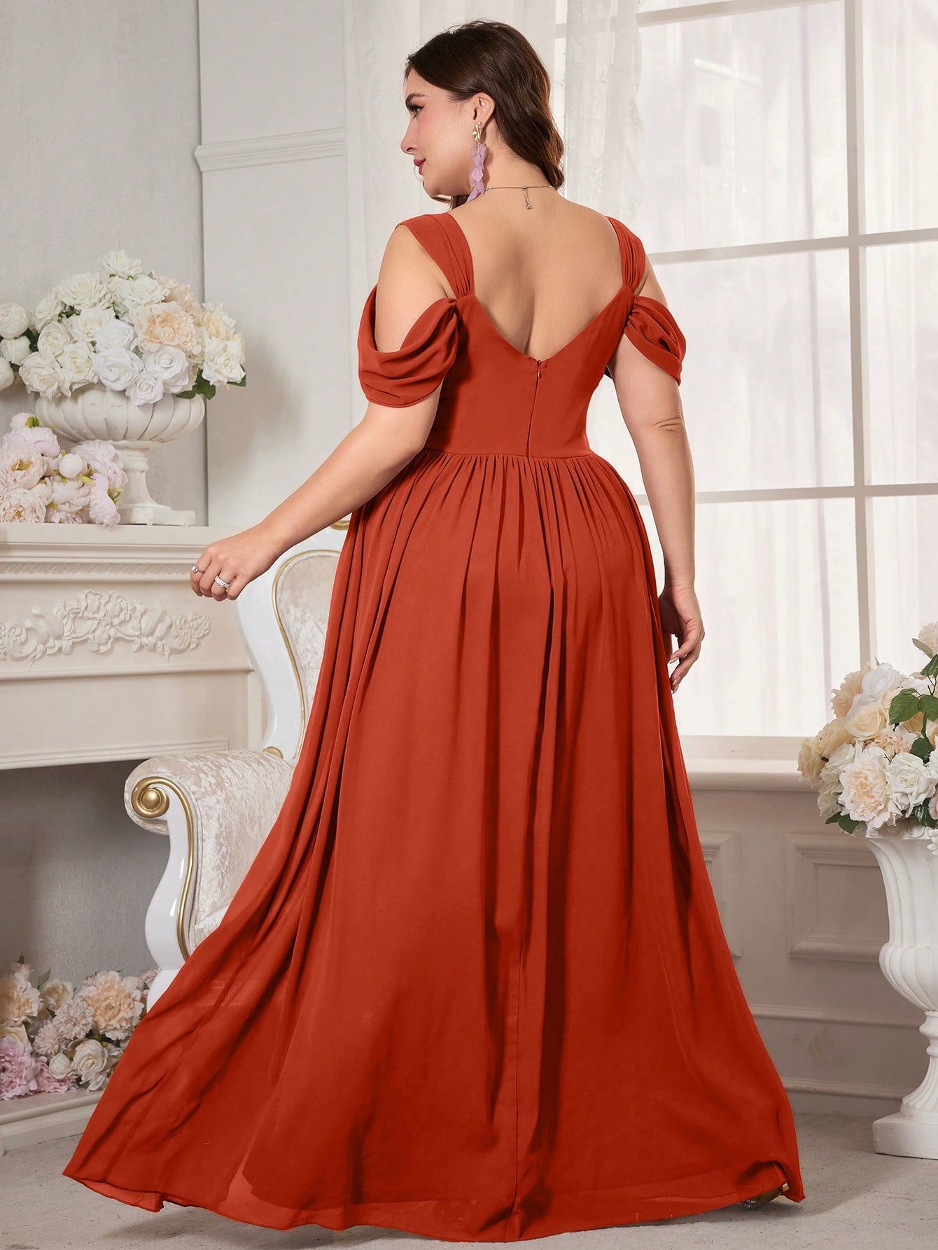 UNITHORSE Plus Size Women's Off-Shoulder Short Sleeve Chiffon Bridal Dress