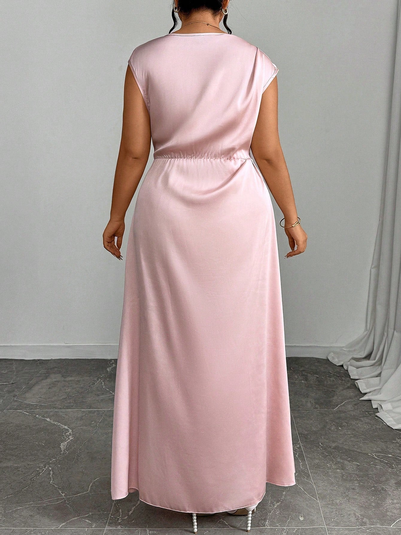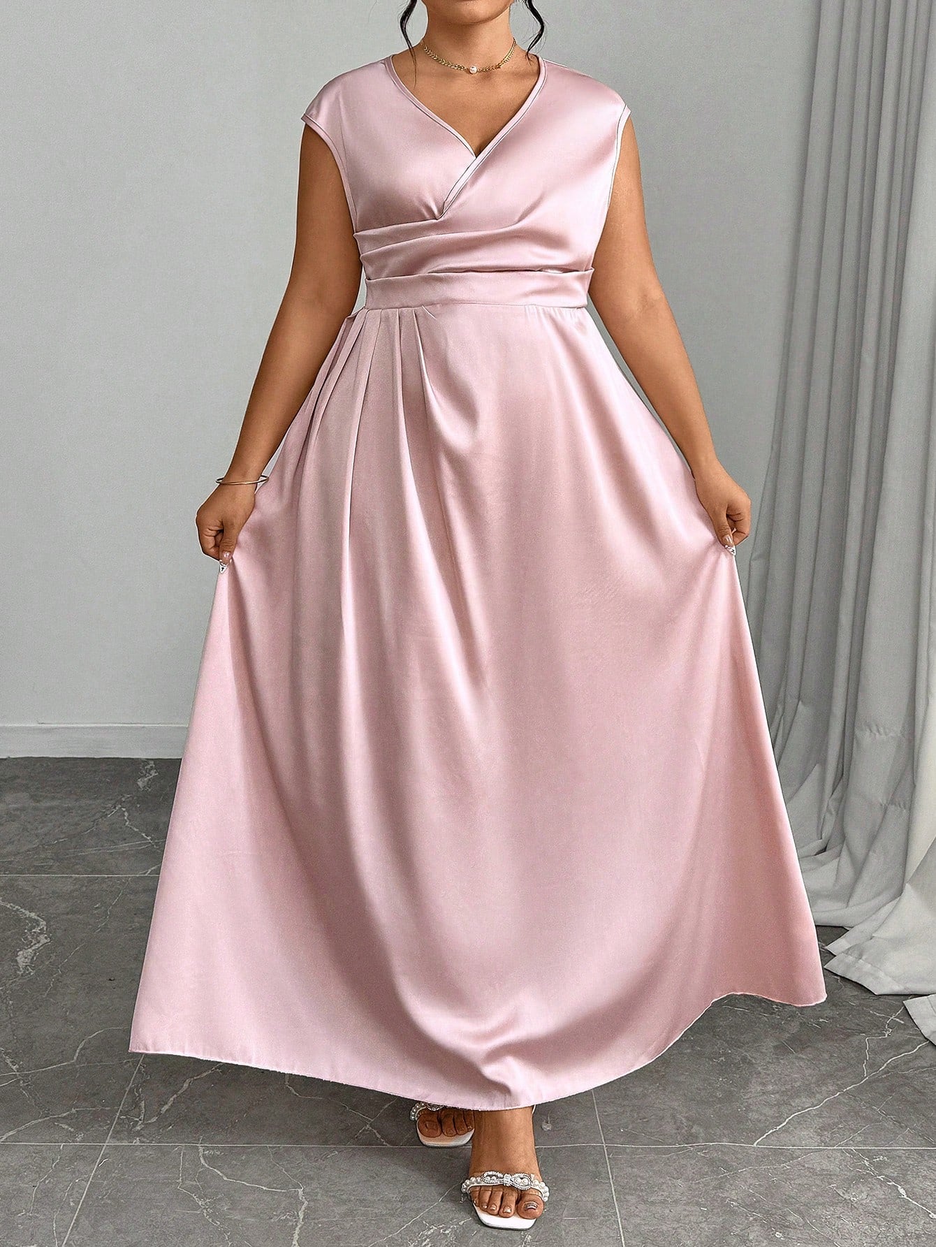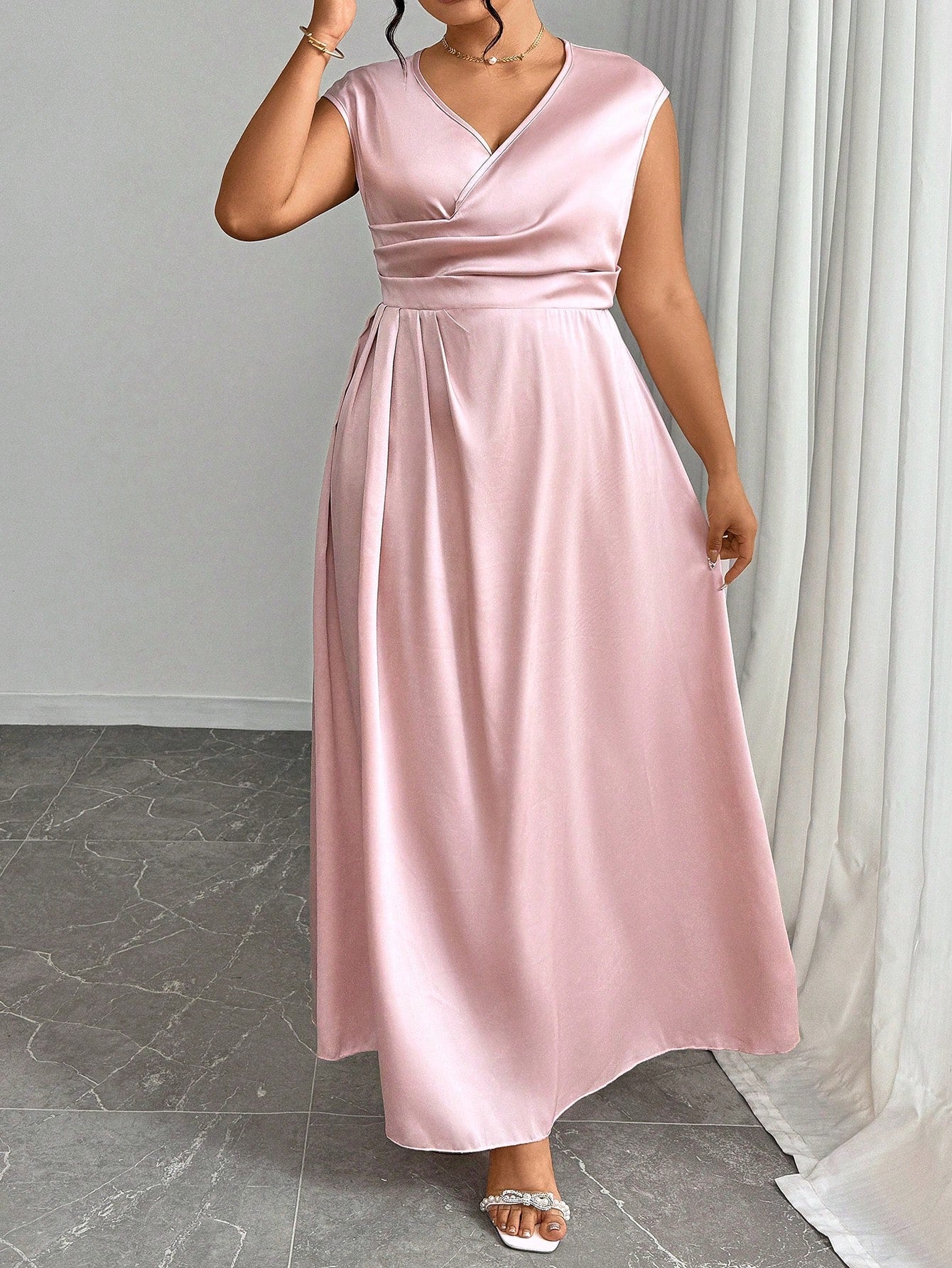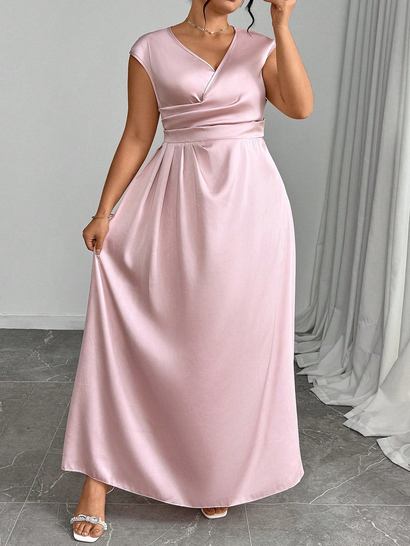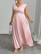 Unity Plus Size Women V-Neck Crossed Pleated Elegant Dress