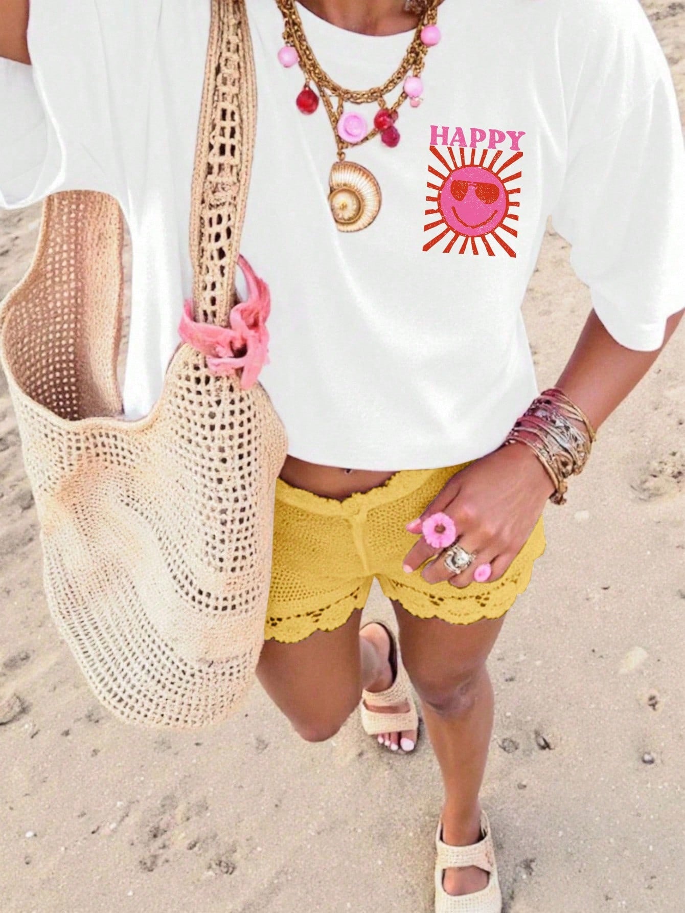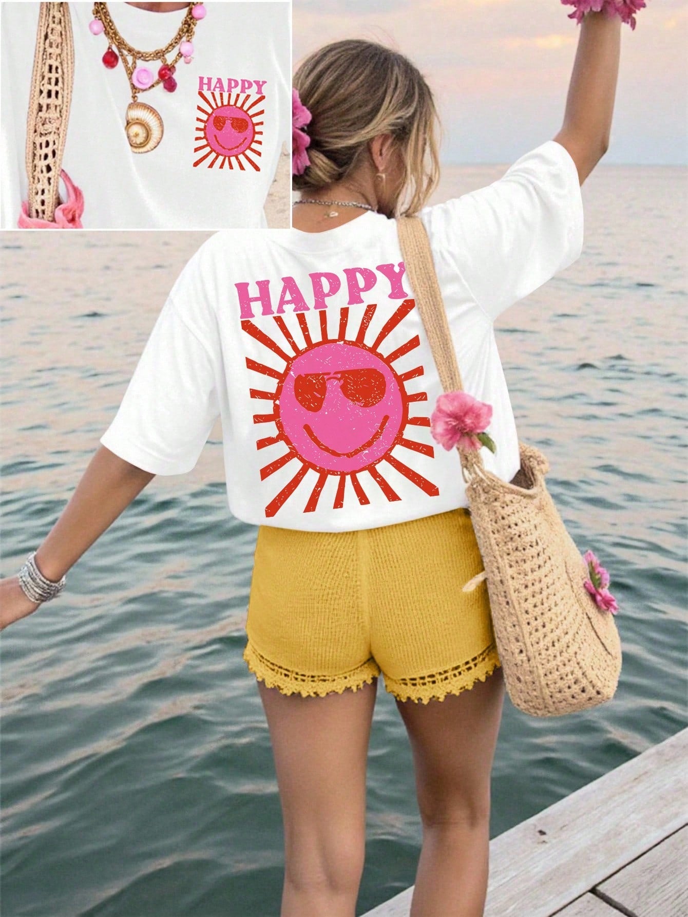 Unity Women's Leisure Vacation Sun Printed Short Sleeve T-Shirt
