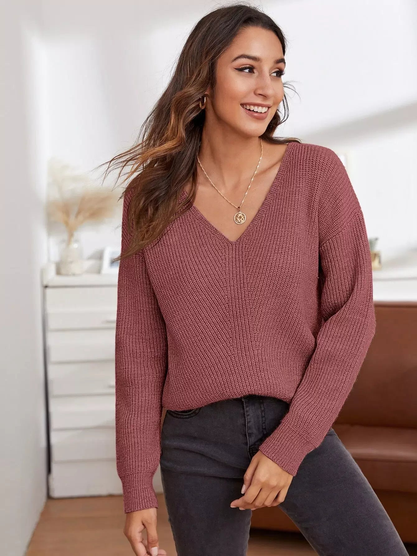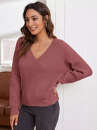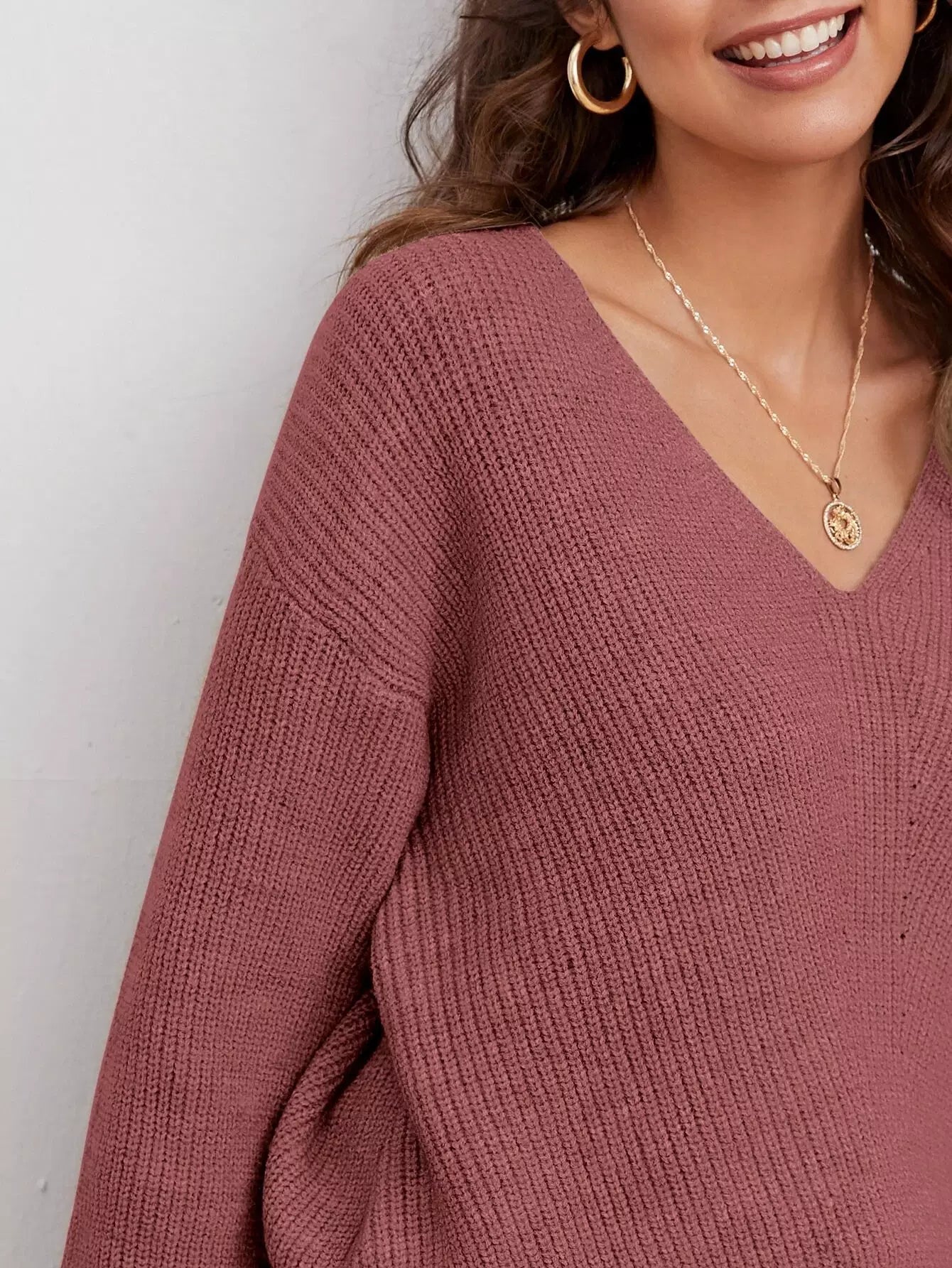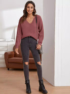 V Neck Drop Shoulder Sweater