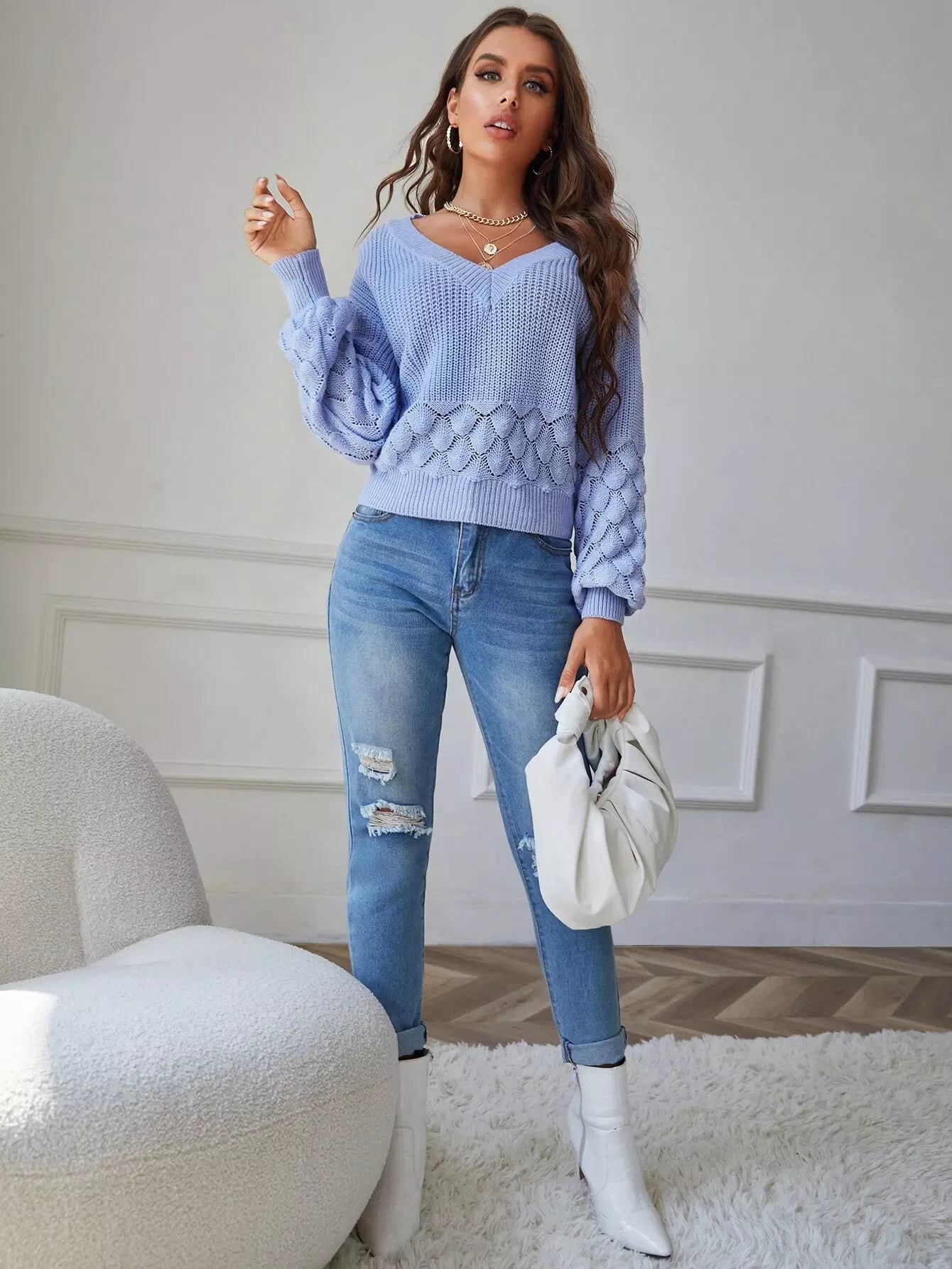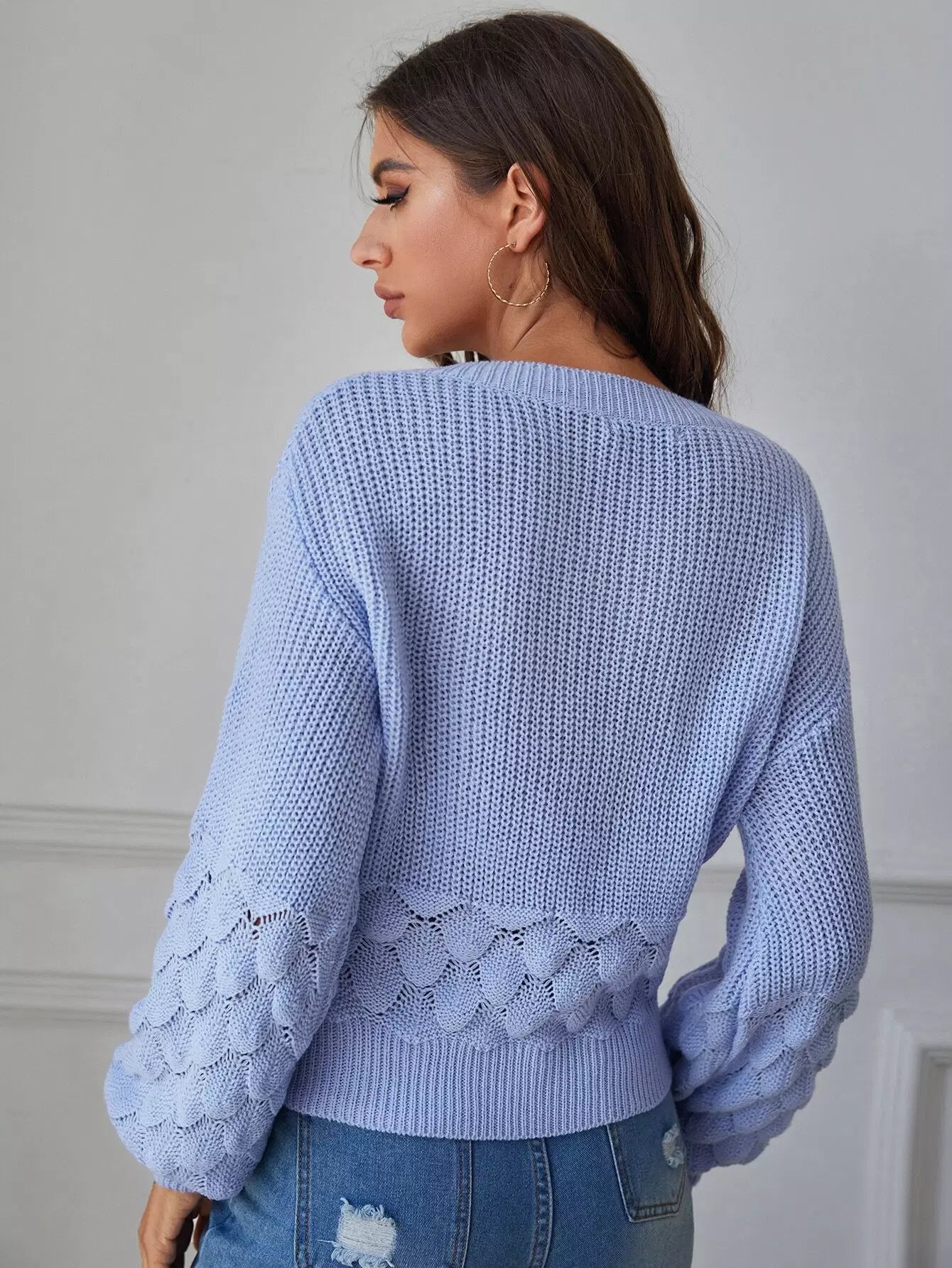 V Neck Drop Shoulder Sweater