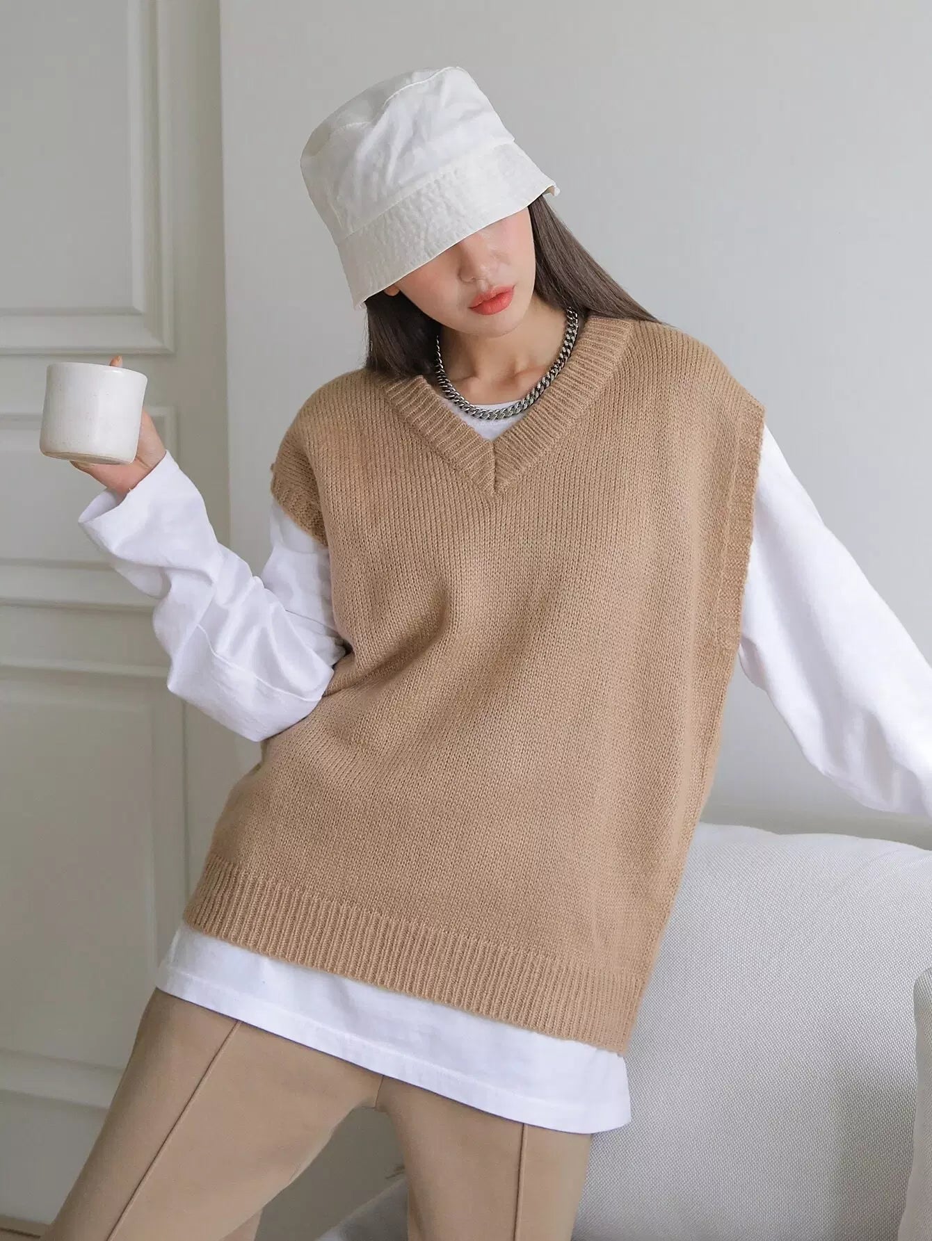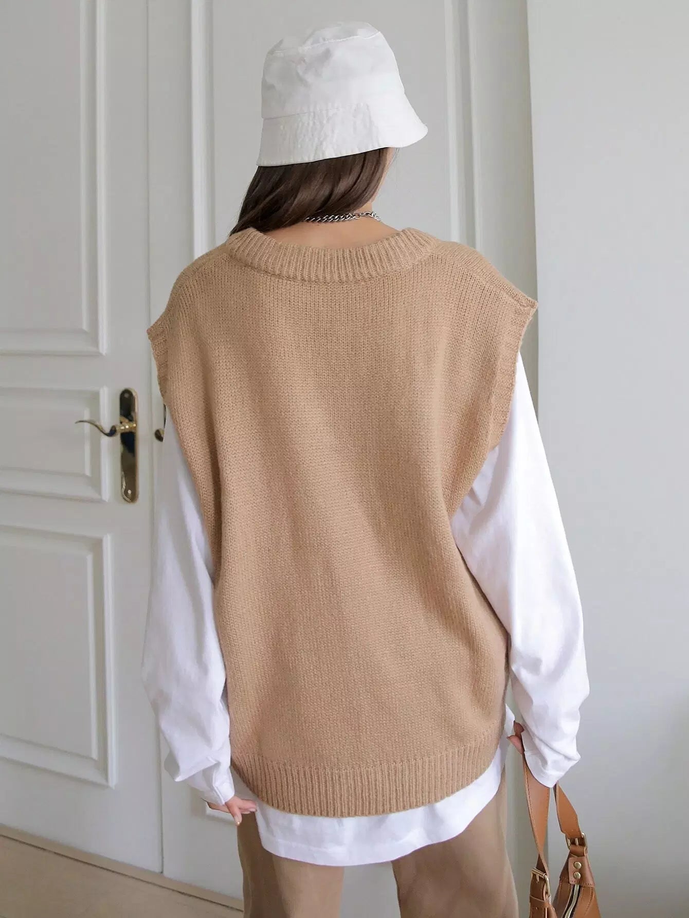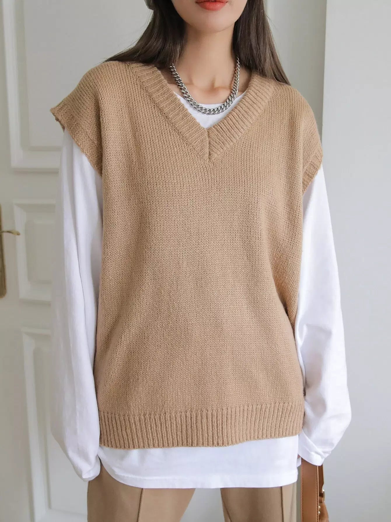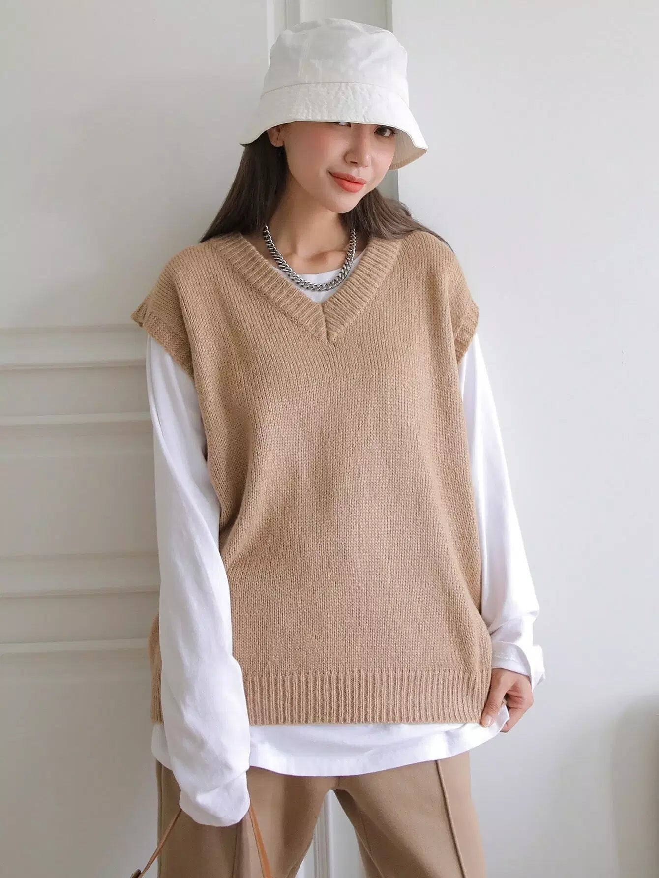 V-neck Ribbed Knit Sweater Vest Without Tee