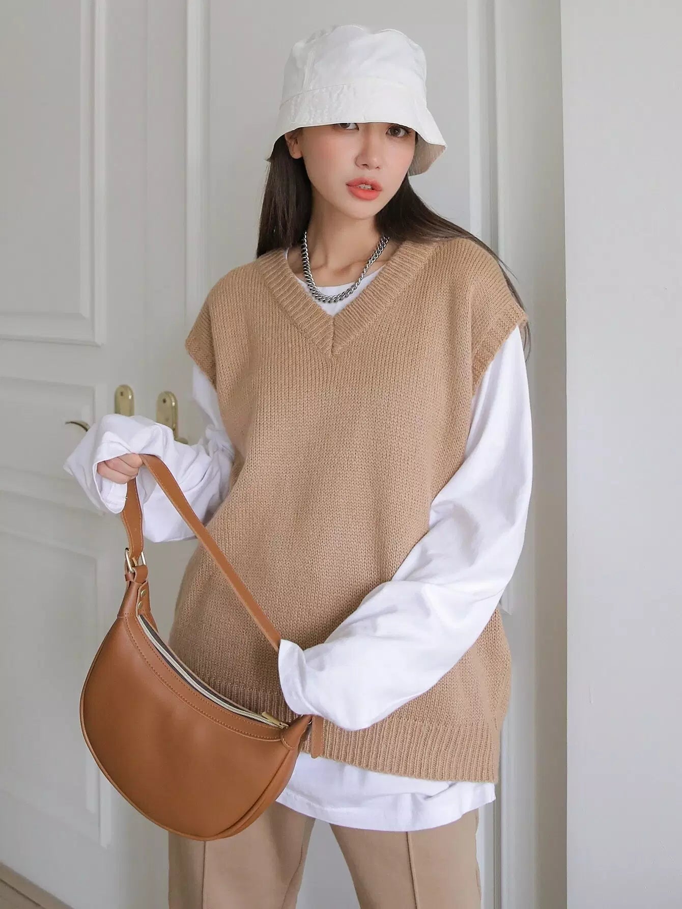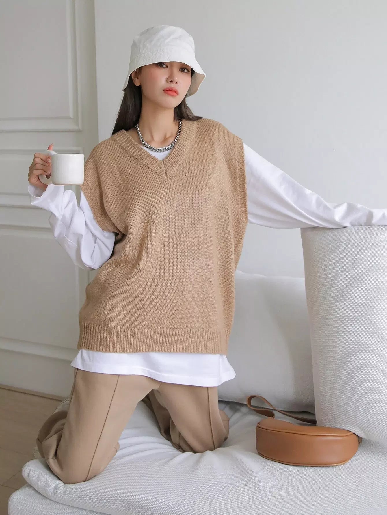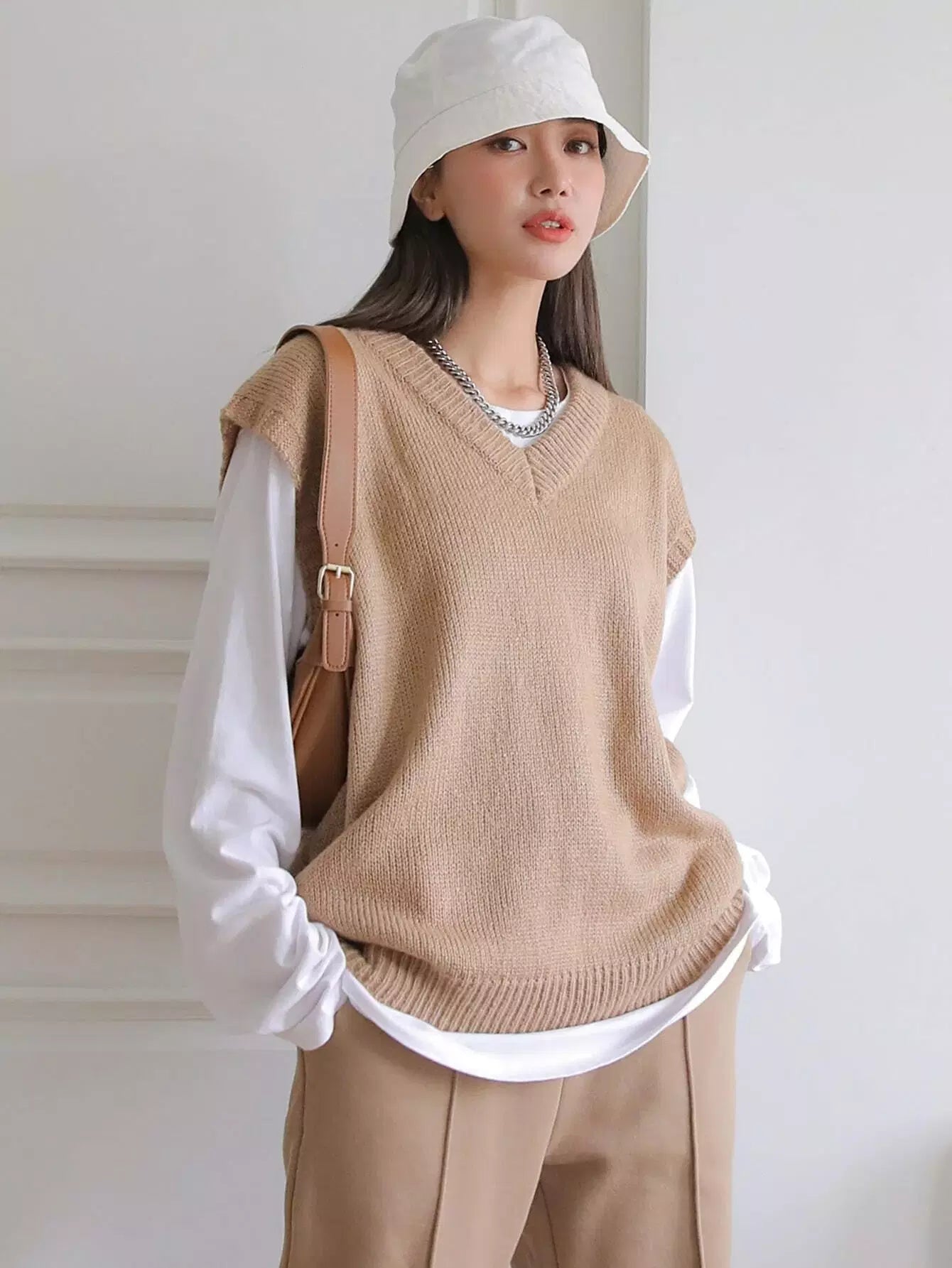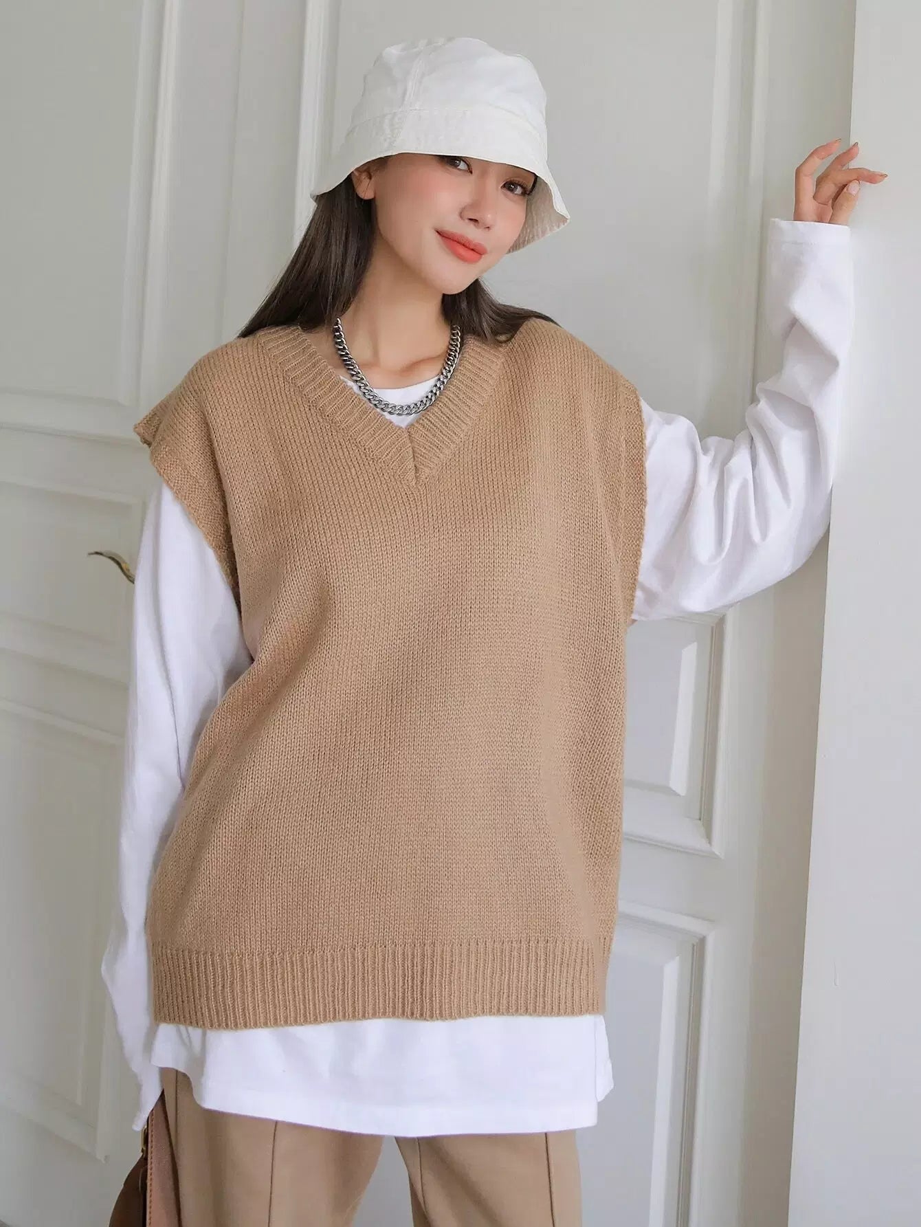 V-neck Ribbed Knit Sweater Vest Without Tee