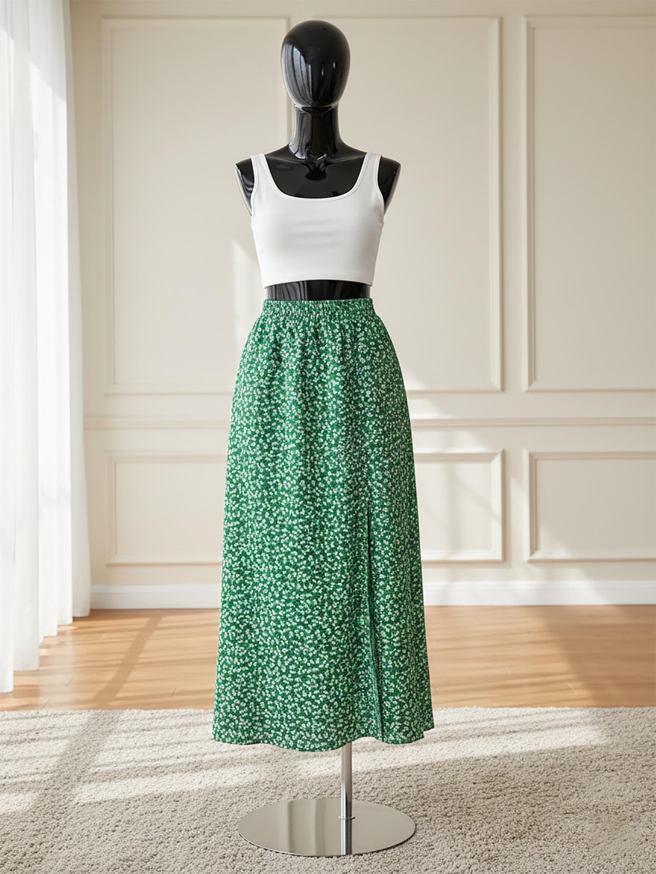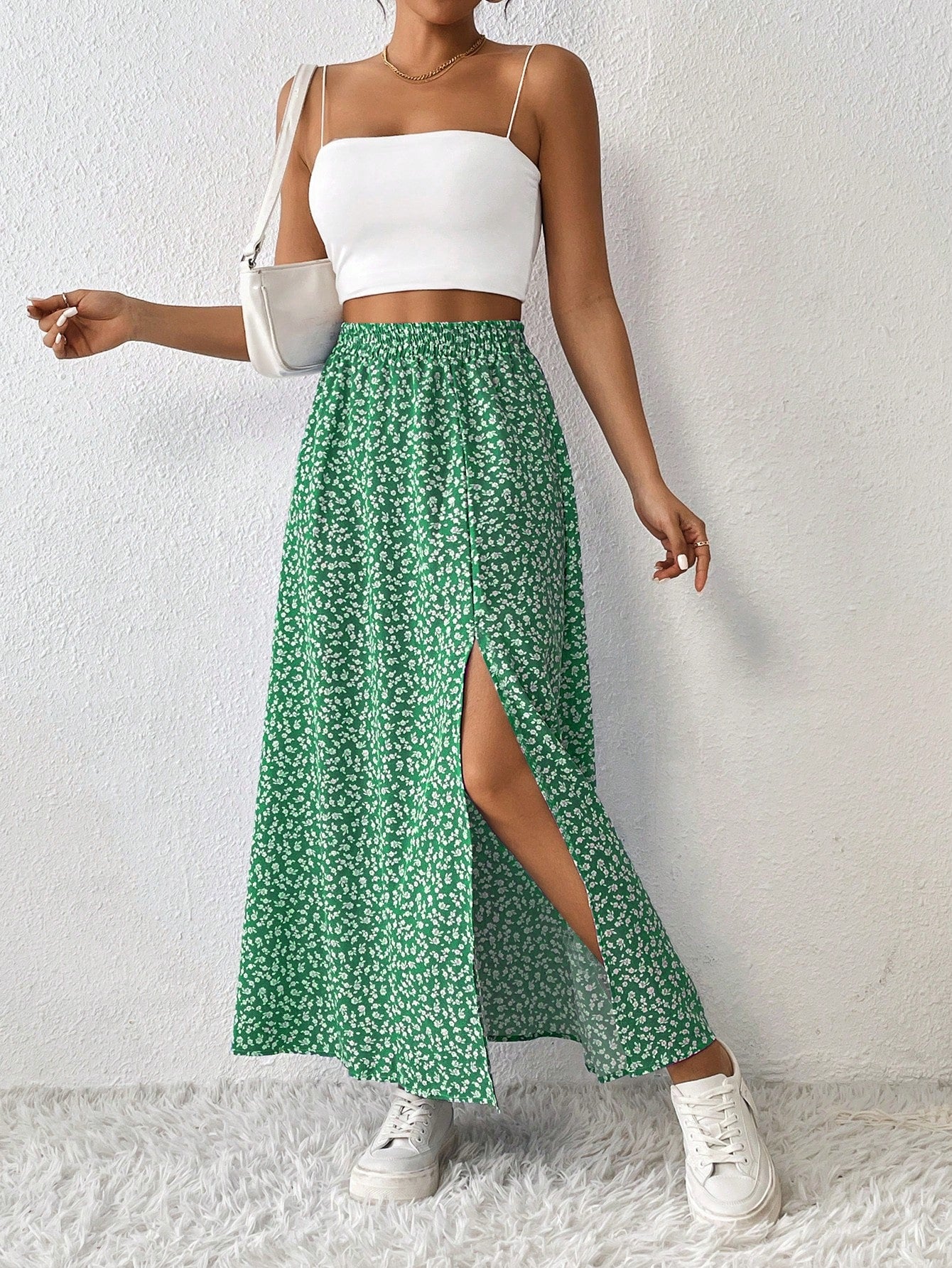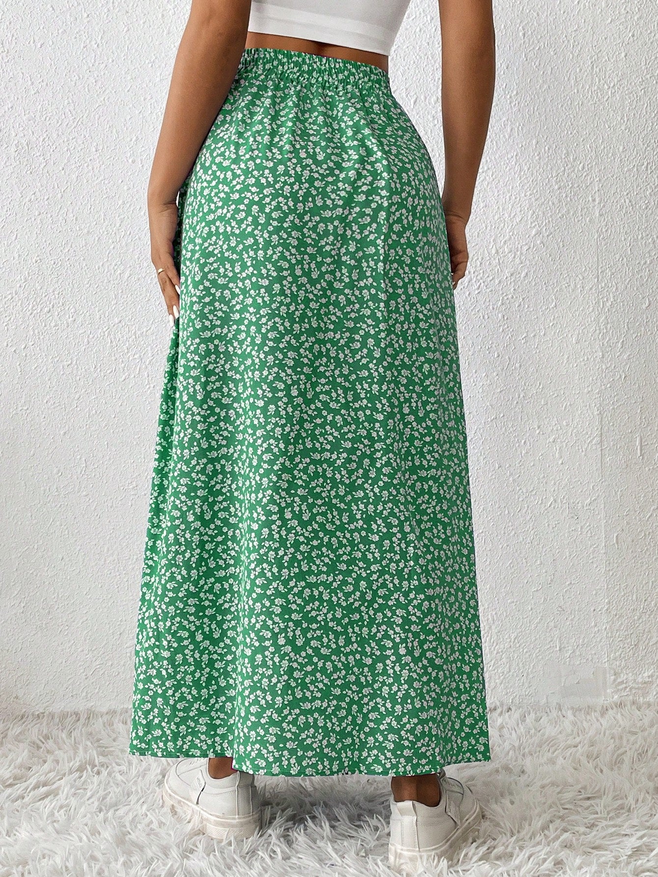 VCAY Plus Size Women High Slit Ditsy Floral Casual Skirt