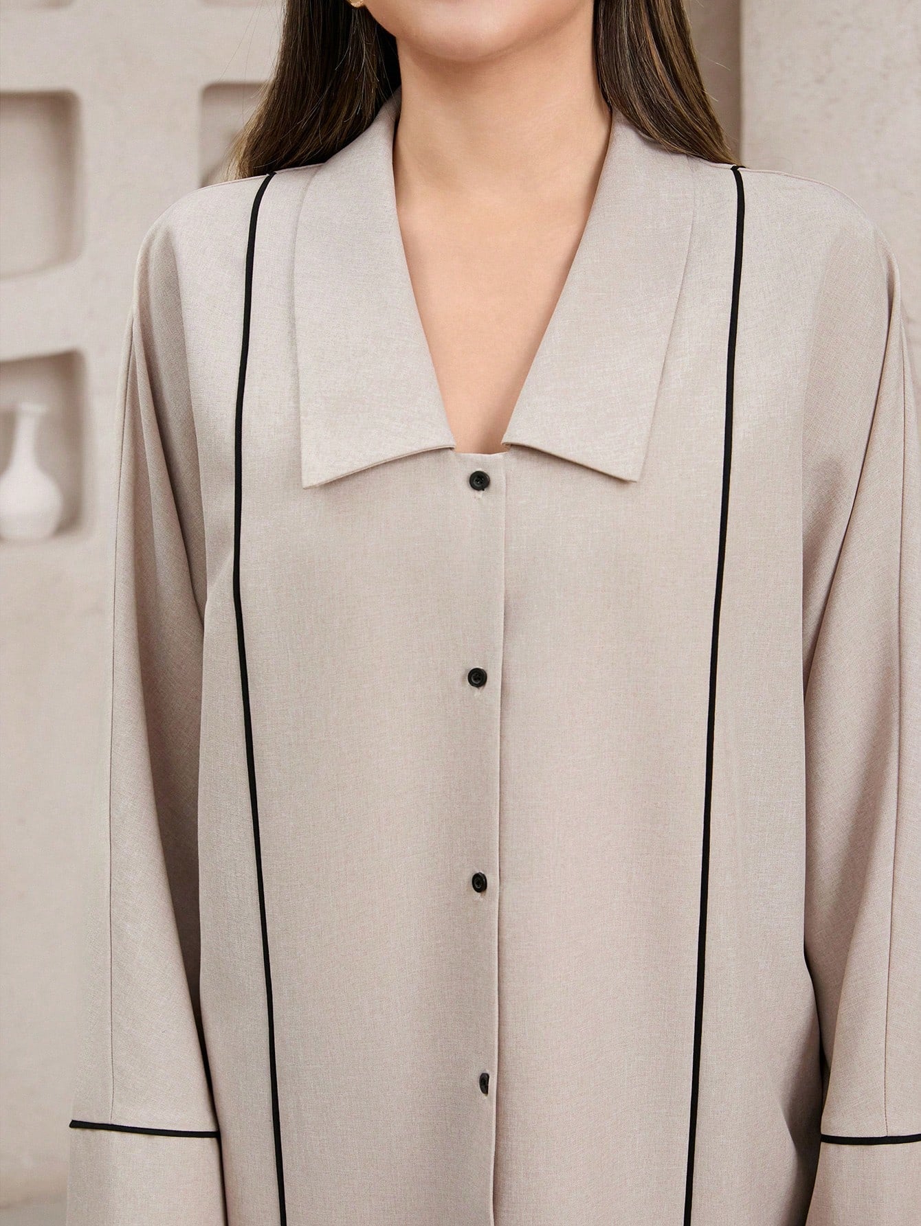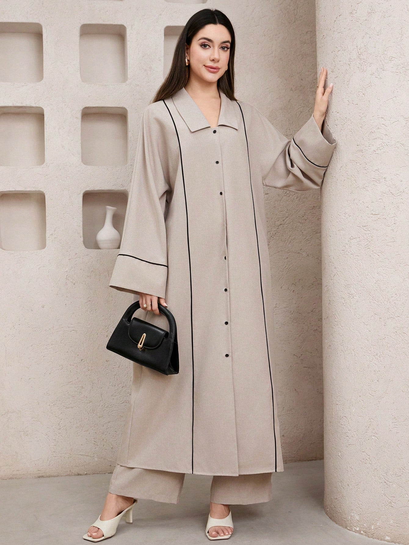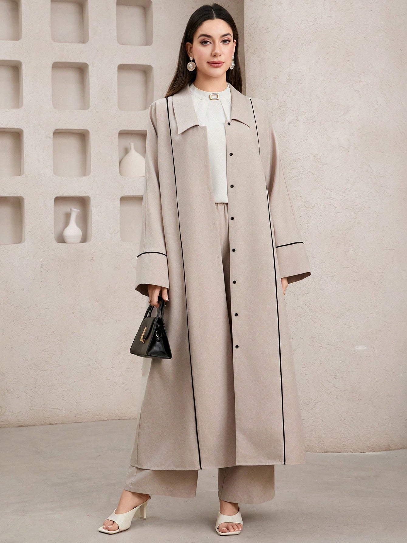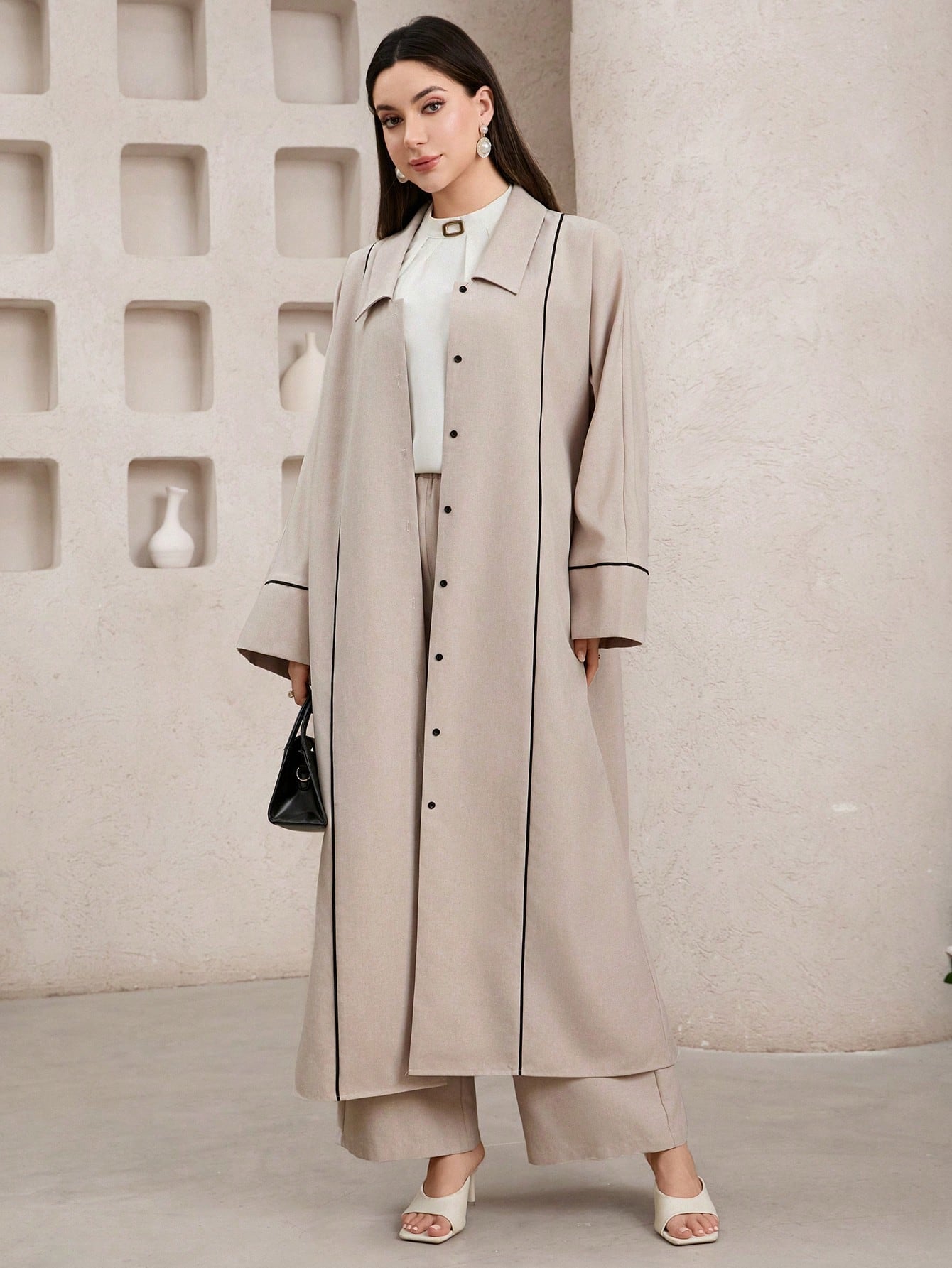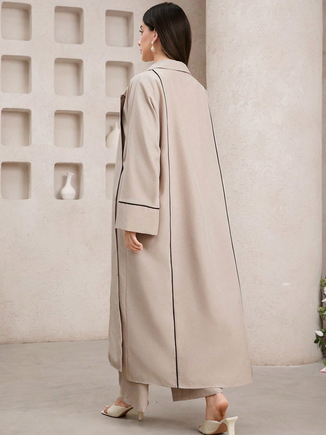 Veilorie Women's Single-Breasted Long Sleeve Robe And Pants Arabic Style Outfit Travel Work Suits For