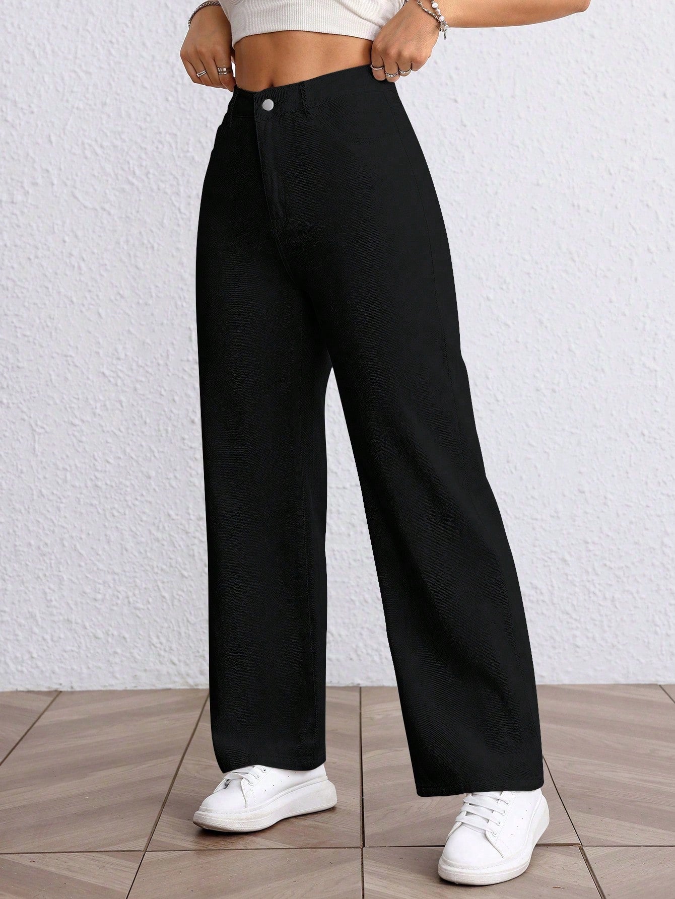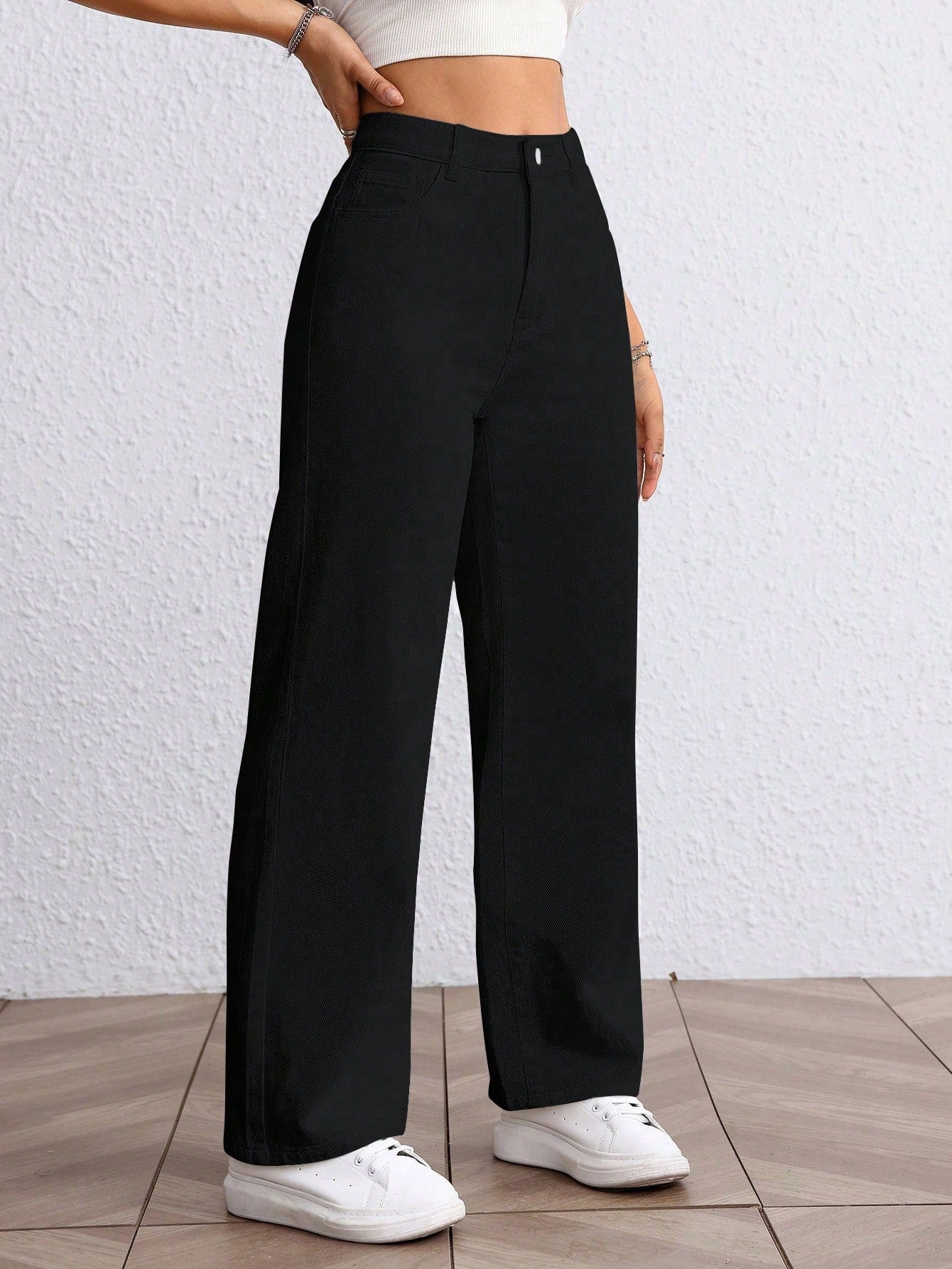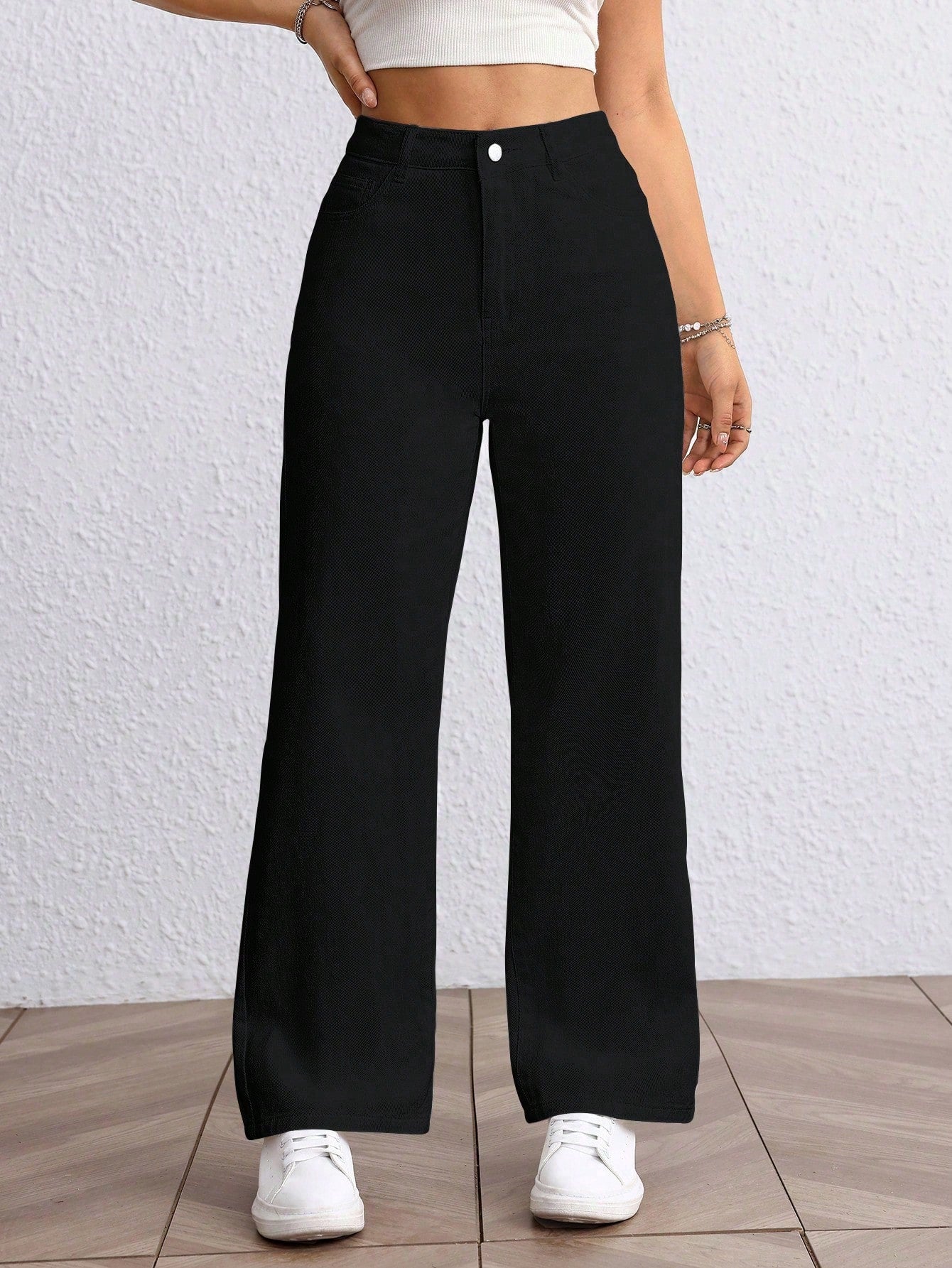 Versatile Solid Color High Waist Straight Leg Jeans