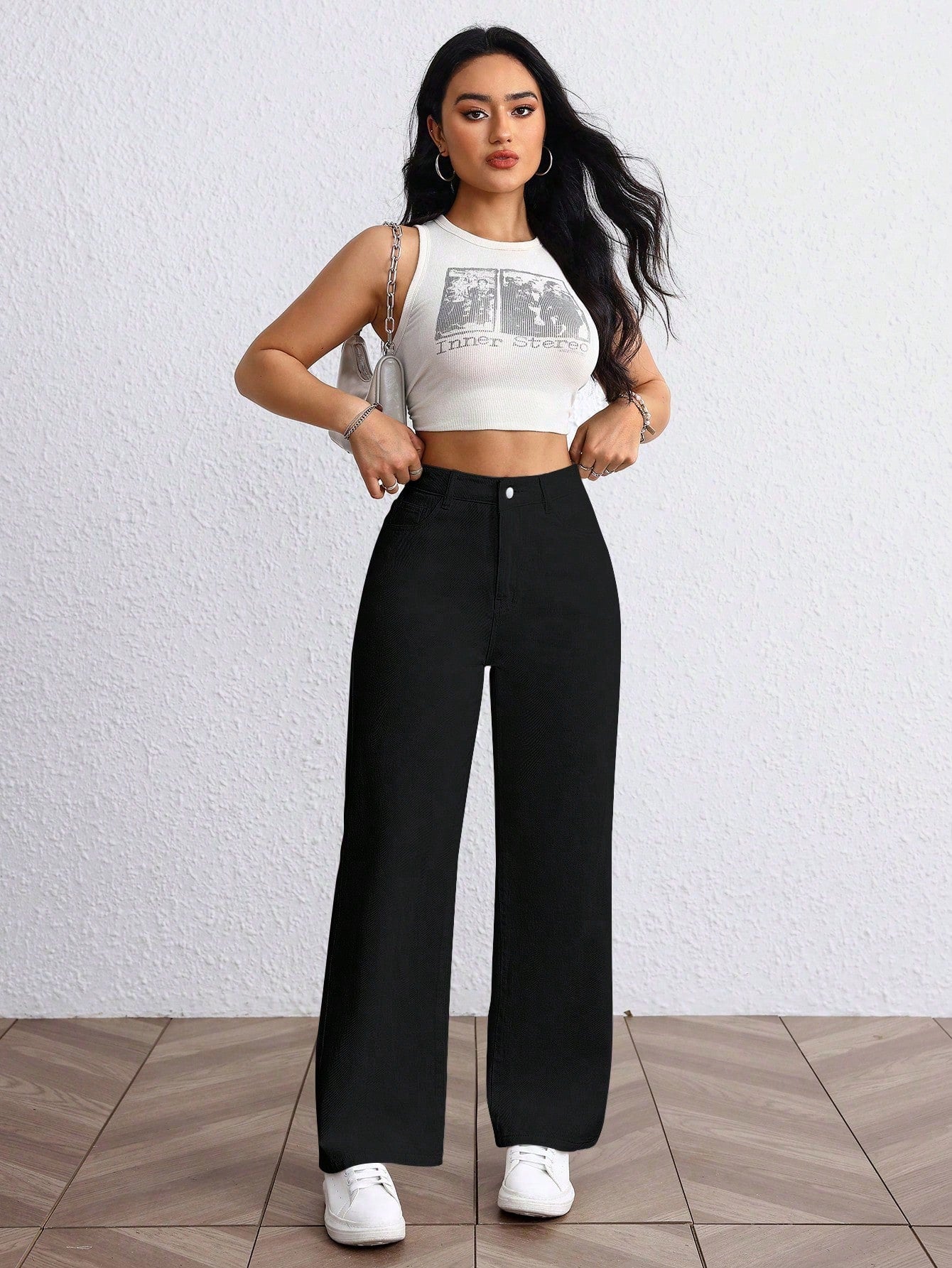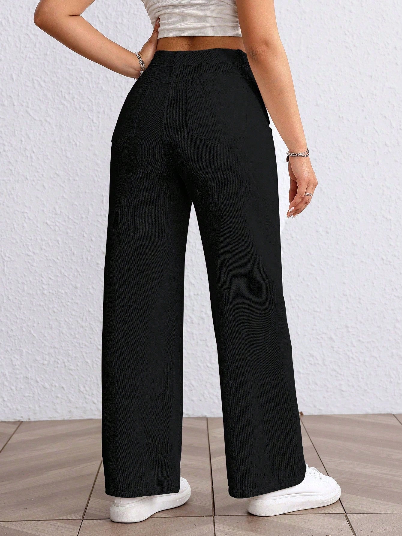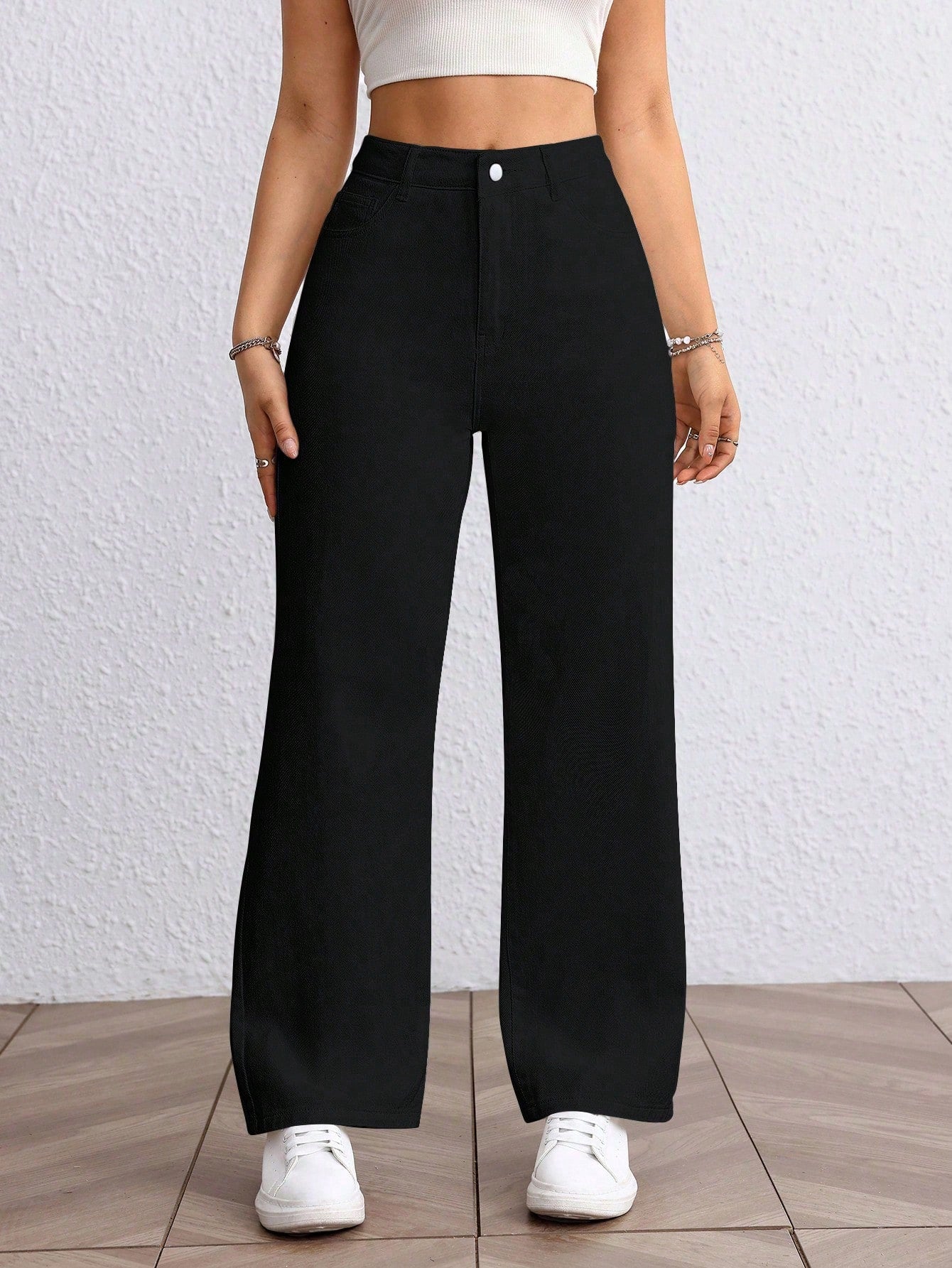 Versatile Solid Color High Waist Straight Leg Jeans
