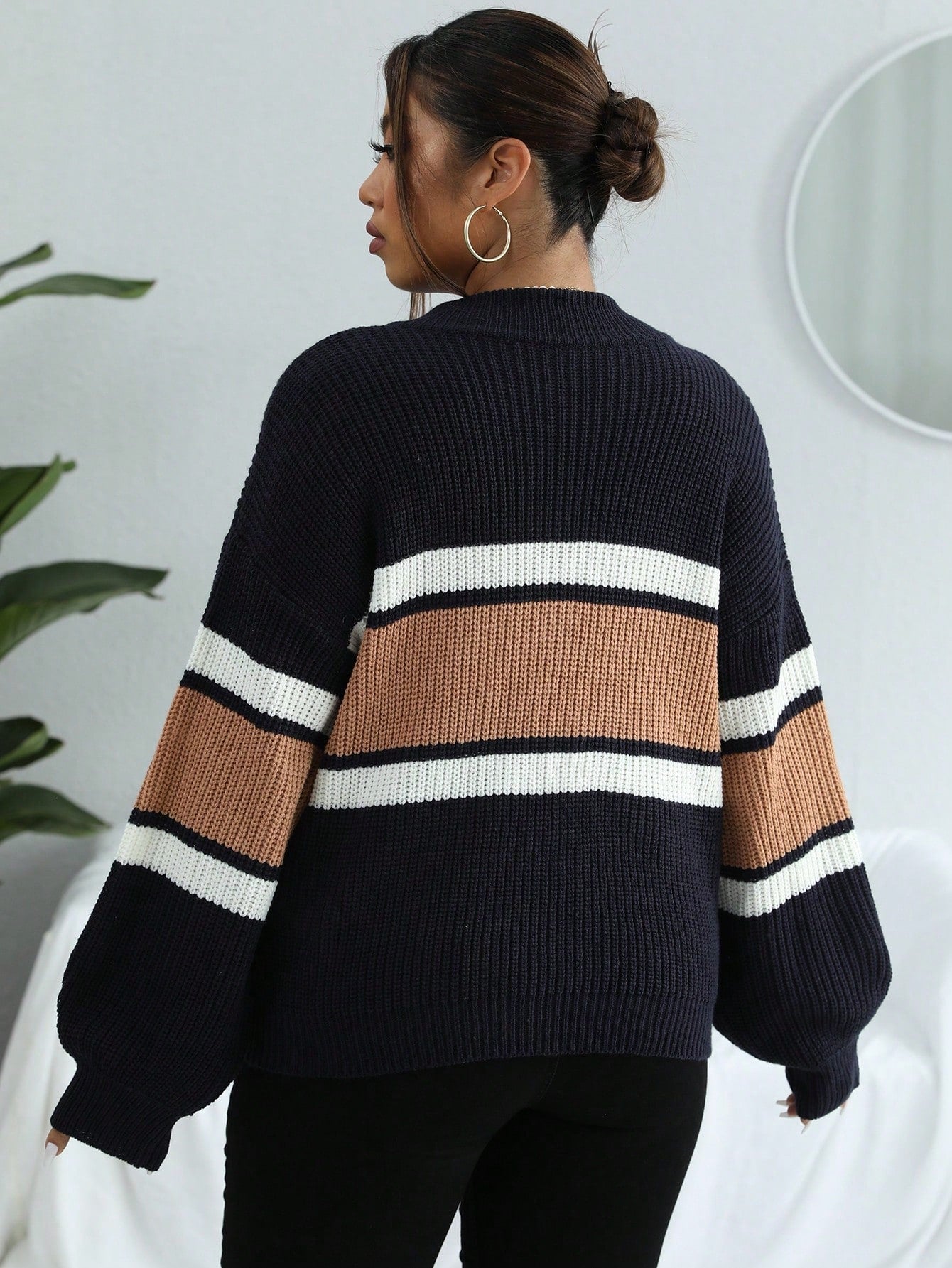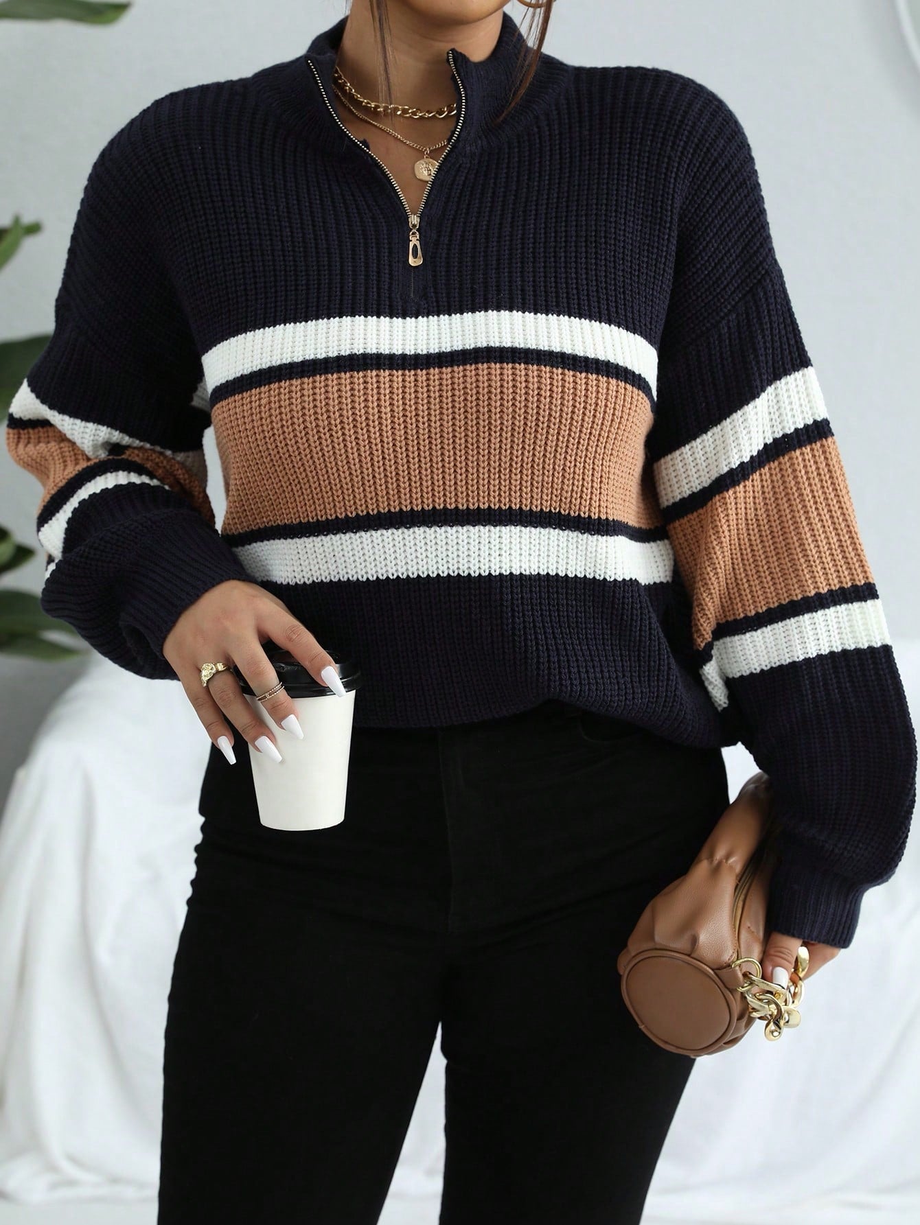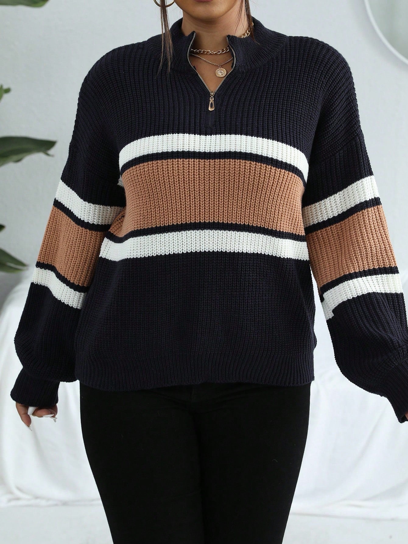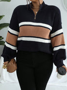Vionelle Plus Colorblock Half Zip Drop Shoulder Sweater