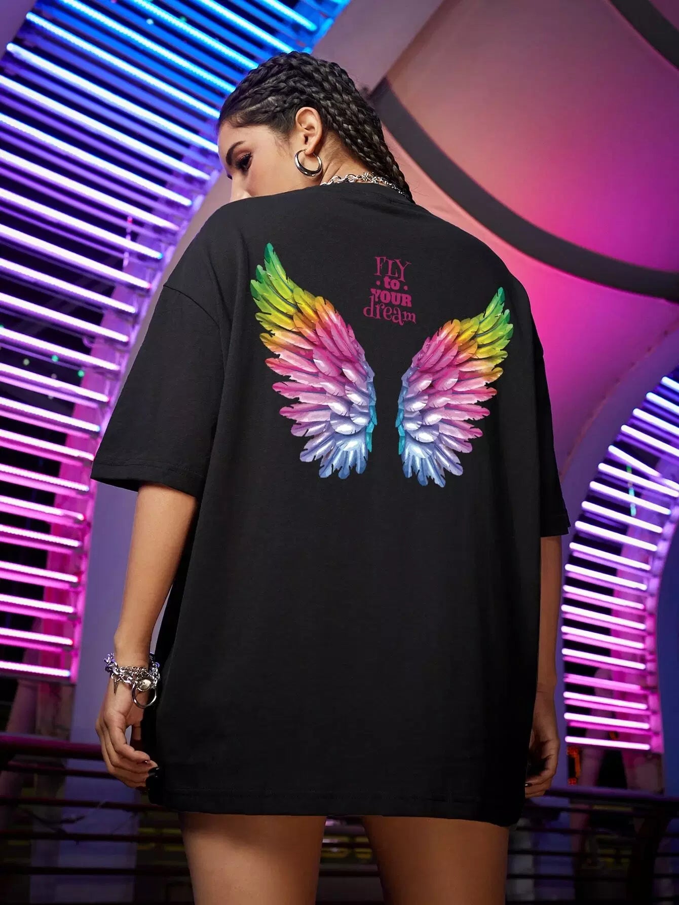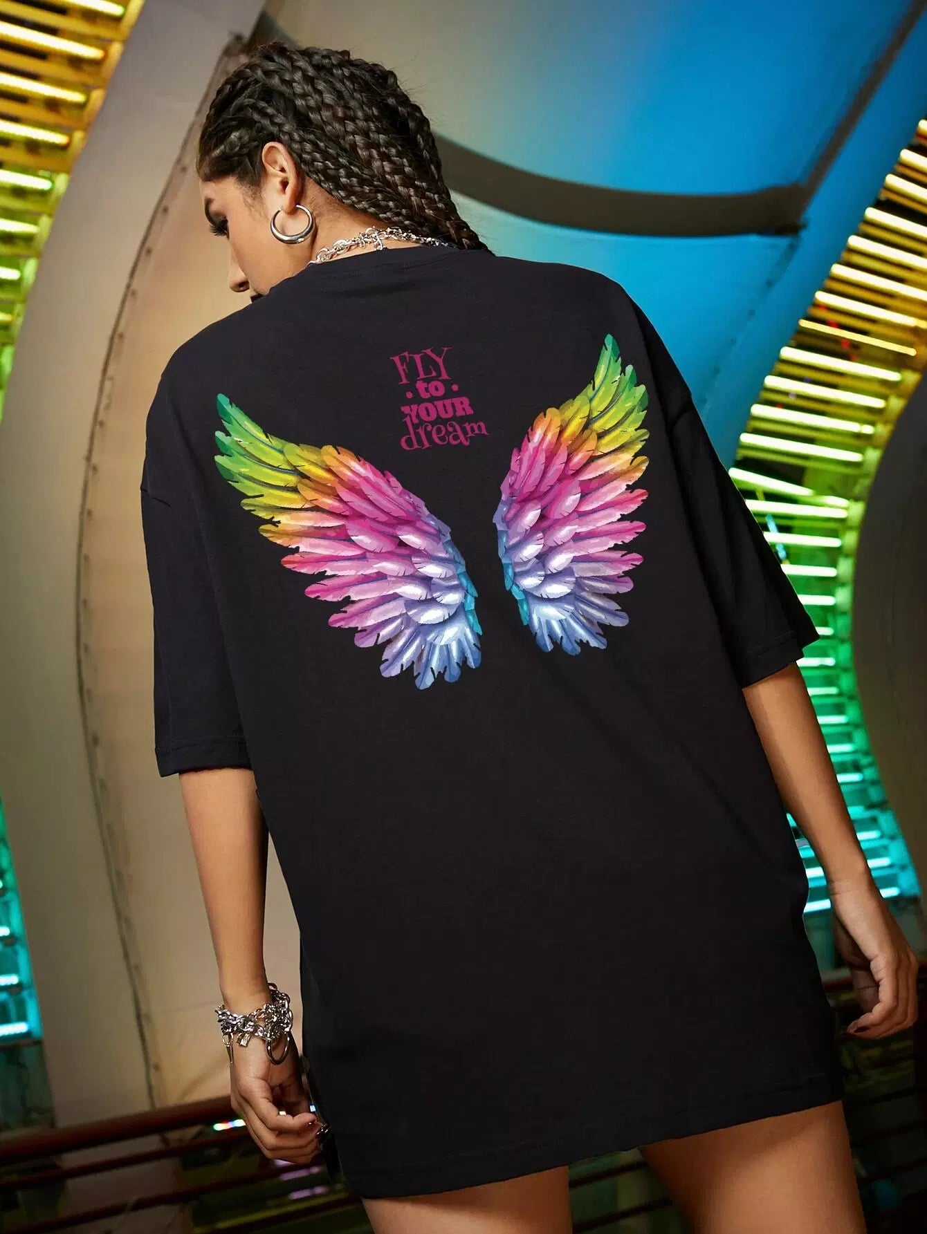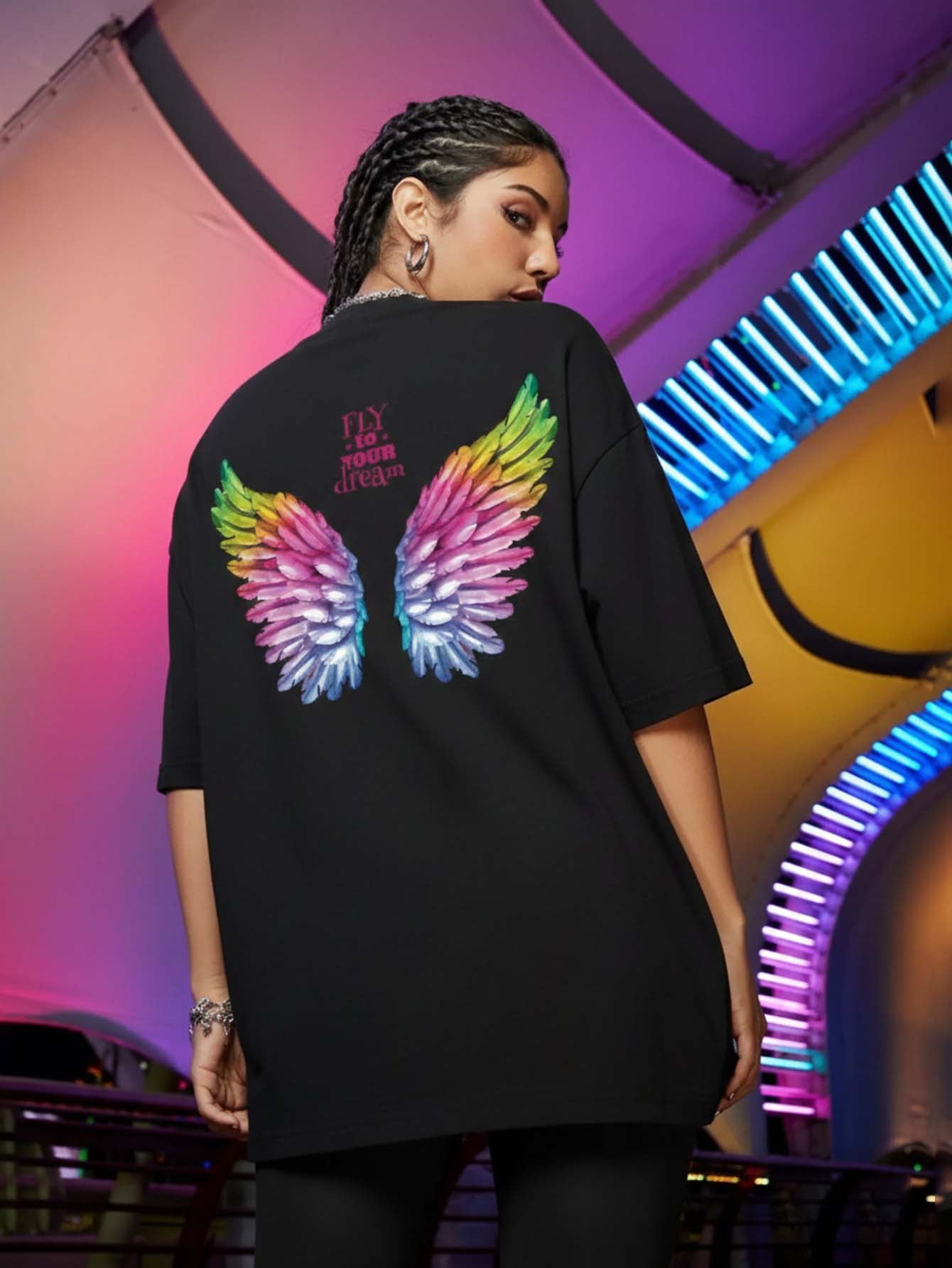 Wing And Slogan Graphic Drop Shoulder Tee
