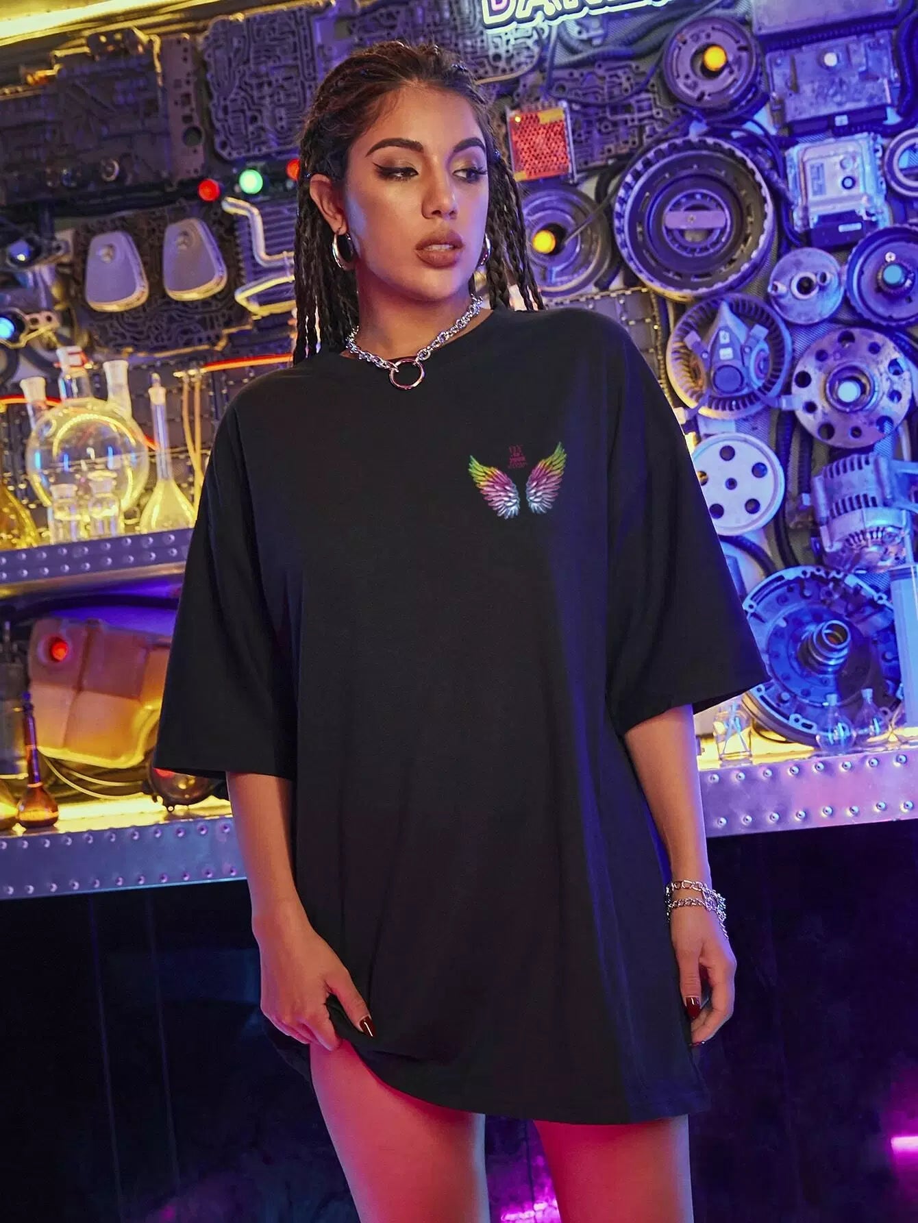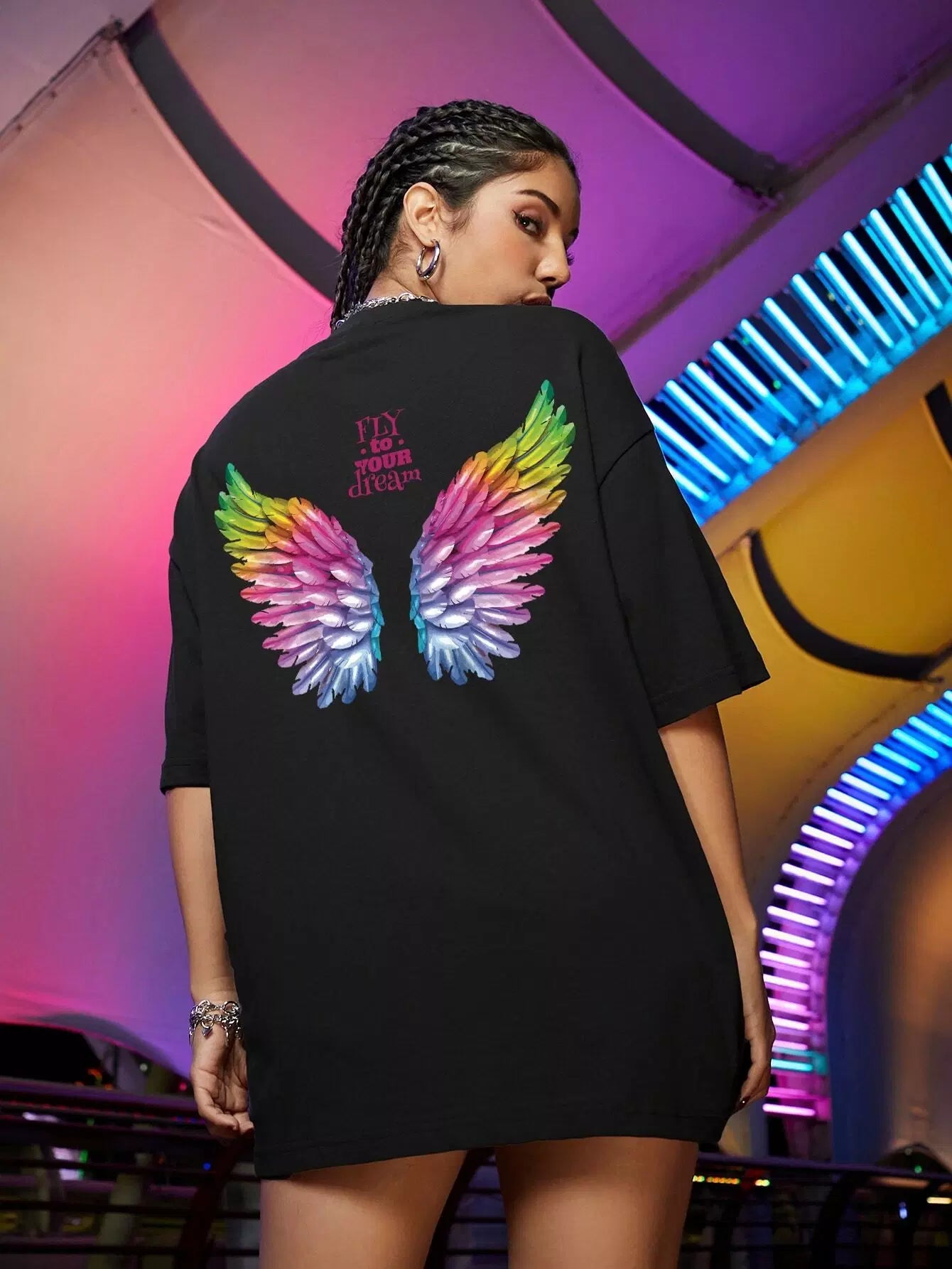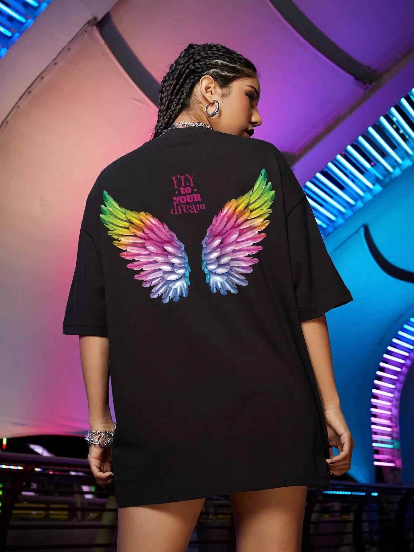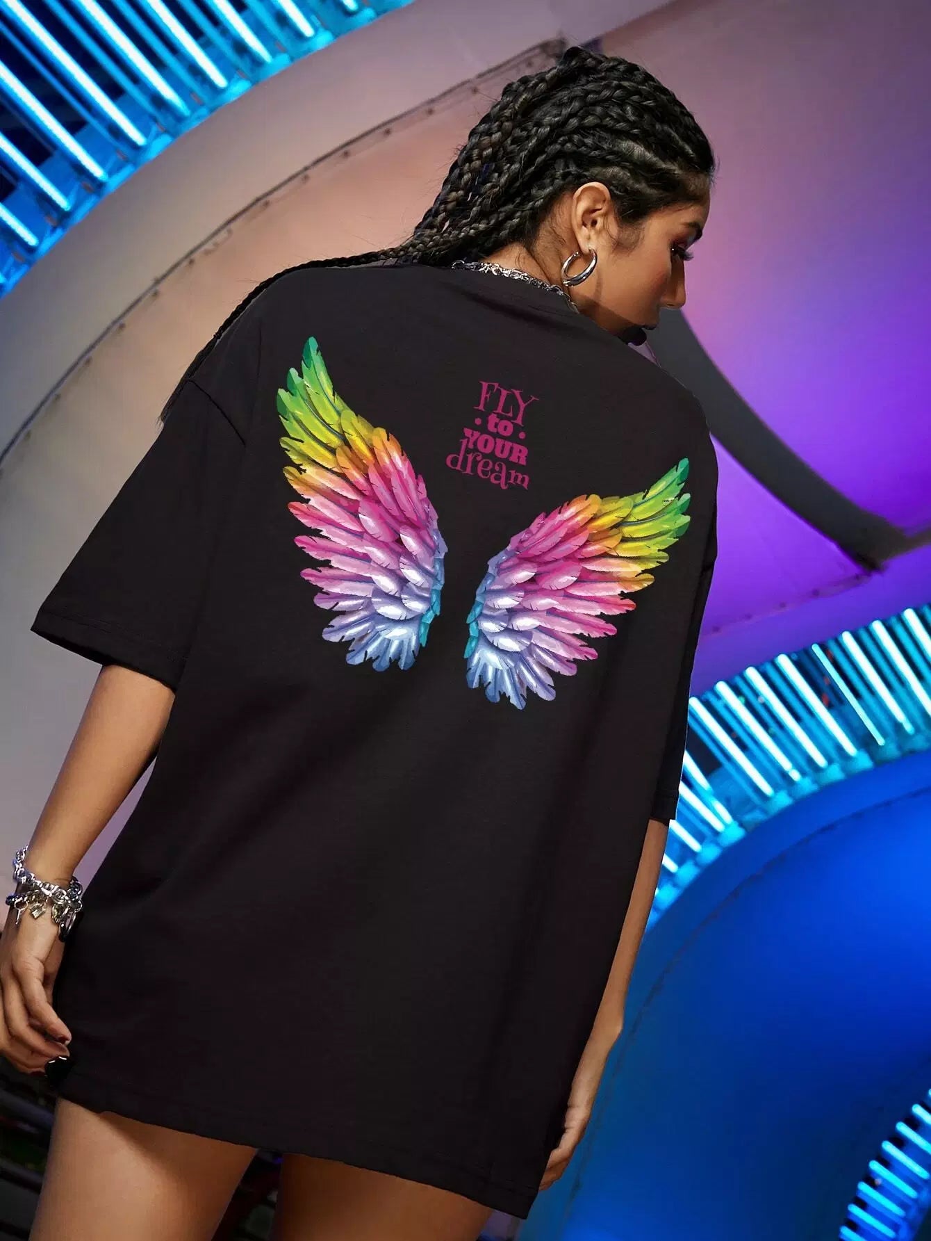 Wing And Slogan Graphic Drop Shoulder Tee