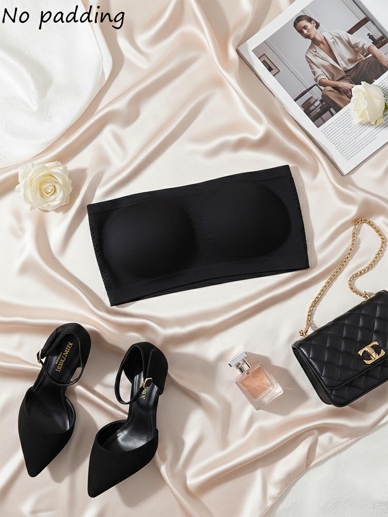 Women Black Strapless Bralette With Mesh Casual Medium Stretch Fabric Tube Top