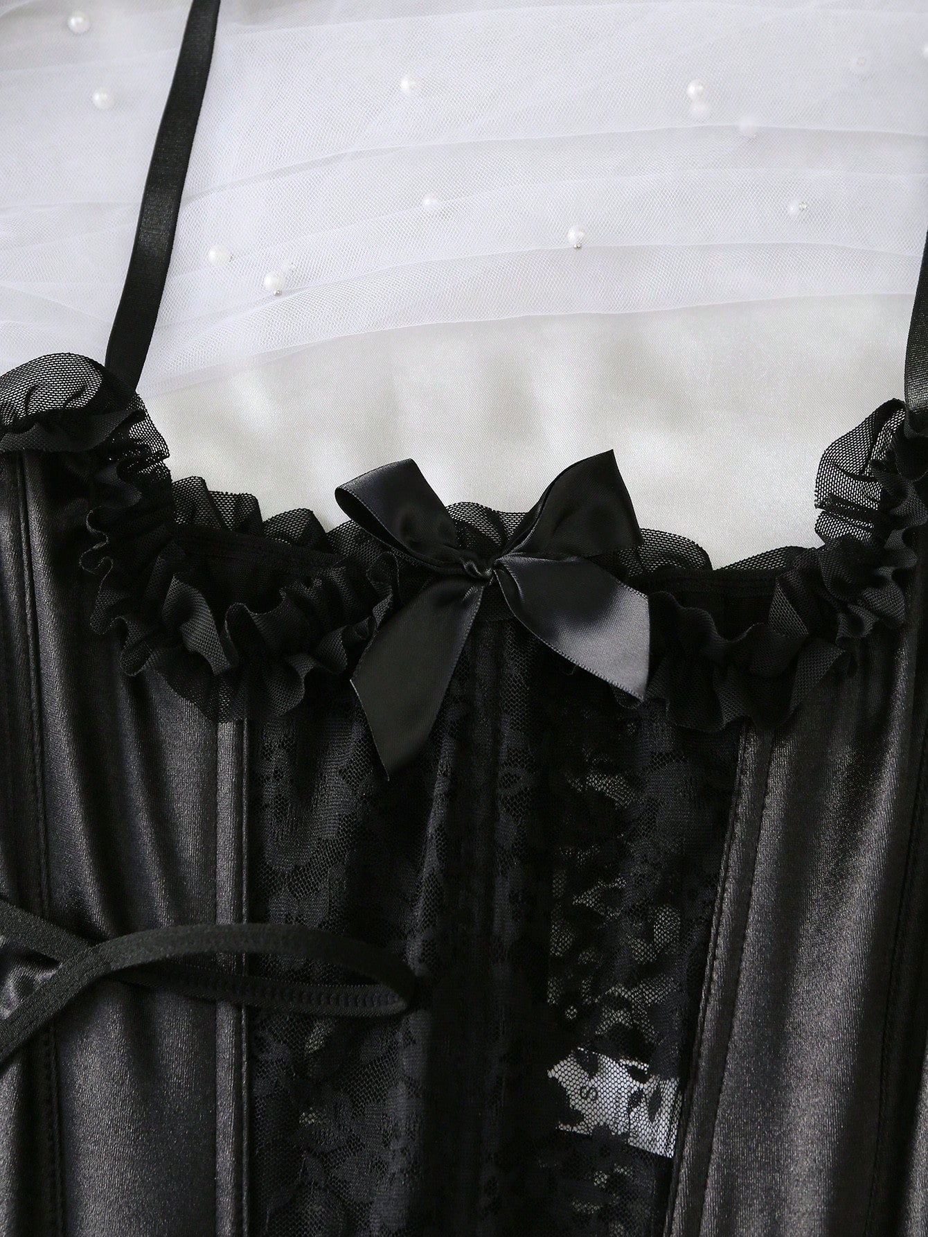 Women Lace Splice Ruffle Trim Halter Sexy Bustier Underwear Outer For Going Out