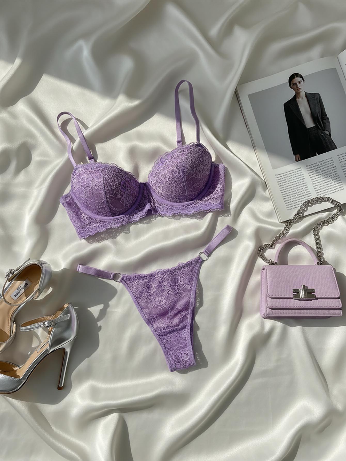 Women Sexy Lingerie With Underwire And Thong Panties Two-Piece Set For Going Out