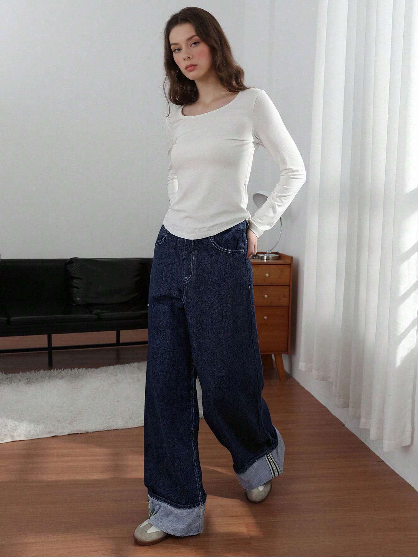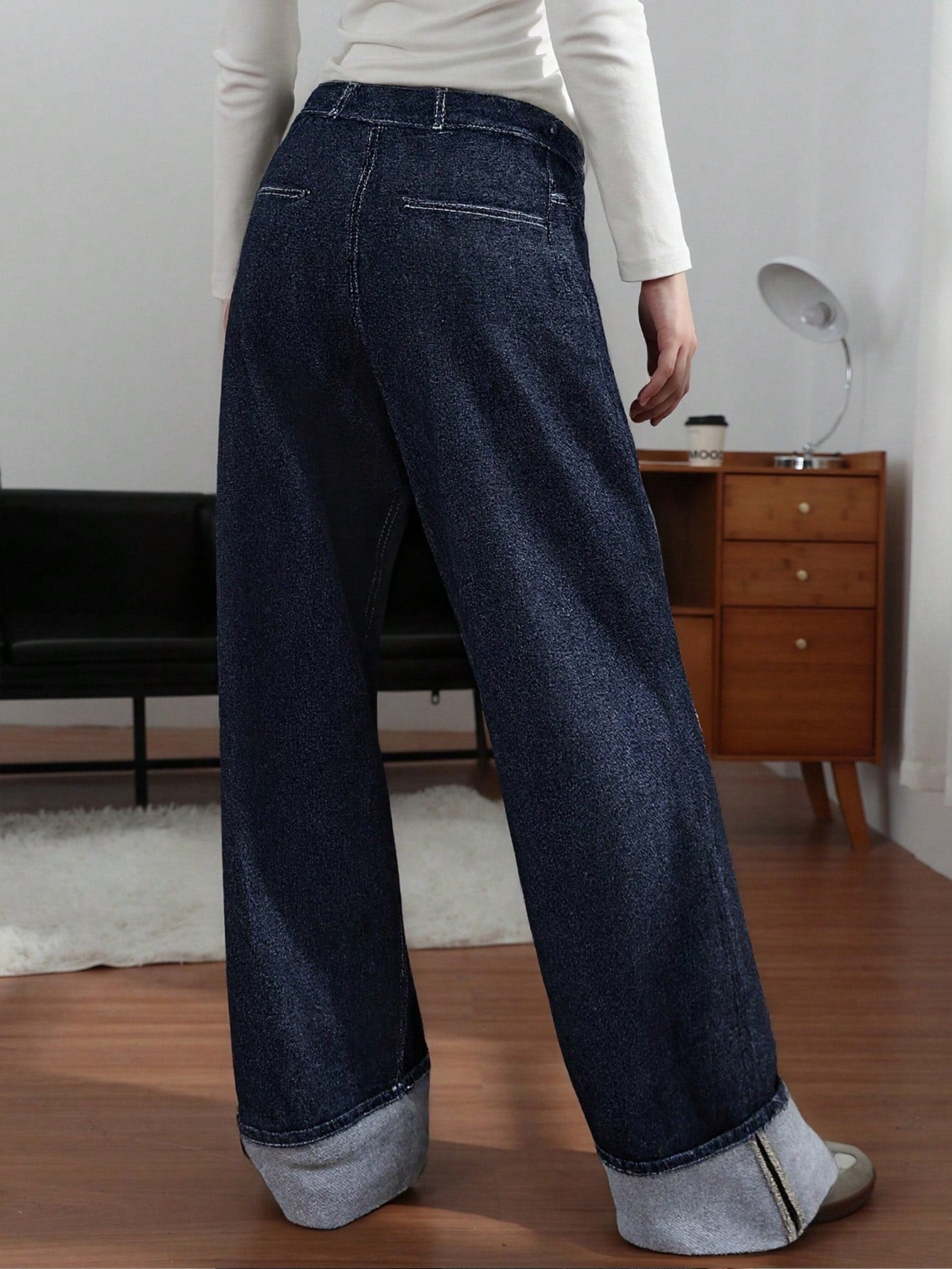 Women Spring Vintage Denim Wide Leg Trousers Jeans High Street Valentine Gifts