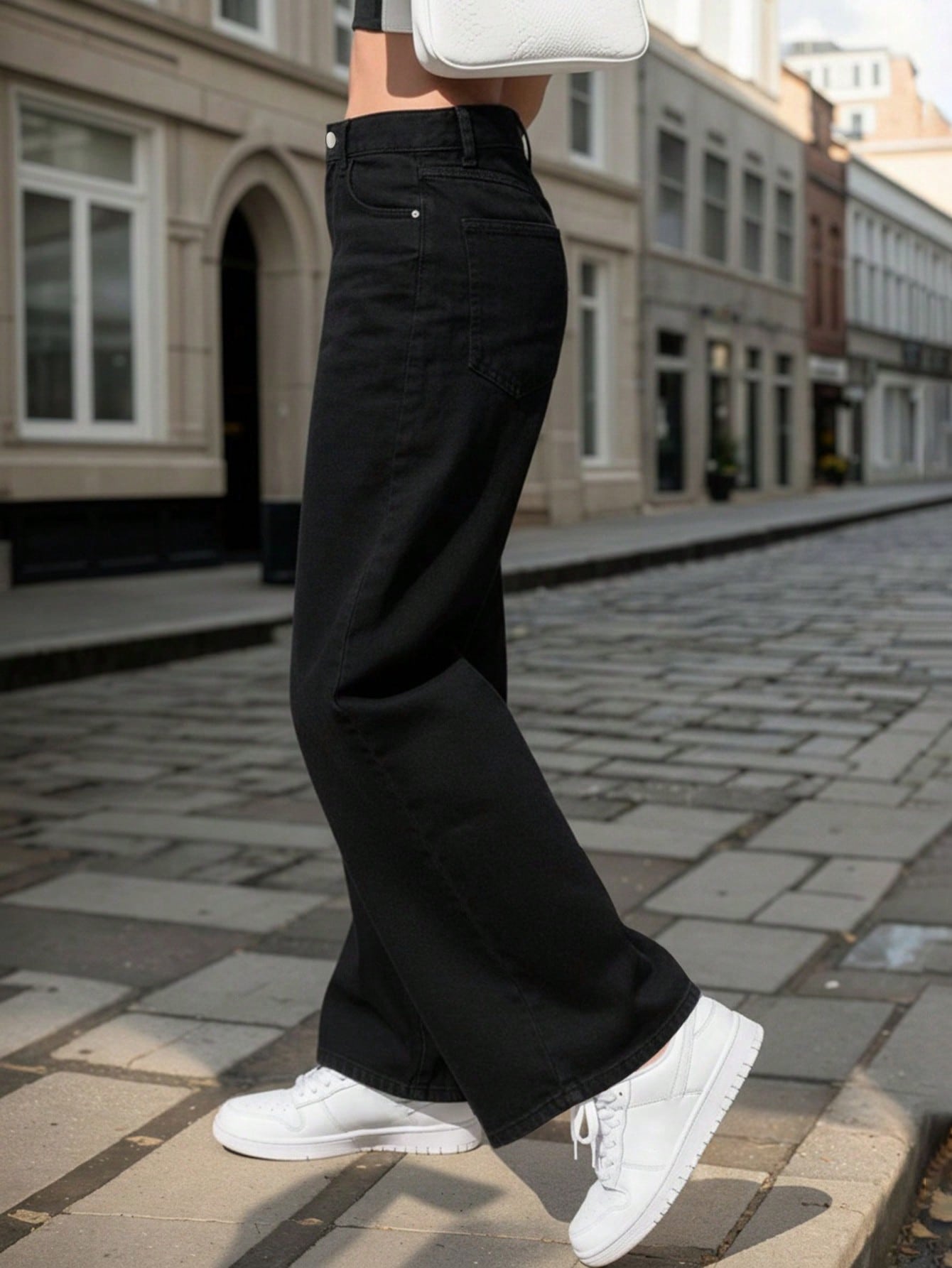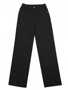 Women's Black Pocket Casual Versatile Straight Leg Jeans