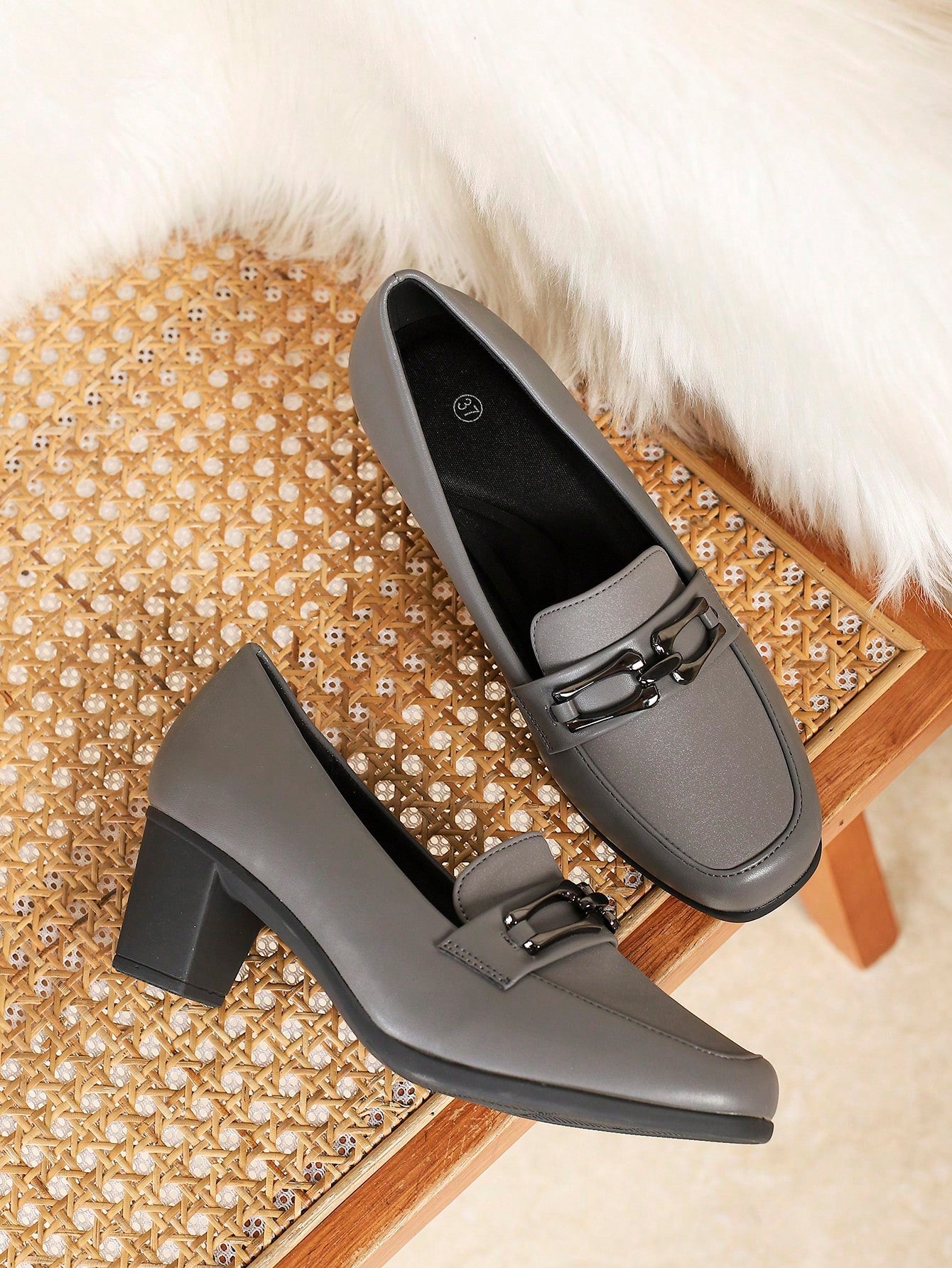 Women's Block Heel High Heels Black Versatile Fashion British Style Square Toe Work Shoes
