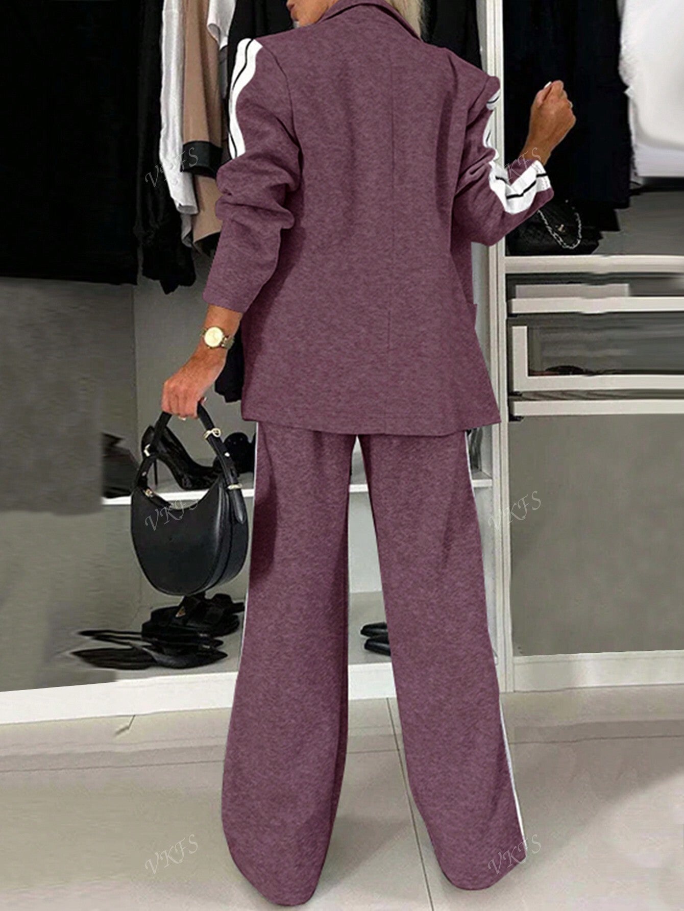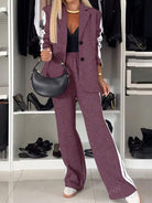 women Women's Casual Fashion Commuter Light Sports Style Side-Stripe Decorated Long Sleeve Blazer And Pants Two-Piece Suit Set - Polyester