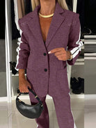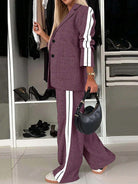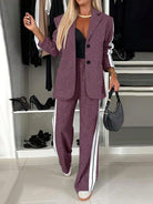 Women's Casual Fashion Commuter Light Sports Style Side-Stripe Decorated Long Sleeve Blazer And Pants Two-Piece Suit Set - Polyester