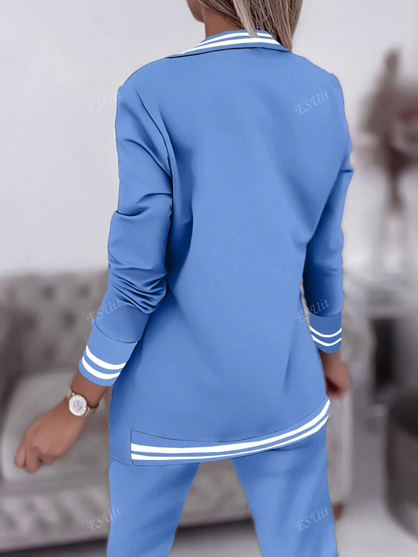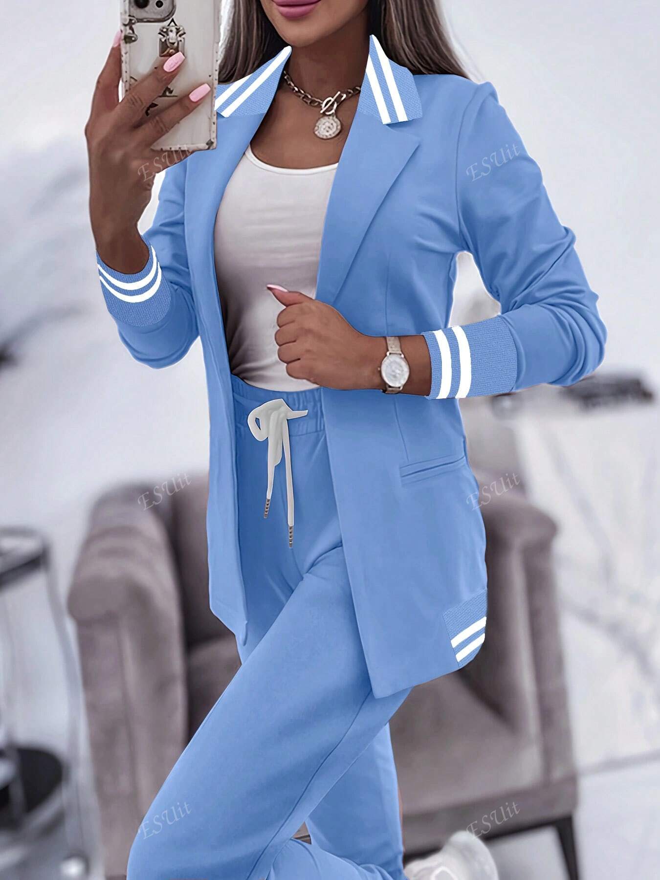 Women's Contrast Striped Patchwork Blazer And Pants Suit