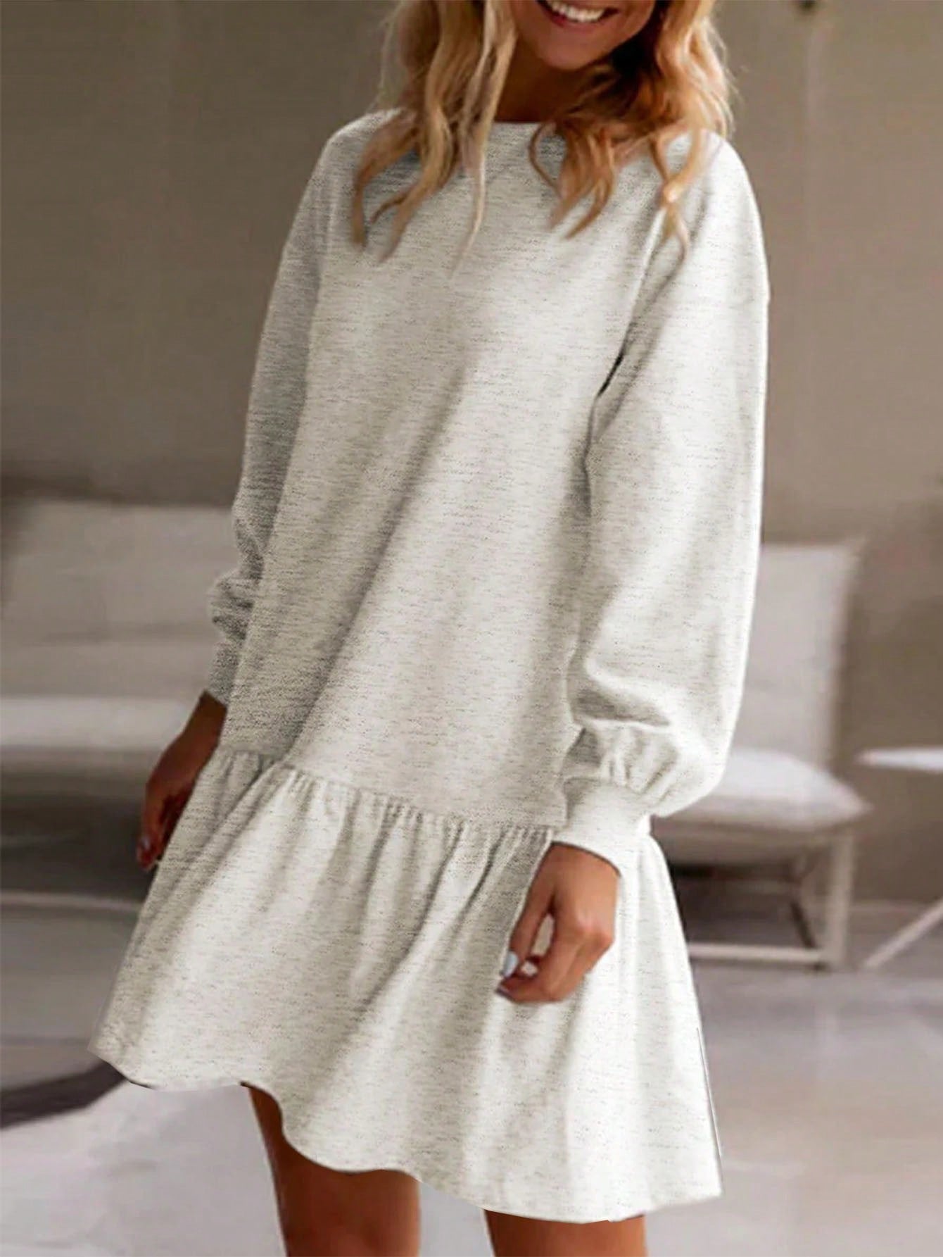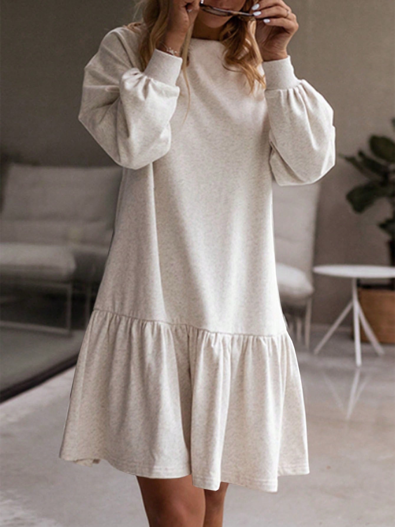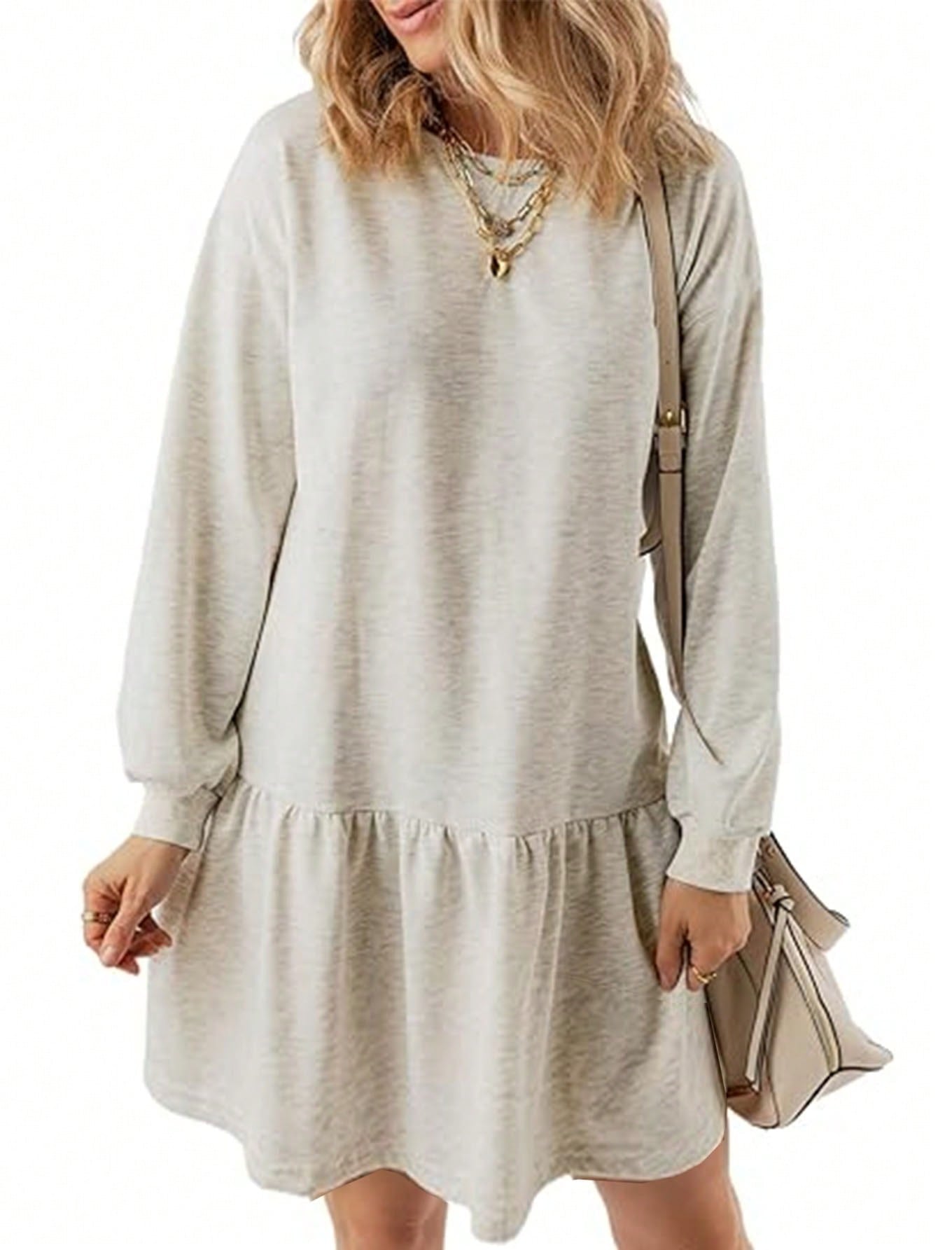 Women's Design Round Neck - Dropped Shoulder - Long Sleeve Casual Loose Sweatshirt Dress