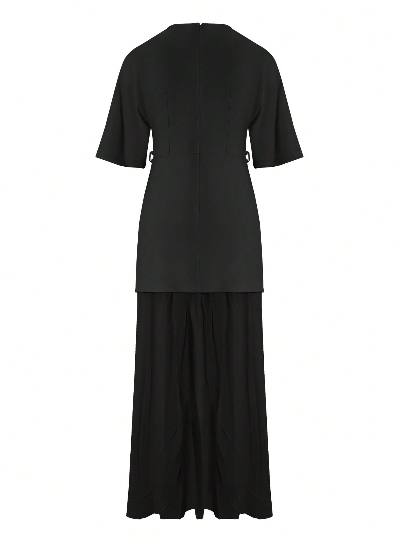Women's Fashionable Patchwork A-Line Midi Dress With No Without Belt