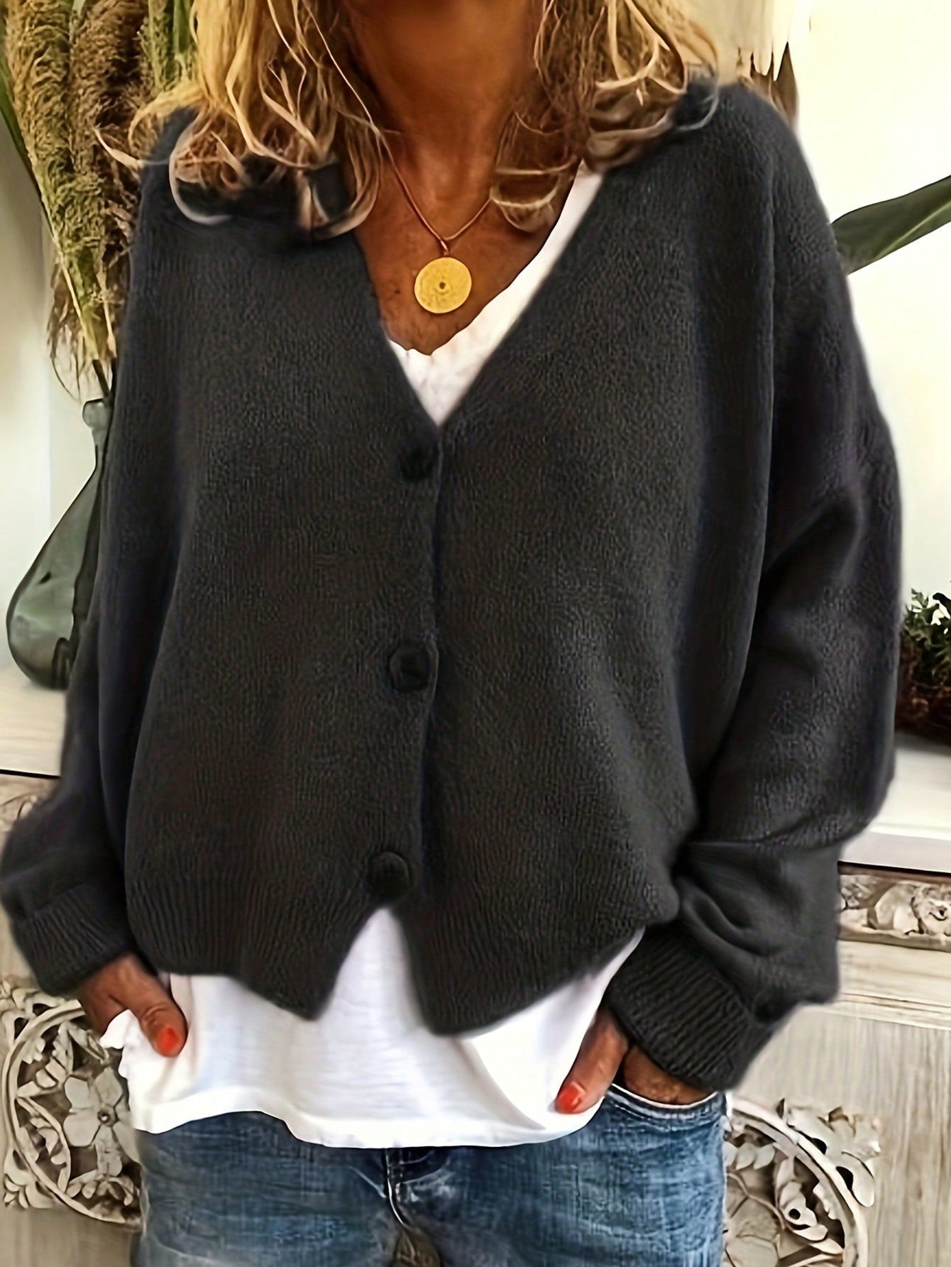 Women's Fashionable V-Neck Button-Up Cardigan Sweater