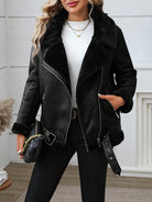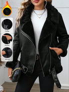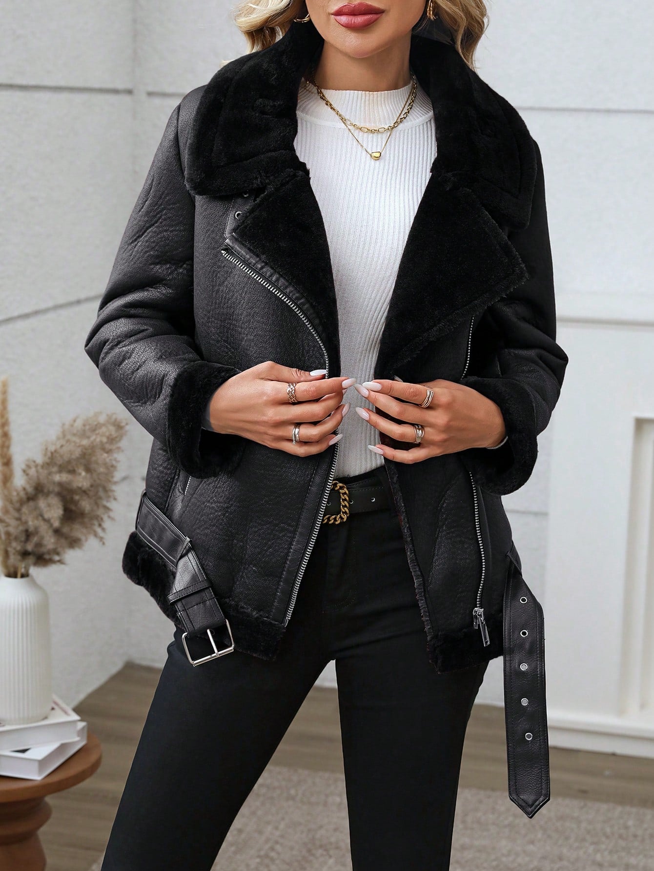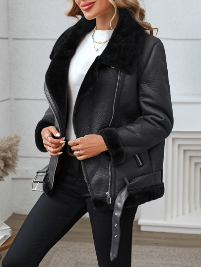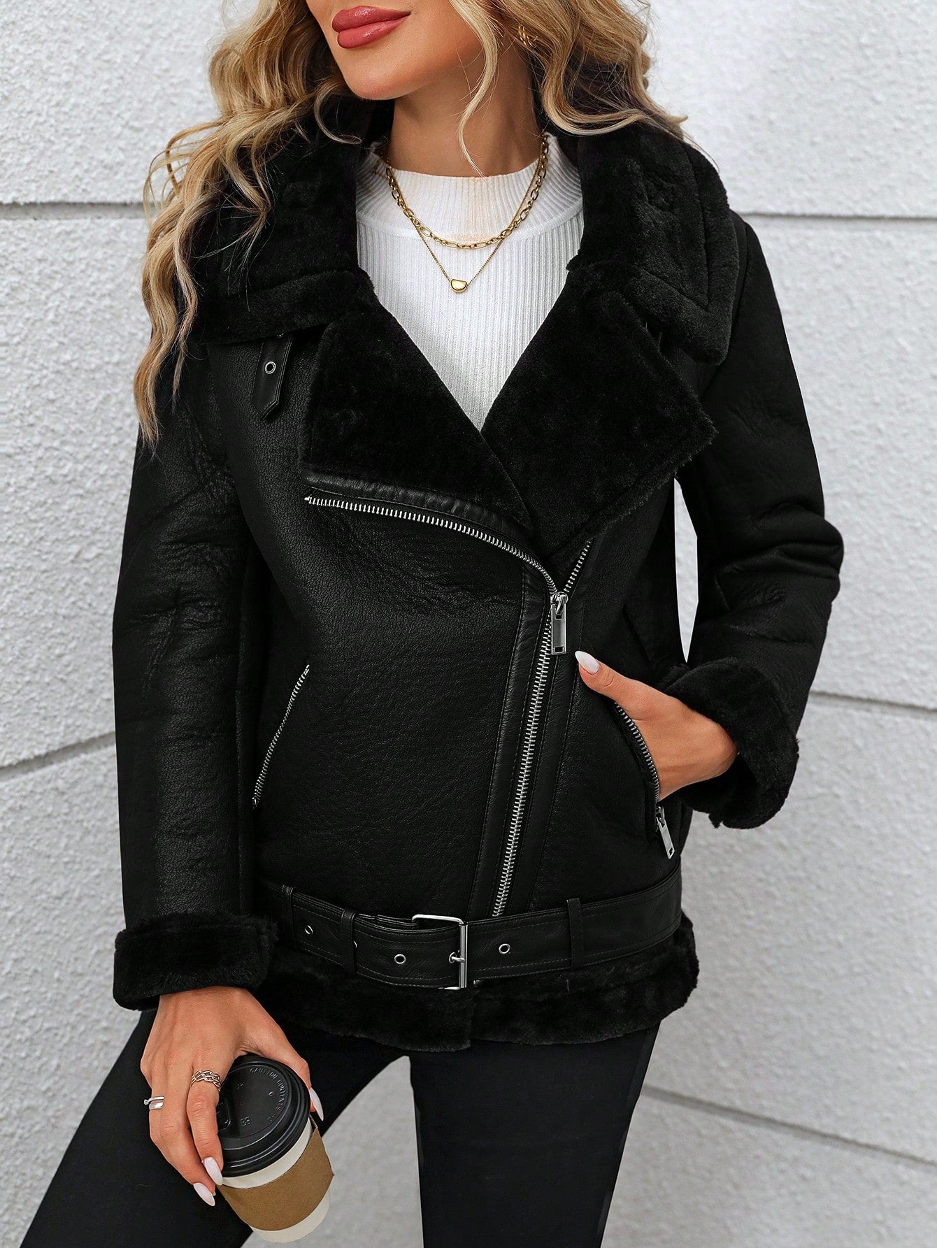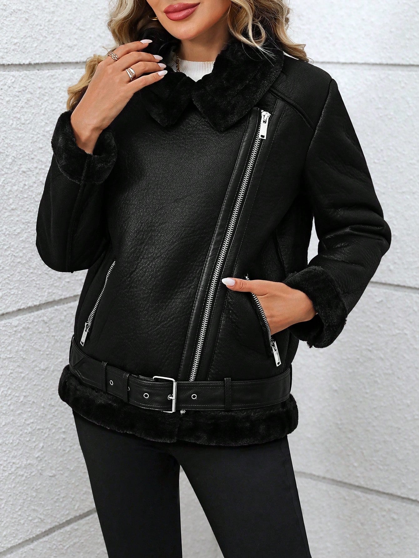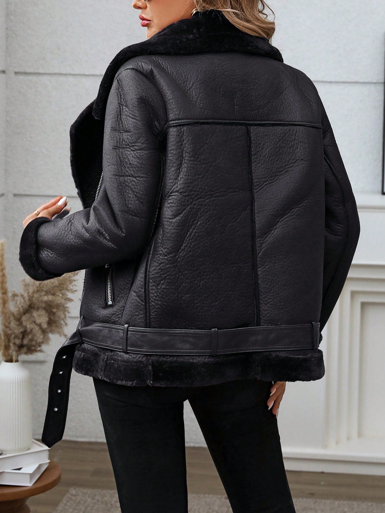 Women's Faux Shearing Jacket Thick Lined Parka Winter Warm Coat Faux Leather Jacket