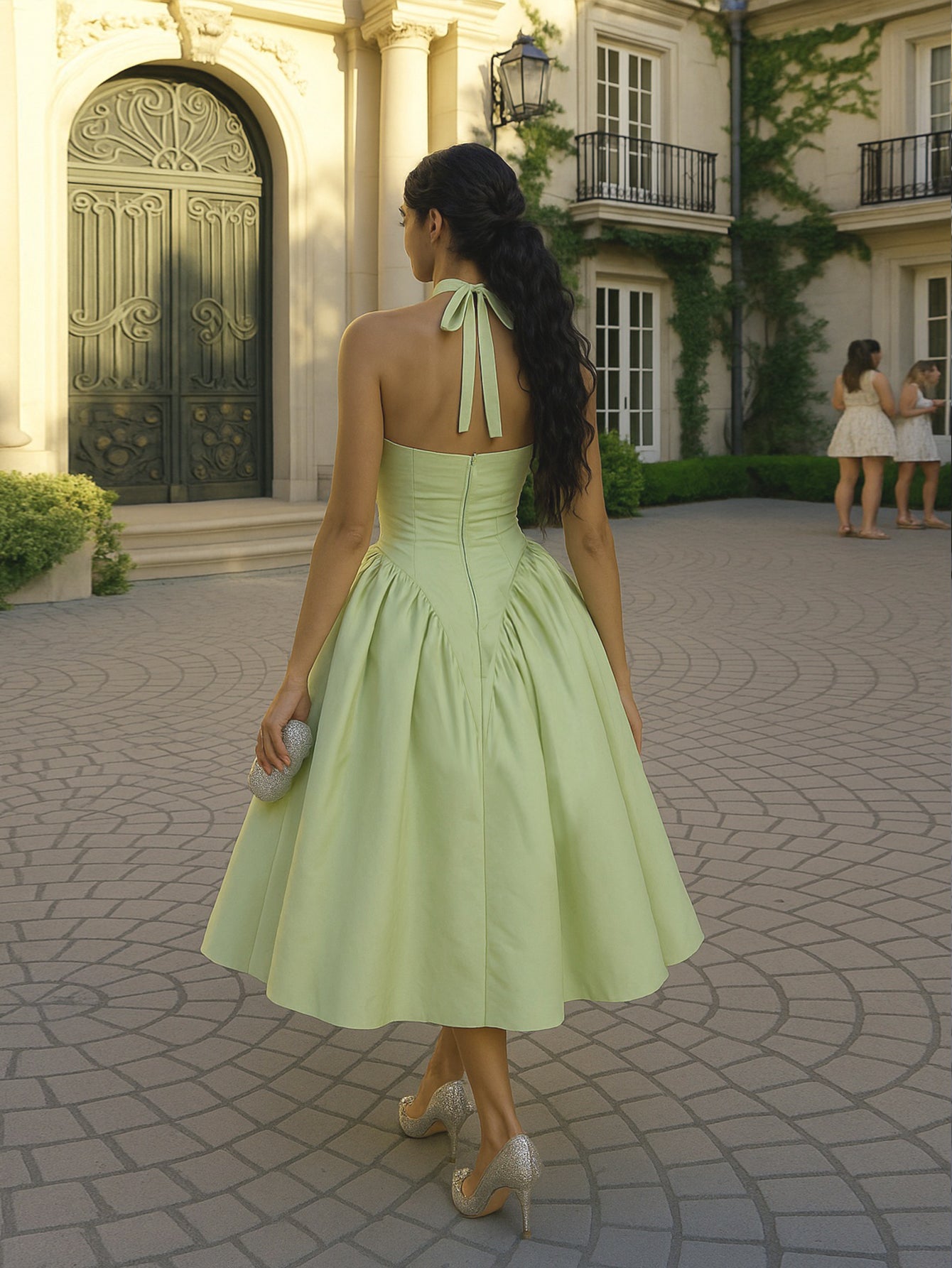 Women's Halter Neck Strap Ruched Elegant Sexy Retro Holiday Party Dress