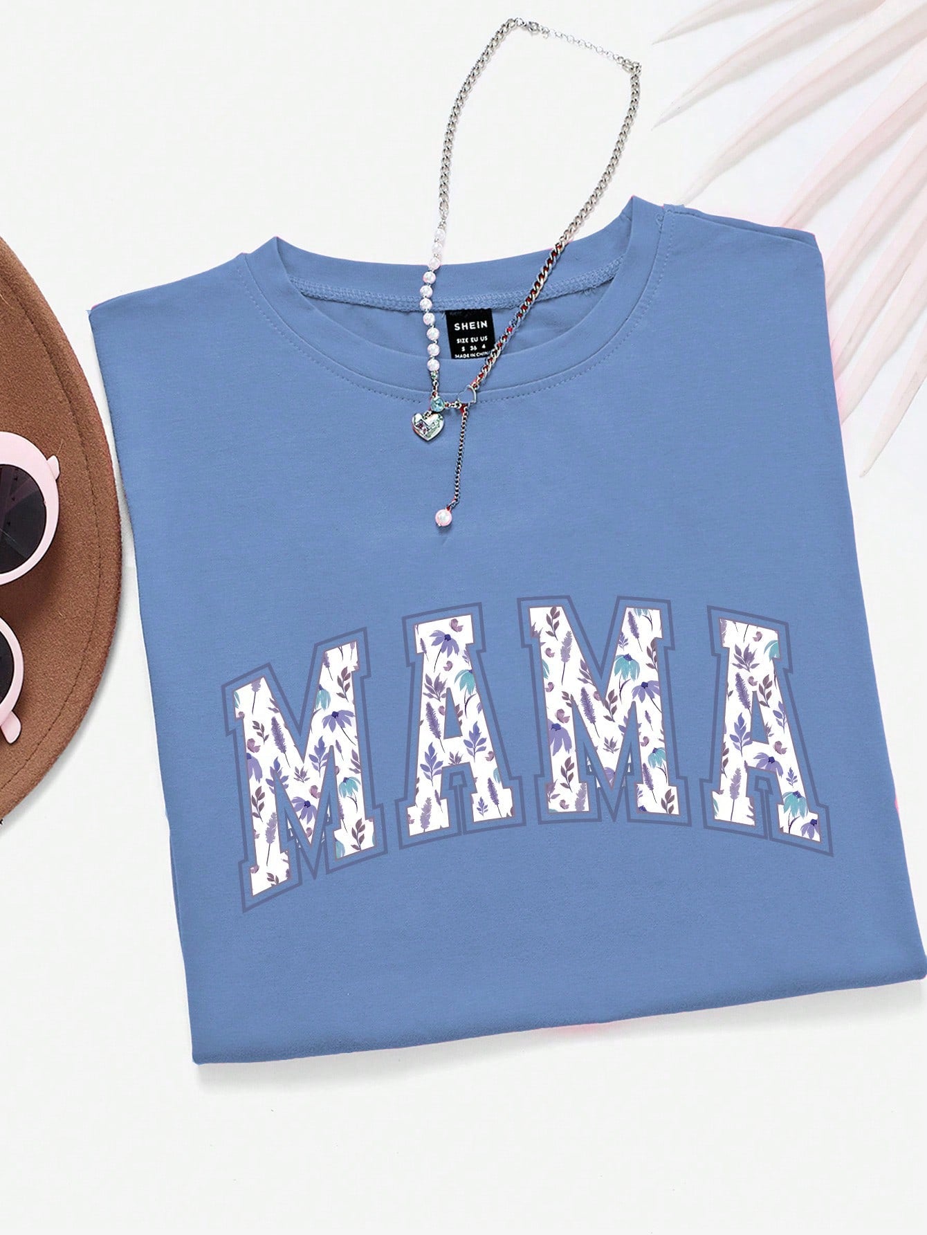 Women's Letter Print Round Neck Short Sleeve Casual Loose T-Shirt