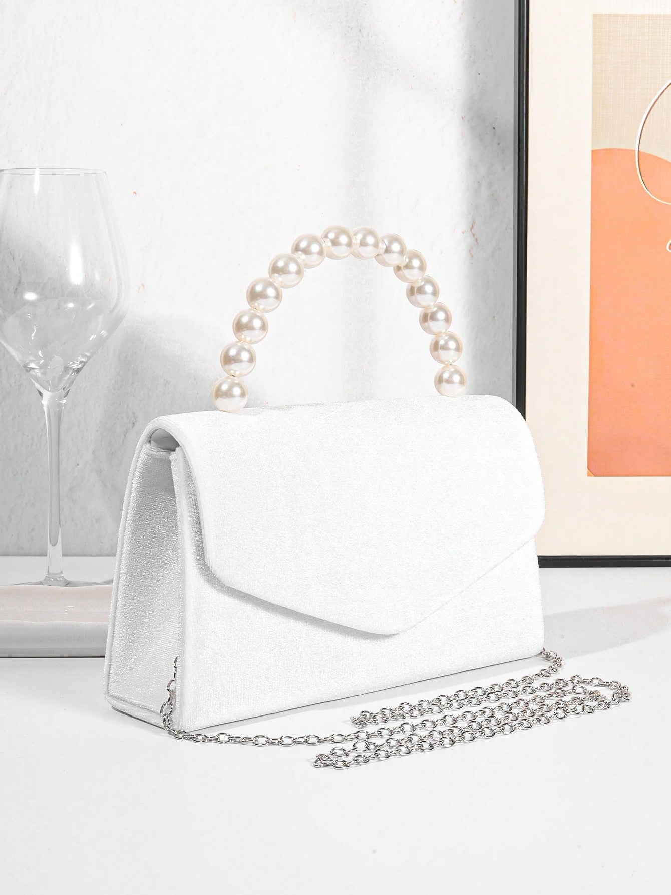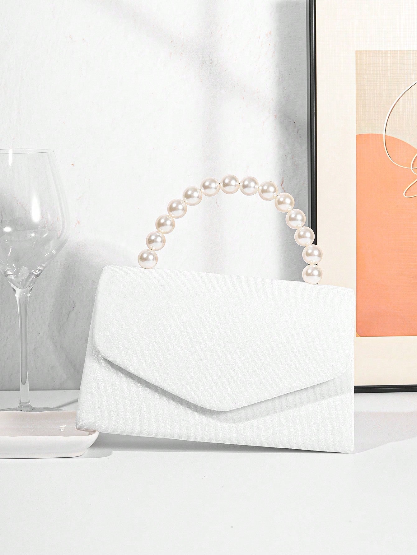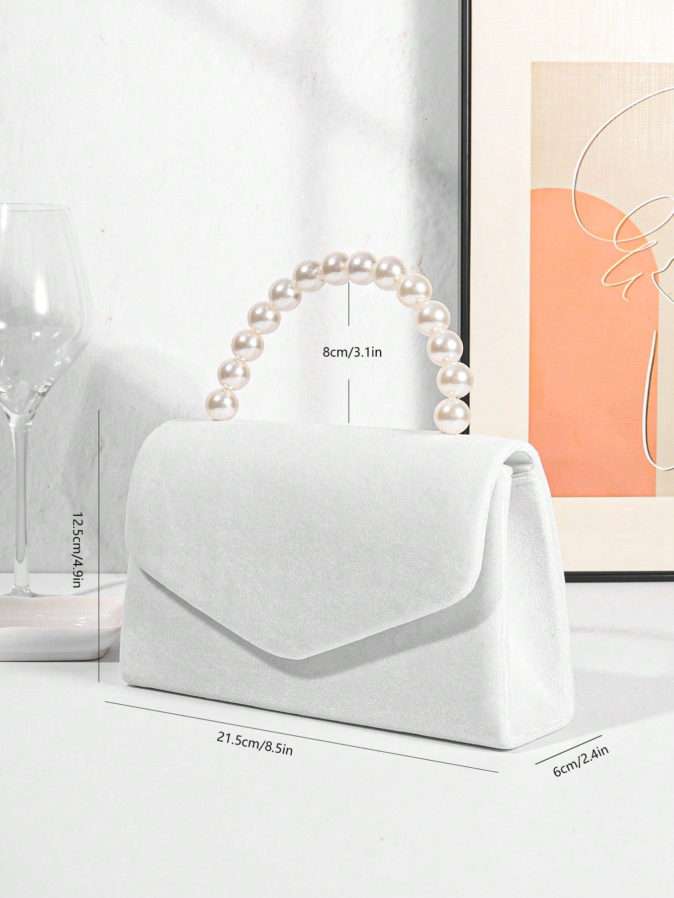 Women's Luxury Plush Evening Clutch Bag With Faux Pearl Handle