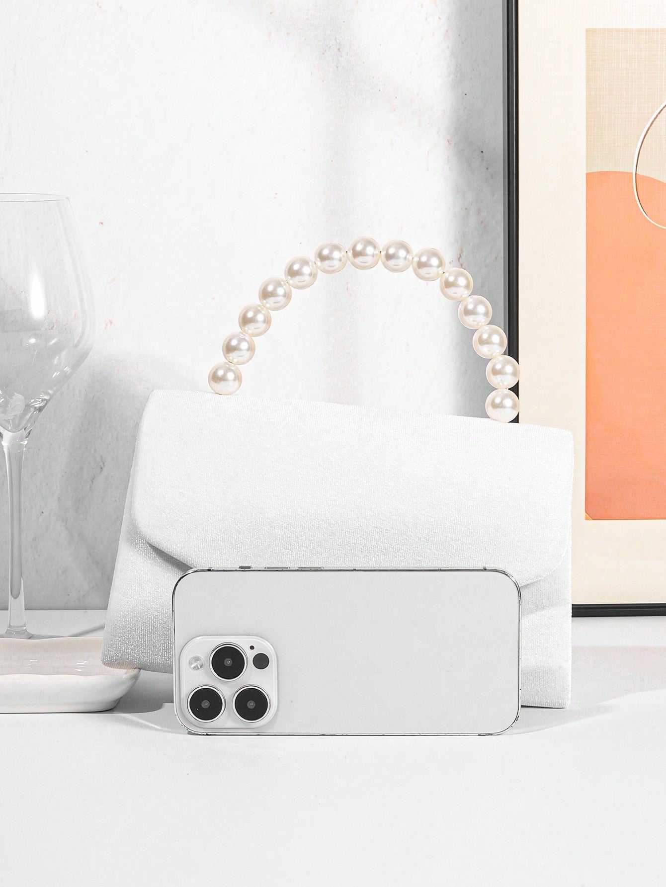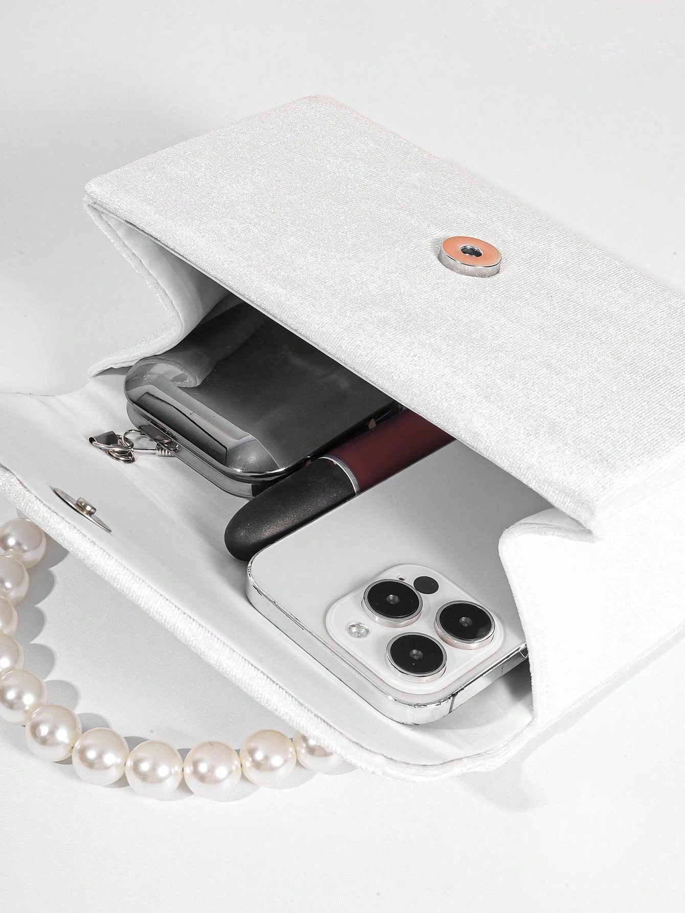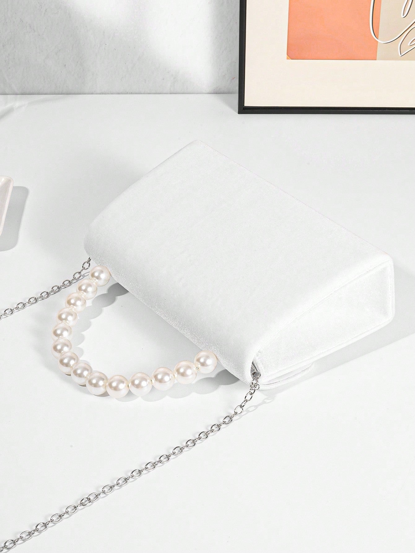 Women's Luxury Plush Evening Clutch Bag With Faux Pearl Handle