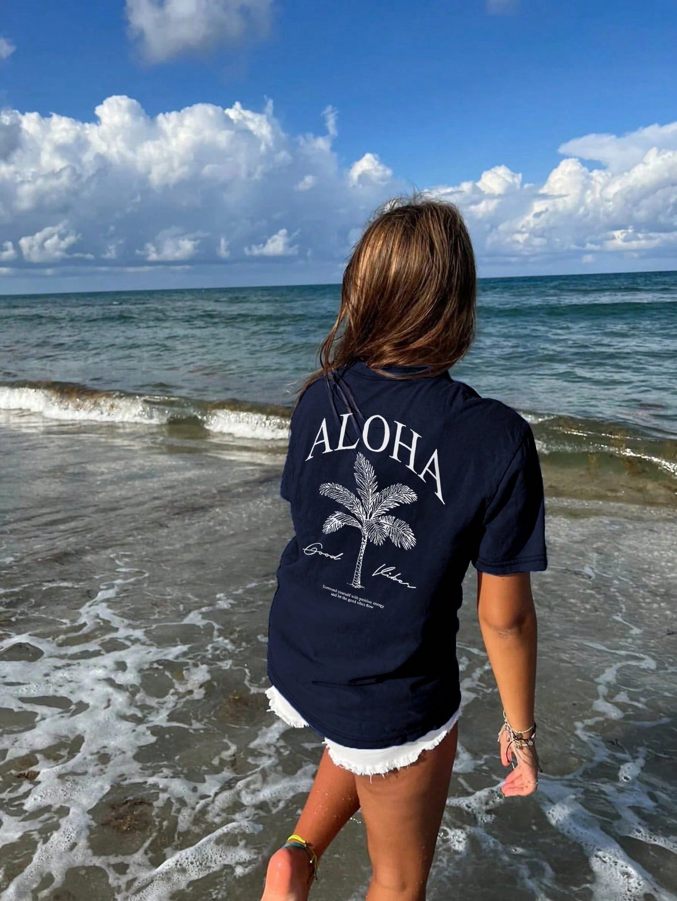 Women's New Palm Tree Slogan Print Casual Round Neck Short Sleeve T-Shirt