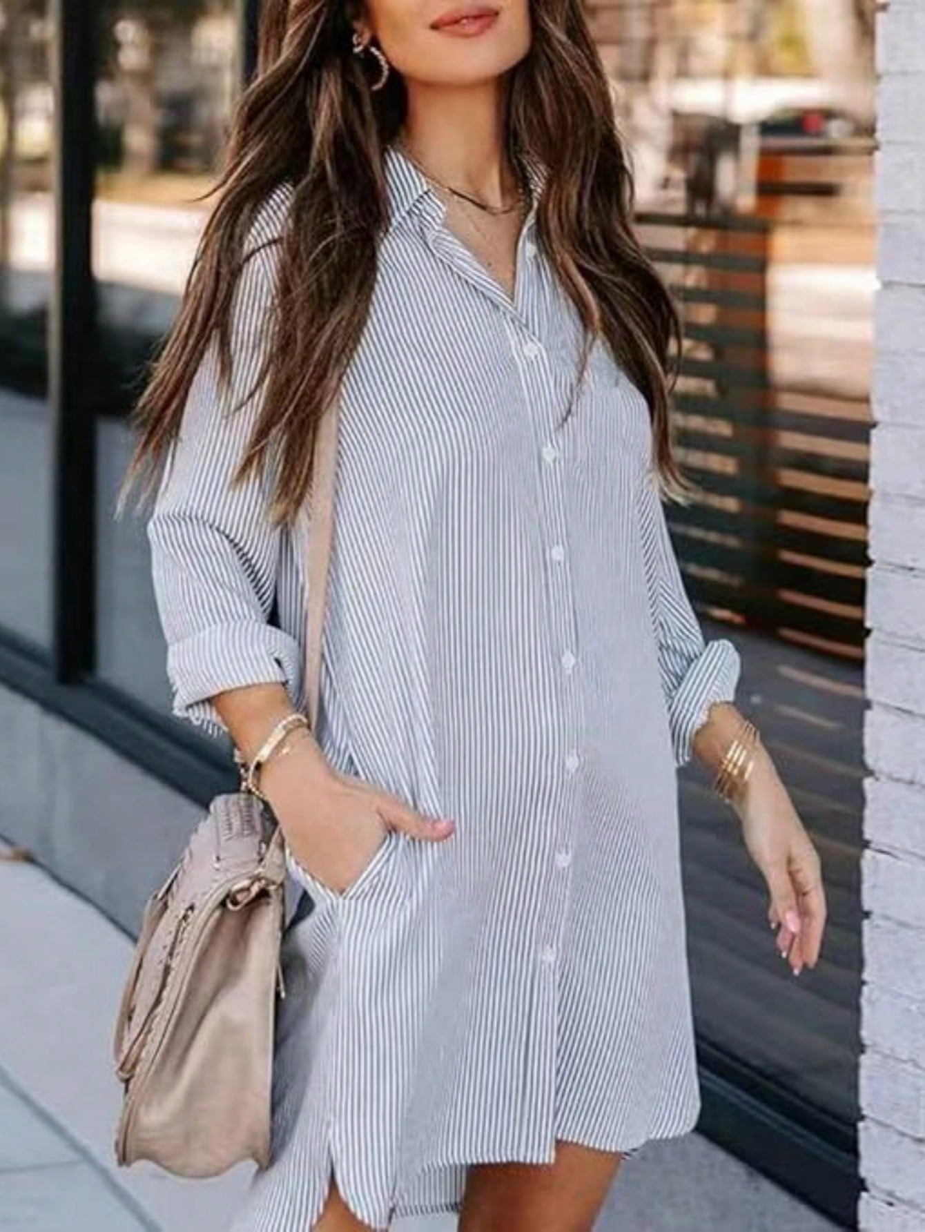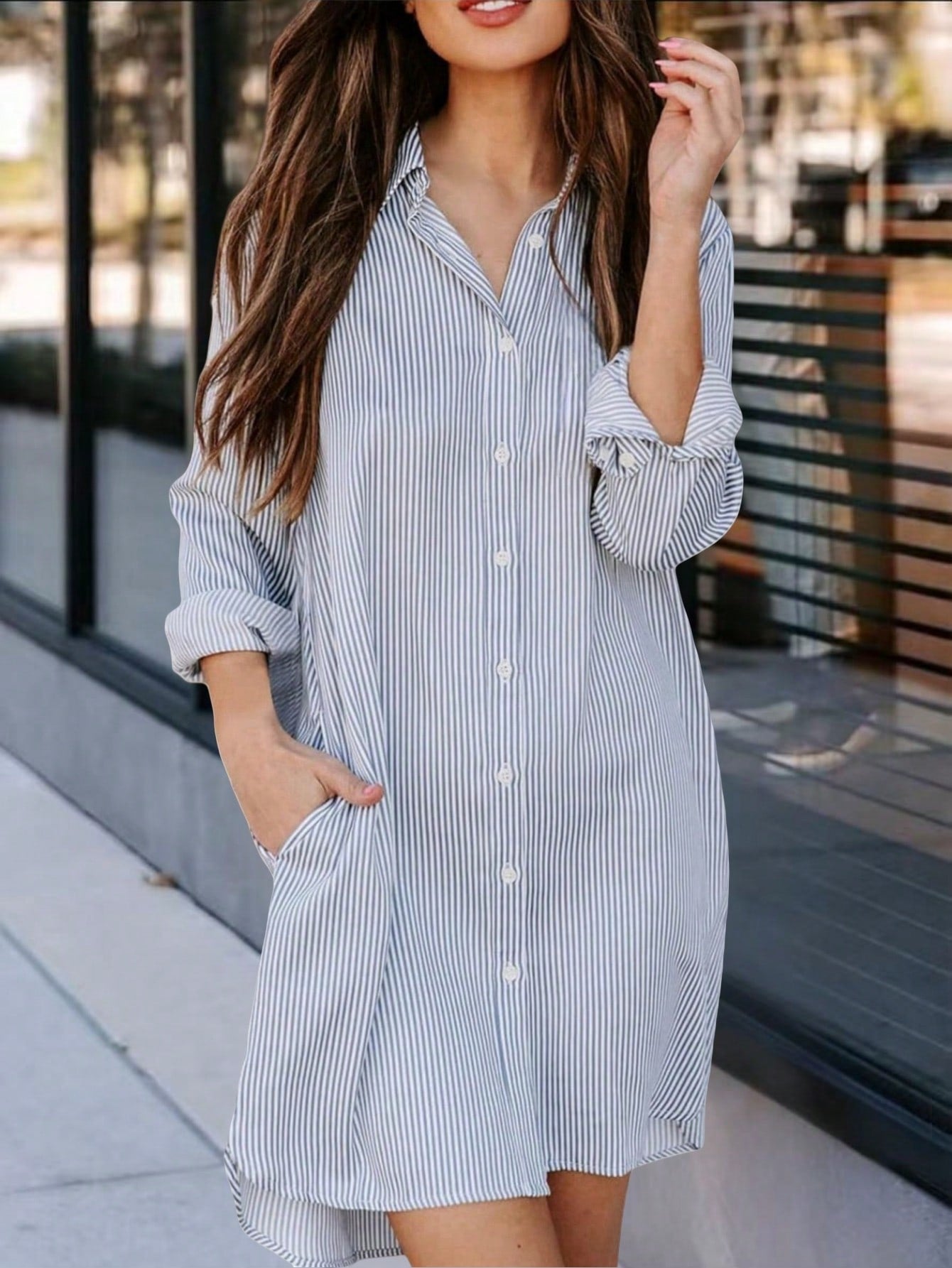Women's Striped Classic Long Sleeve Shirt - Fitted Collared Blouse