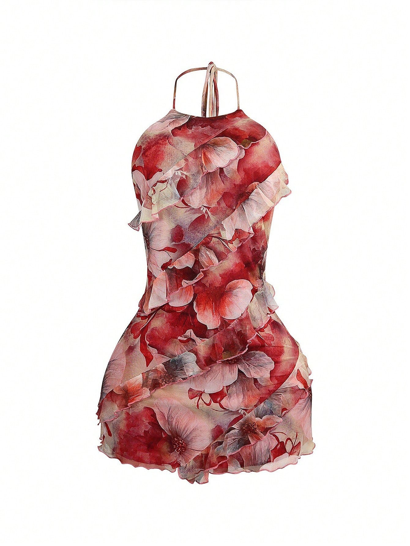 Women's Summer Halter Neck Backless Straps Suspenders Hip Ruffle Charm Fashion Hottie Sexy Party Mini