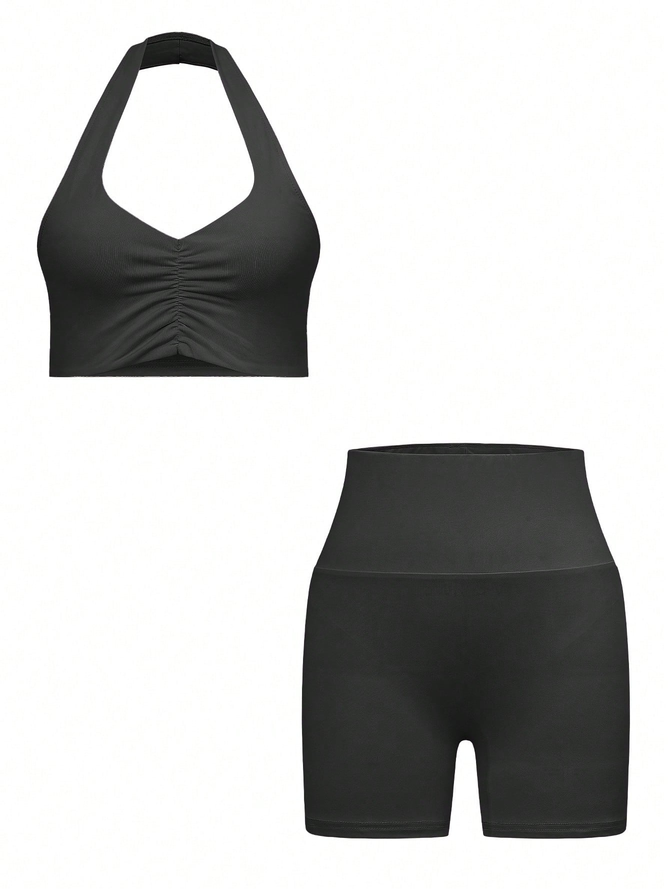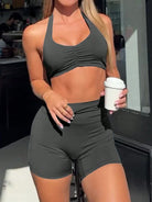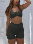 Women's Two Pieces Summer Sexy Sports Running Exercise Casual Solid Color Halter Vest And Shorts Set