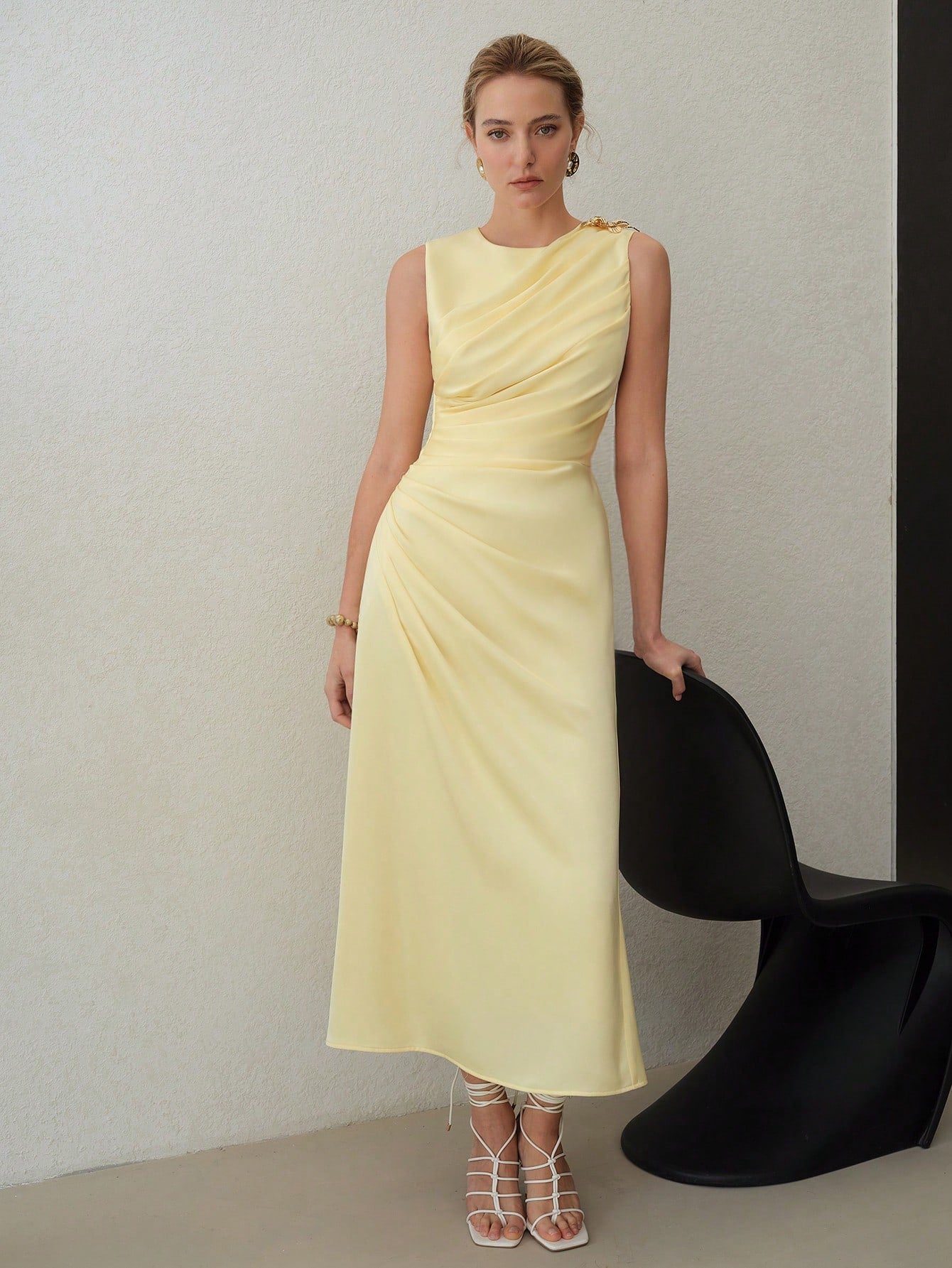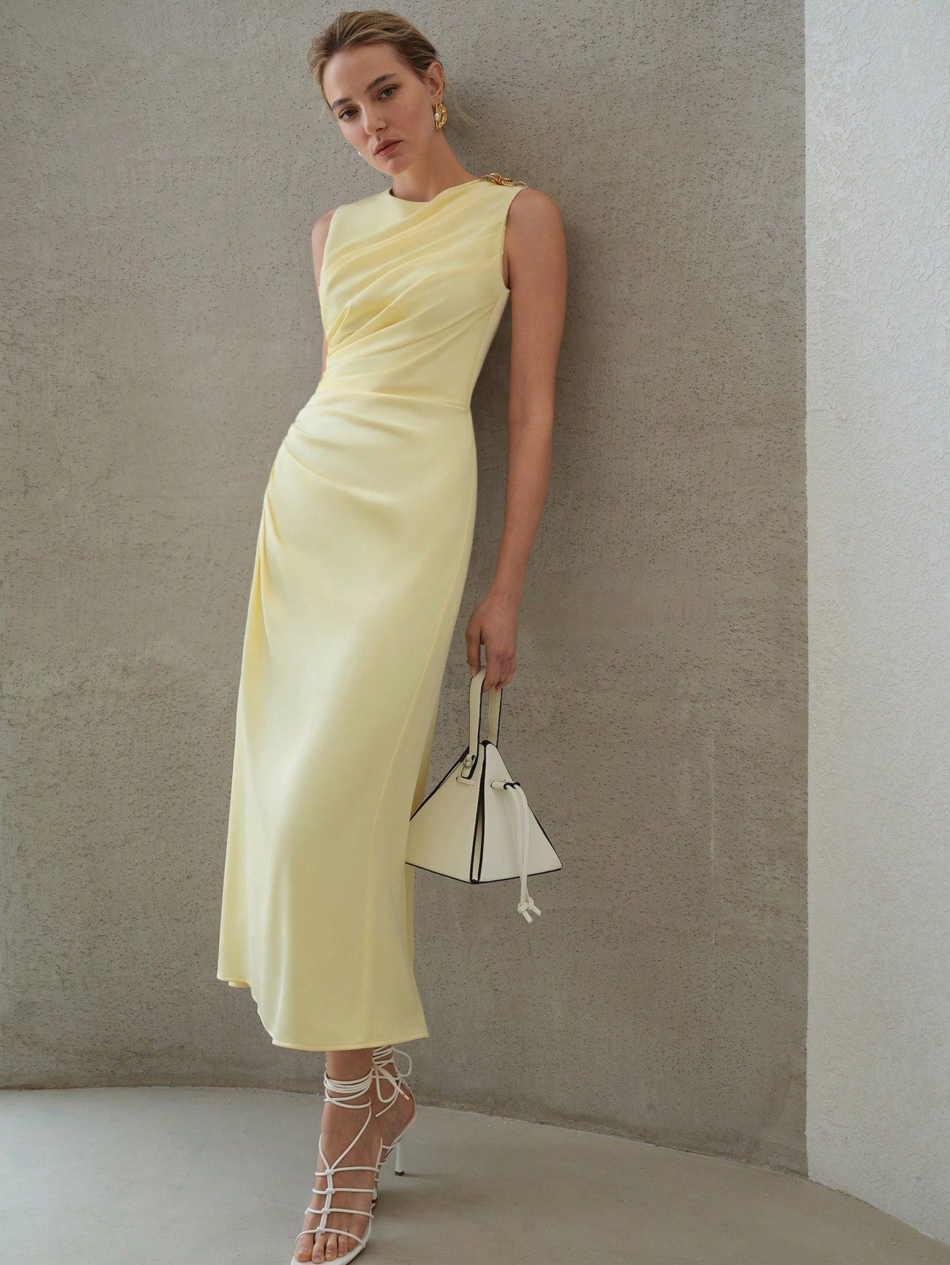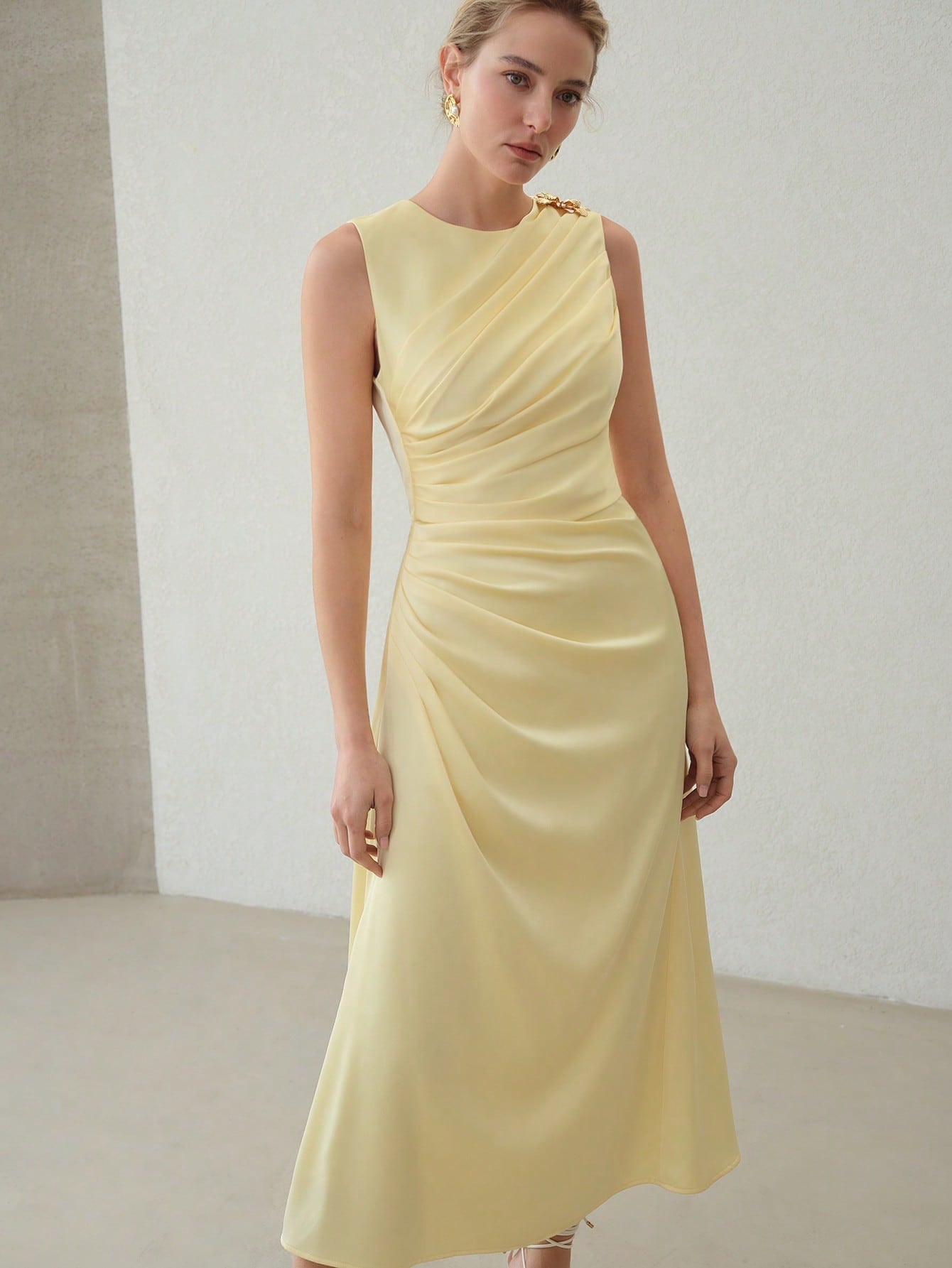 x PRISCILA & JIMENA MOTF PREMIUM RUCHED METAL BUTTERFLY MIDI DRESS