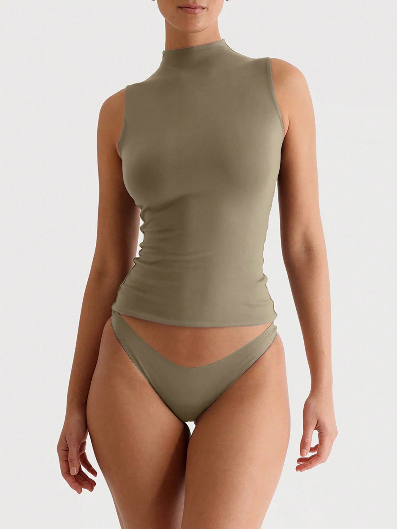 XLLAIS Crew Neck Sleeveless Solid Color Undershirt