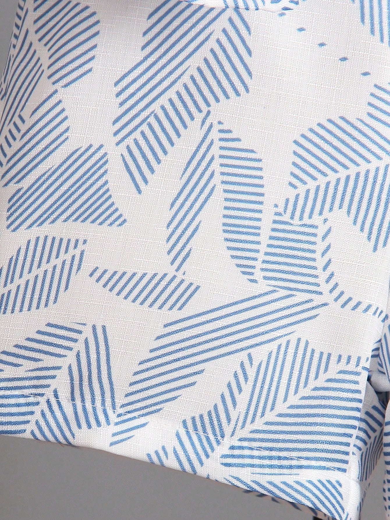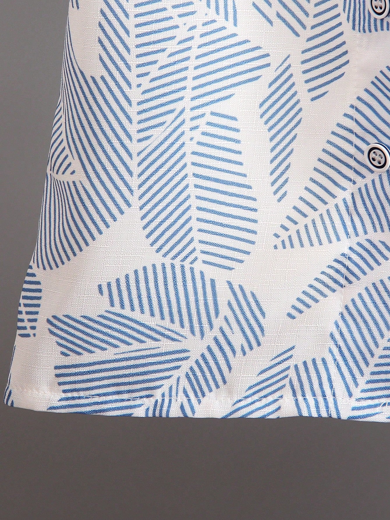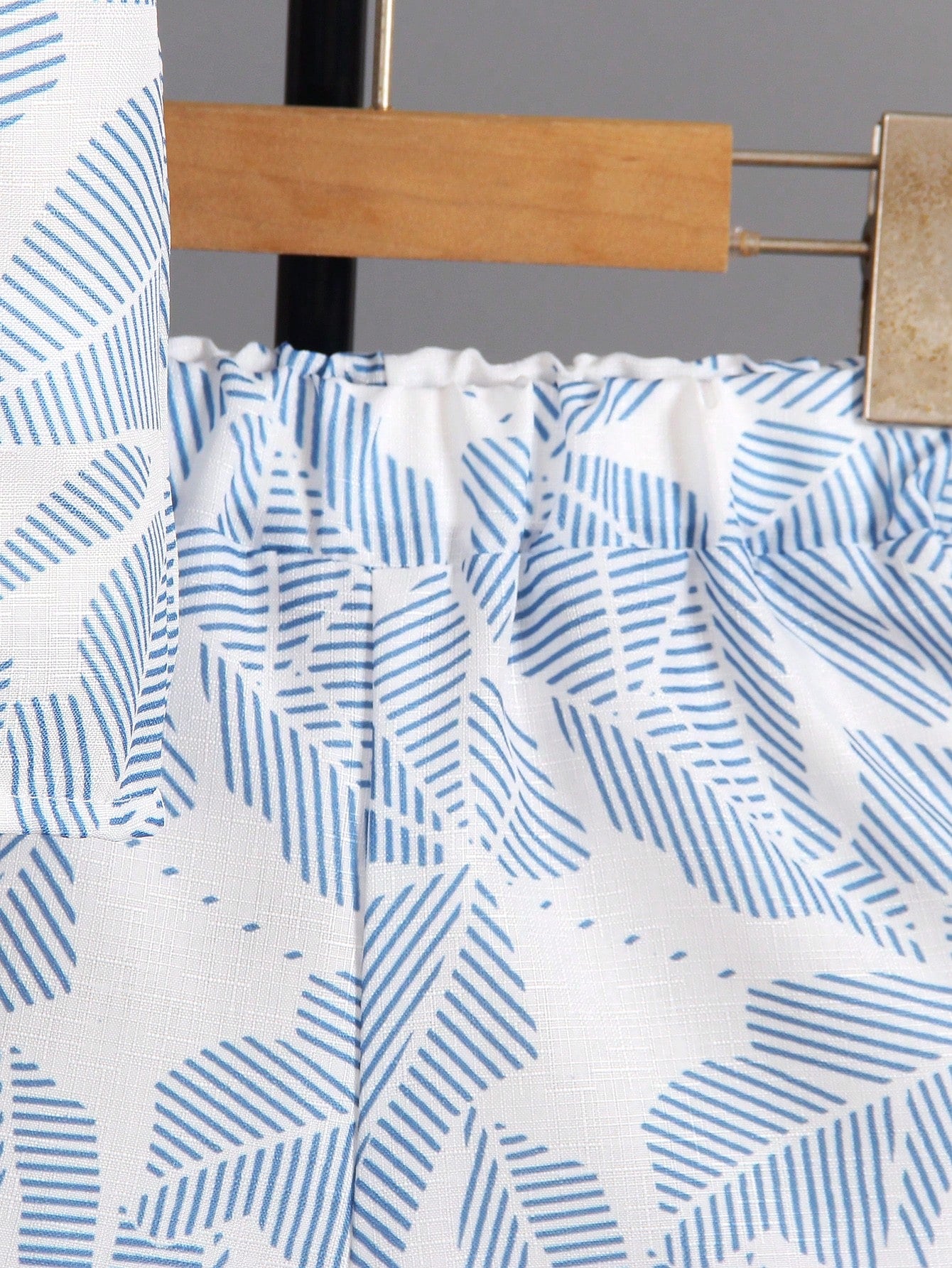 Young Boy 2-Piece Linen Tropical Plant Printed Short Sleeve Shirt And Shorts Set, Suitable For Holiday