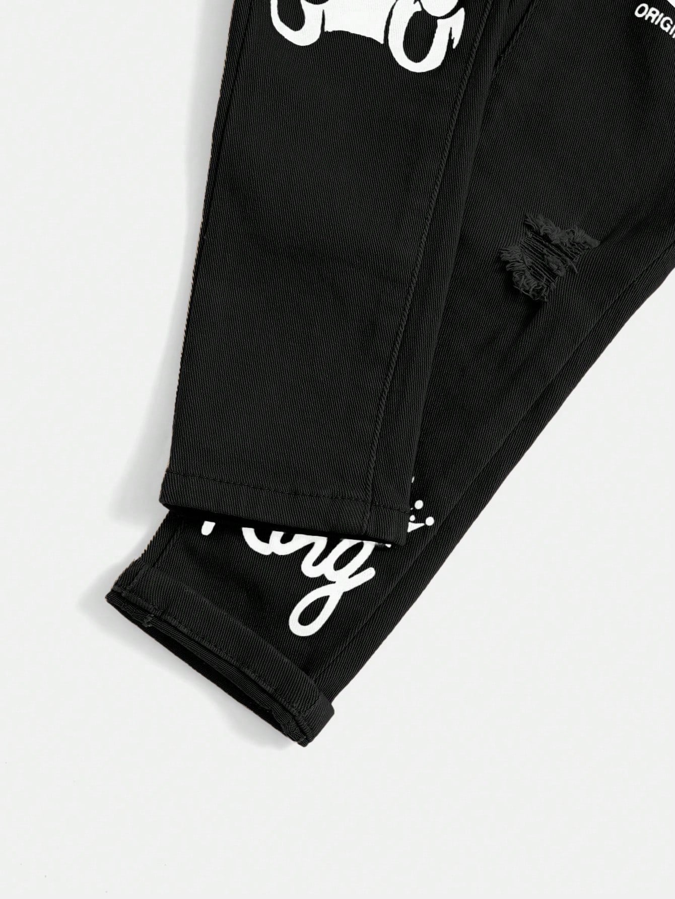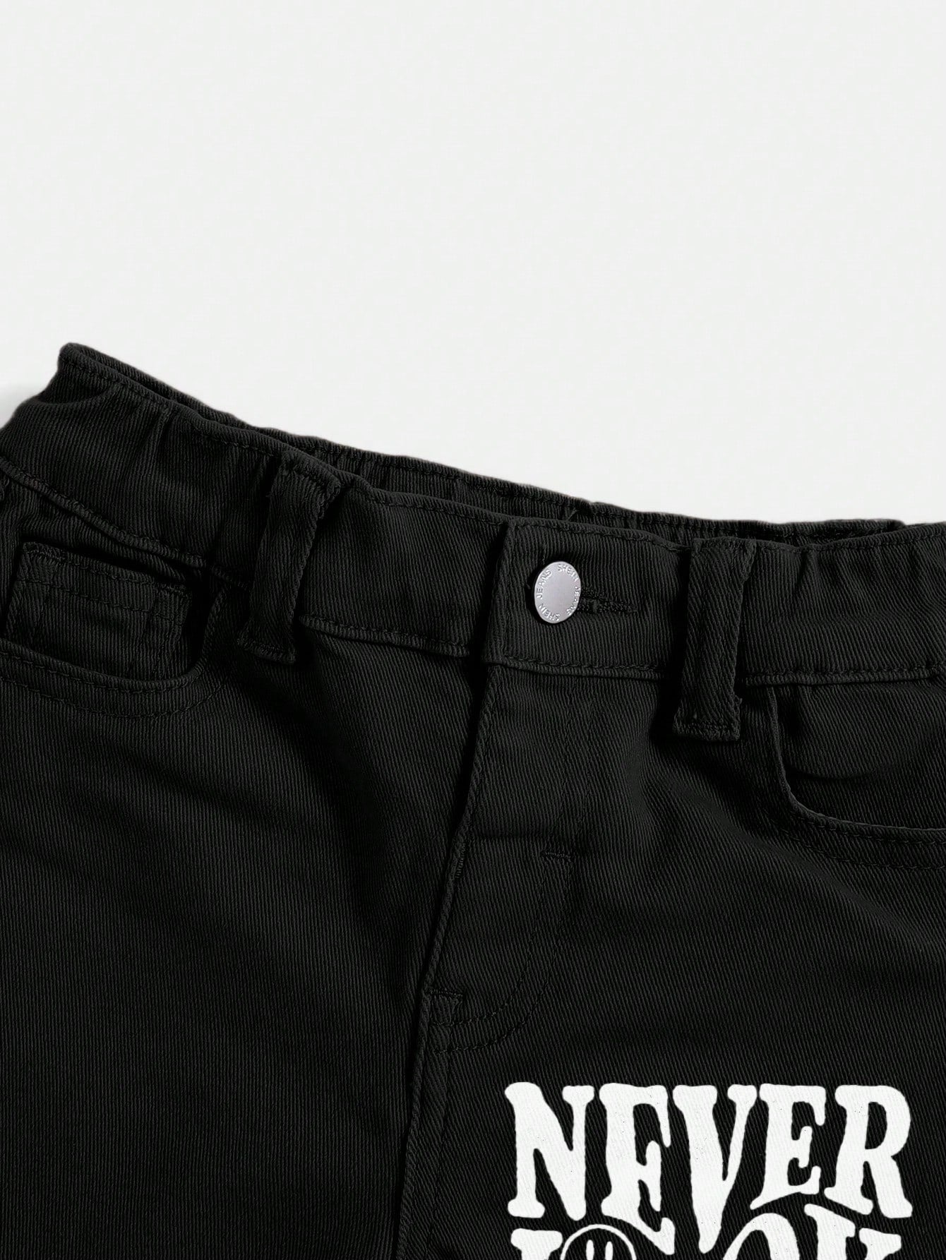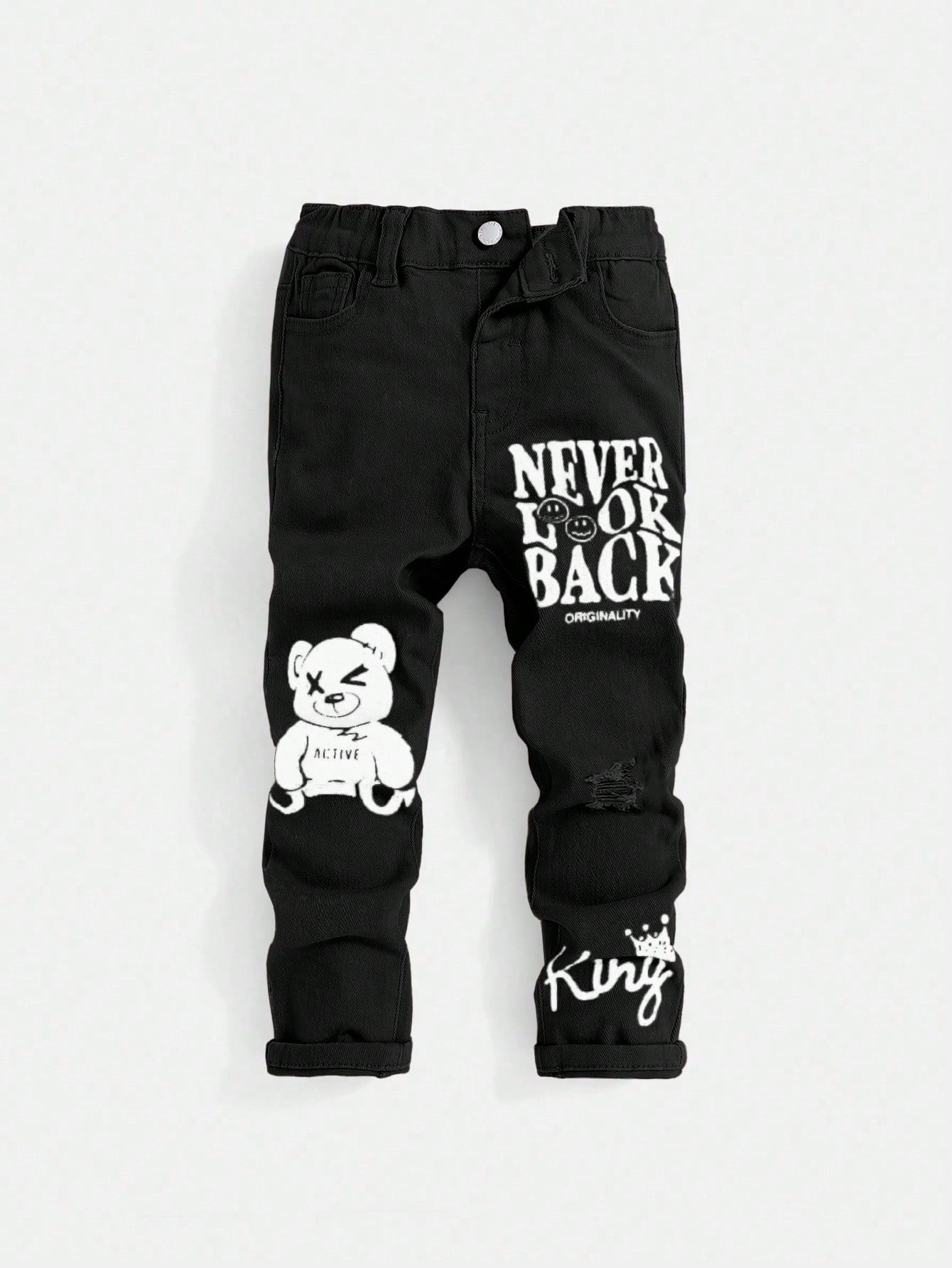 Young Boy Cartoon & Letter Printed Denim Jeans