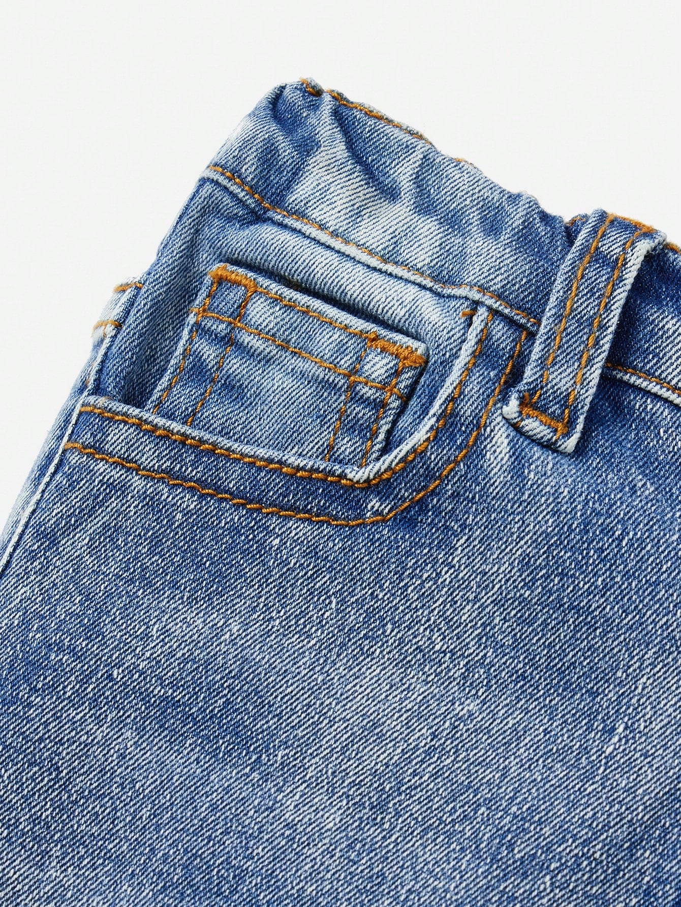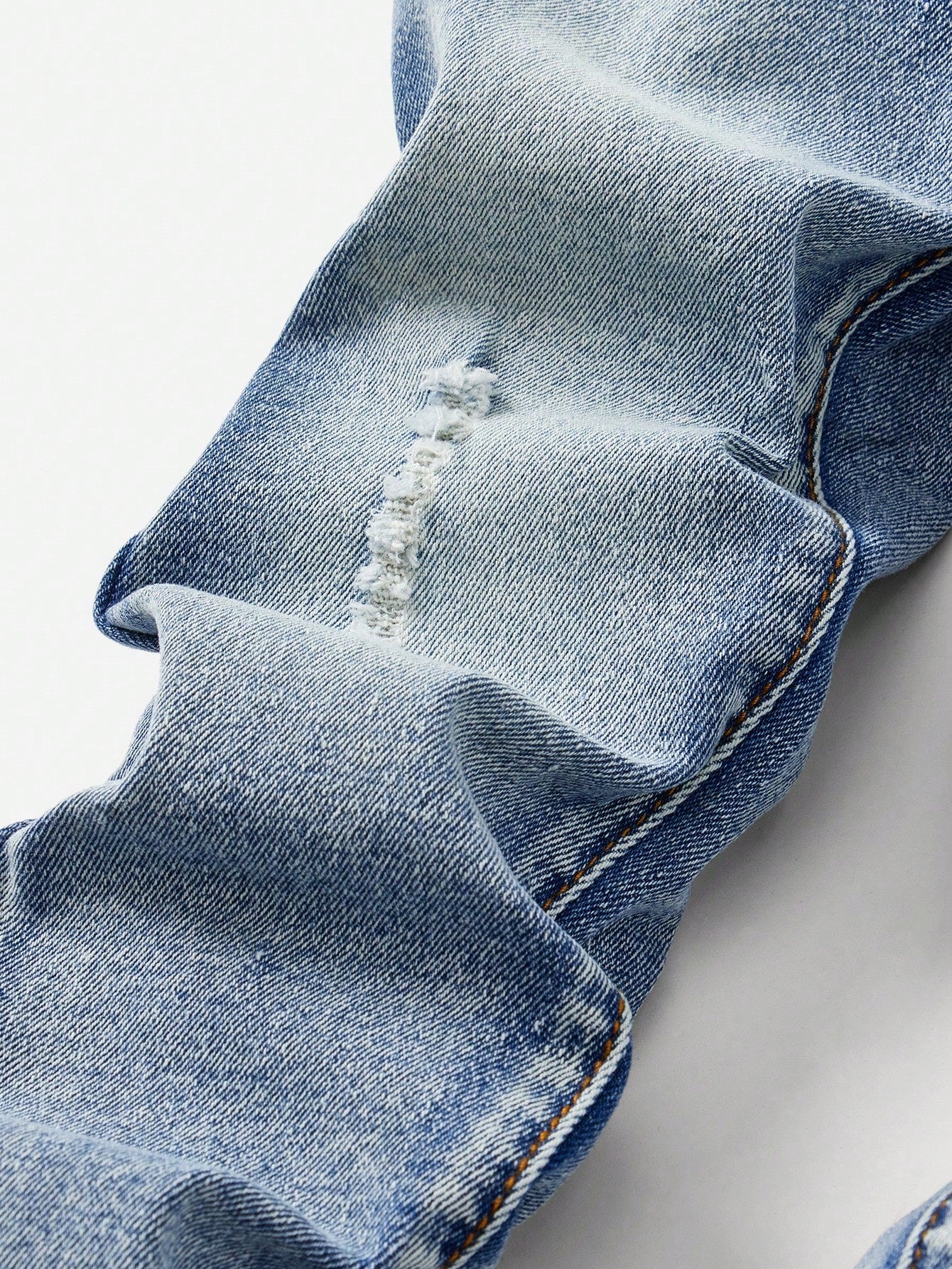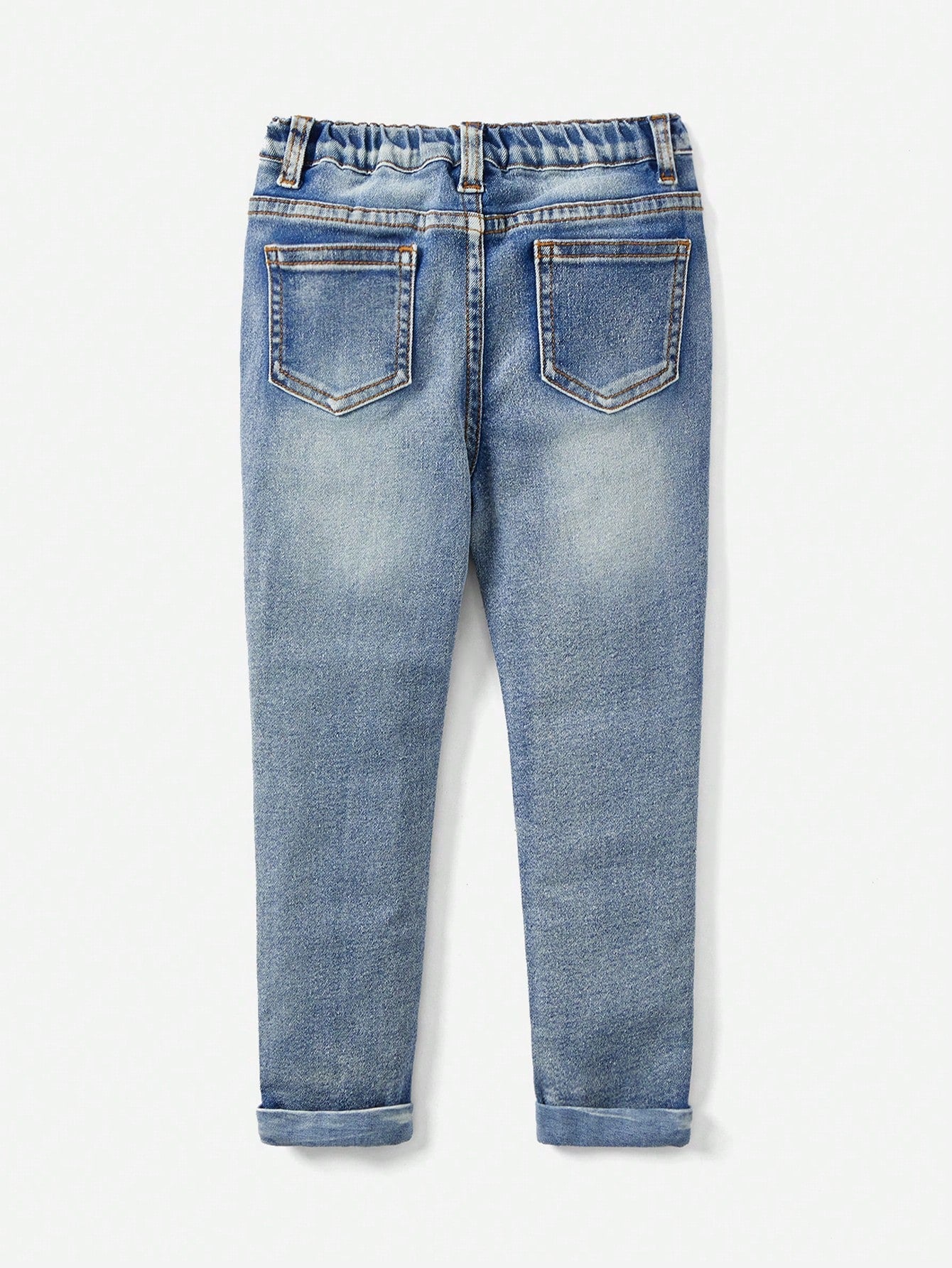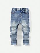 Young Boy Casual Mid-Waist Asymmetrical Distressed Jeans