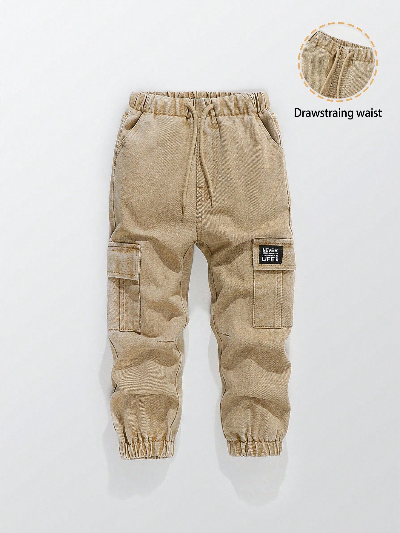 Young Boy Retro Casual Street Cool Multi-Pocket Loose Comfortable Drawstring Waist Cargo Pants