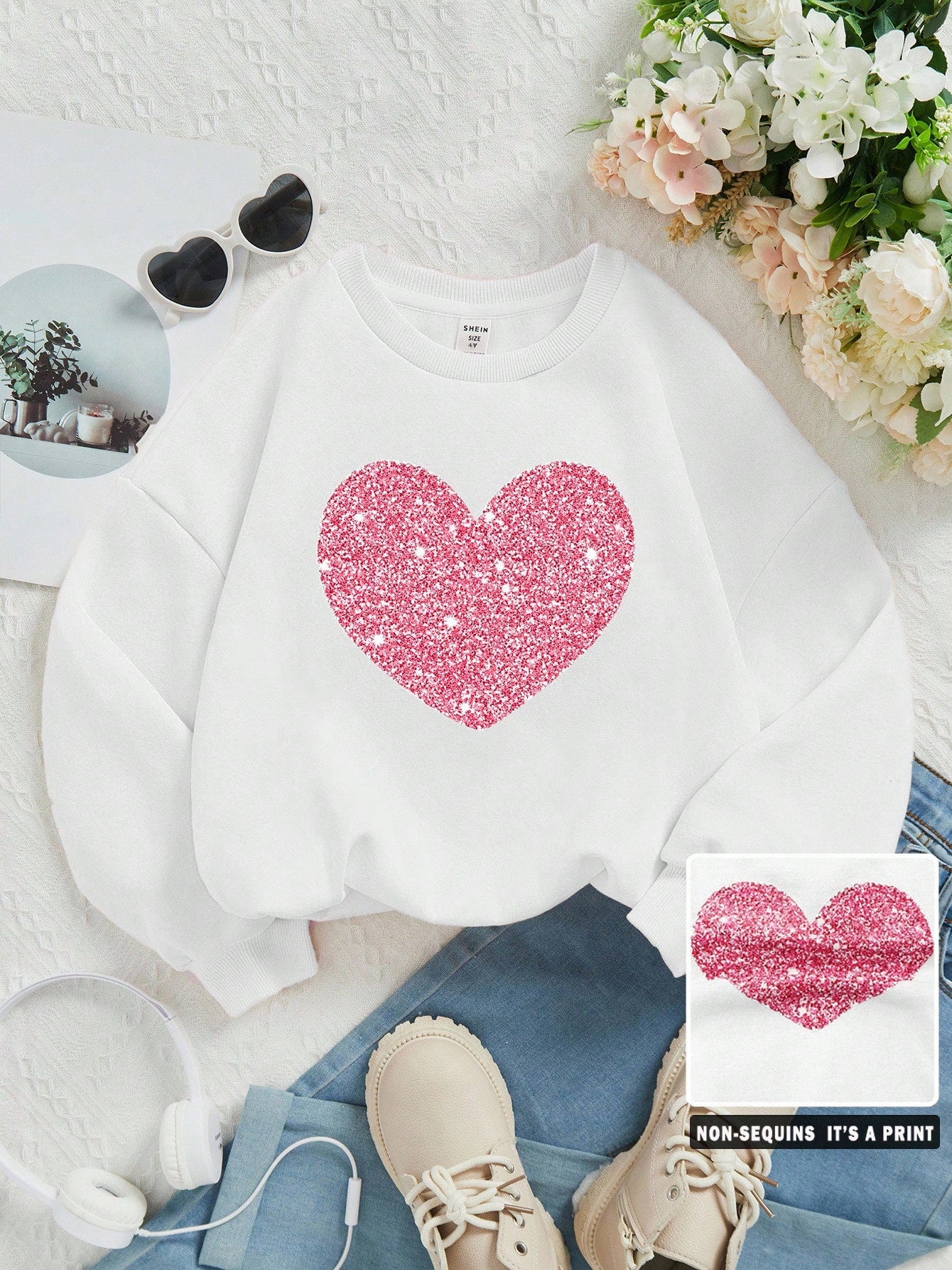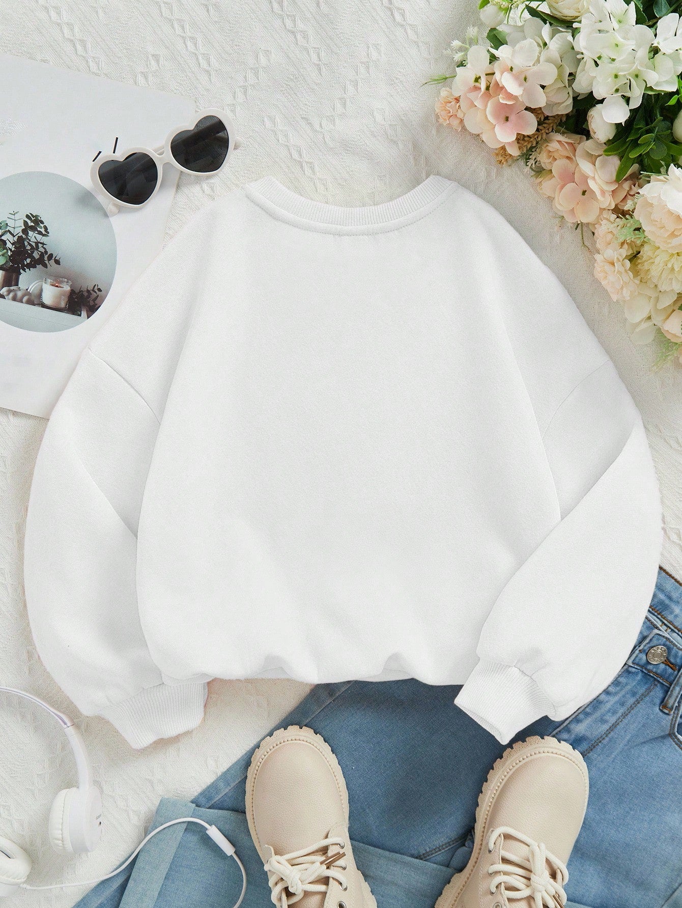 Young Girl Casual Cartoon Pattern Long Sleeve Crew Neck Sweatshirt