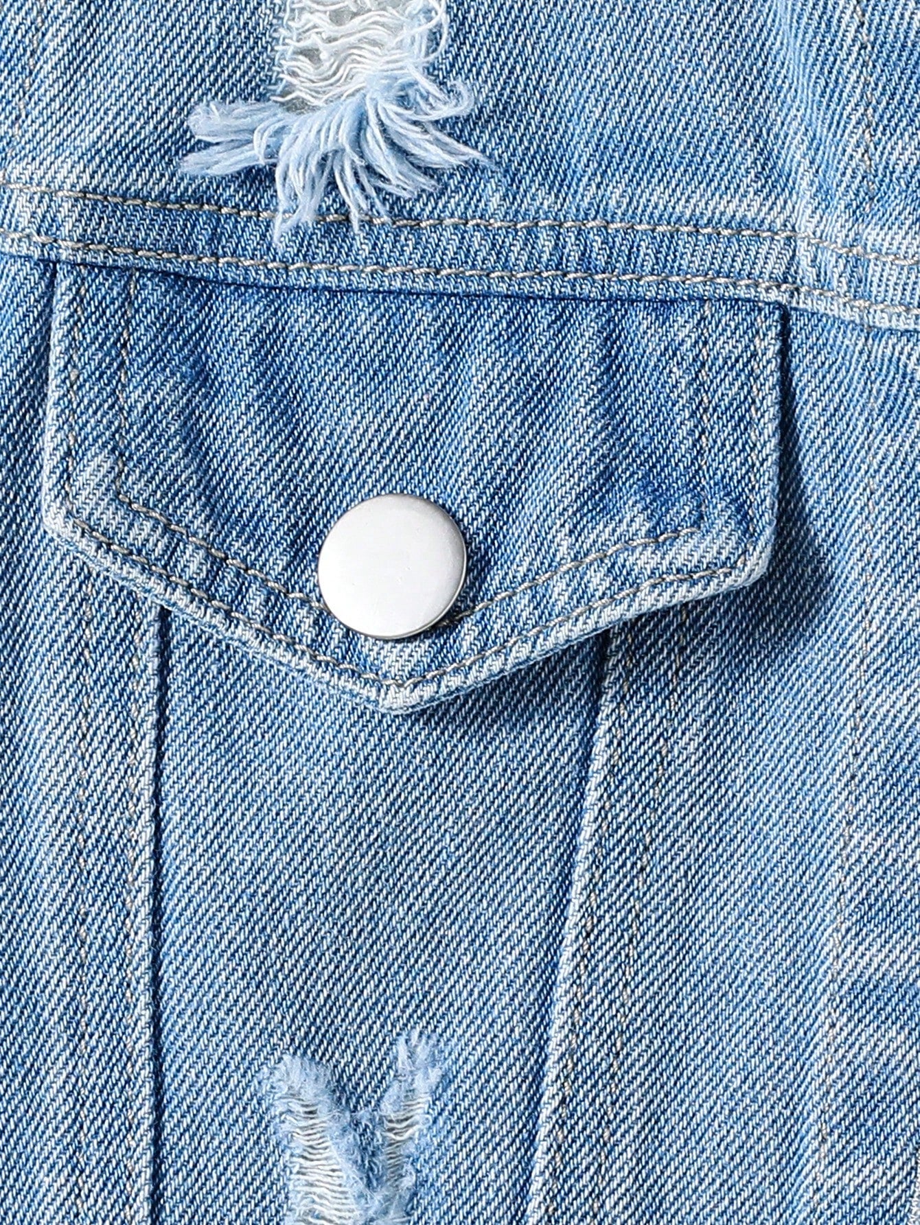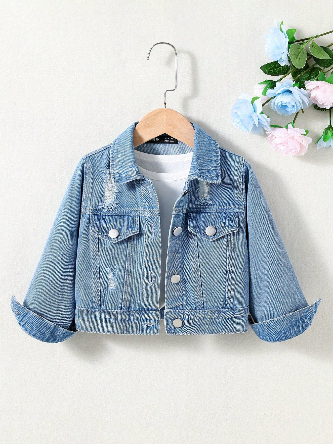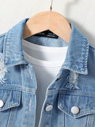 Young Girl Casual Distressed Denim Jacket - Washed