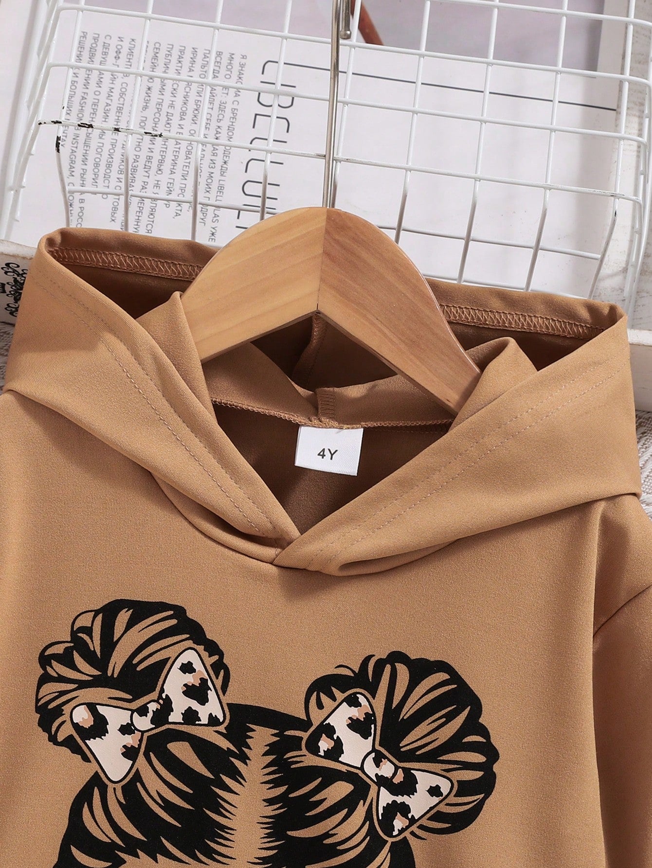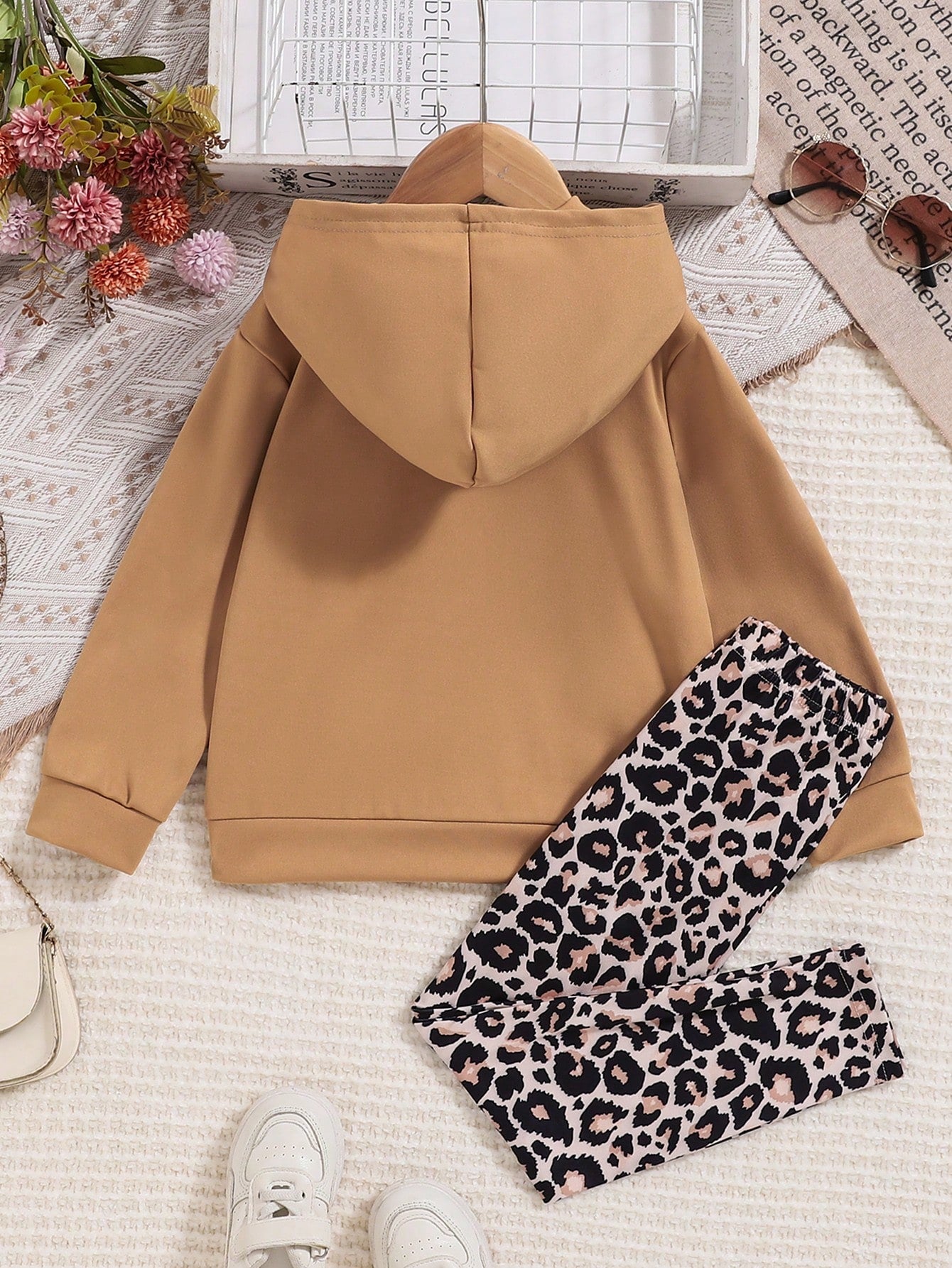 Young Girl Casual Letter Print Sweatshirt And Leopard Pants 2pcs Set