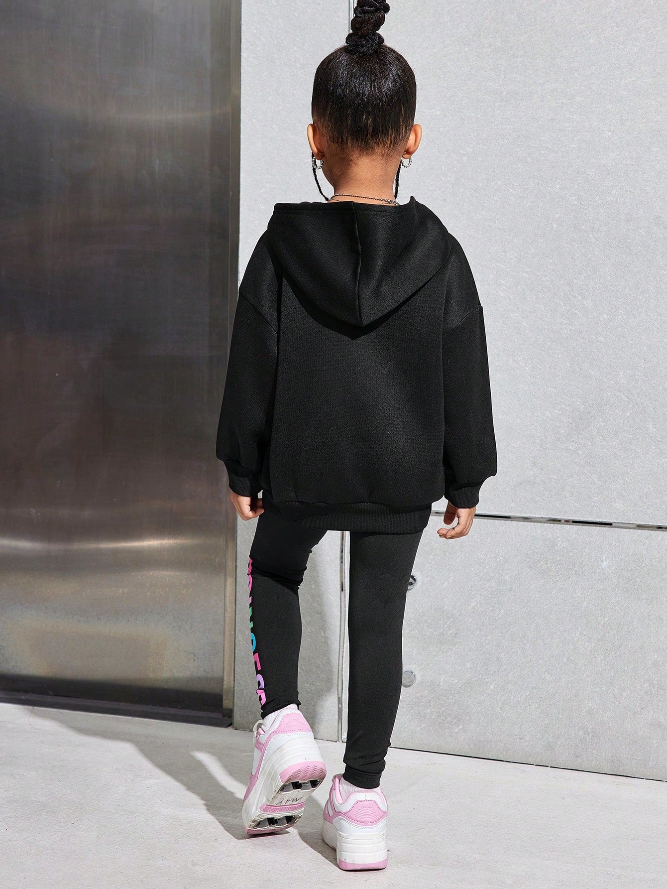 Young Girl Casual Street Thermal Lined Hoodie And Fitted Sweatpants Set