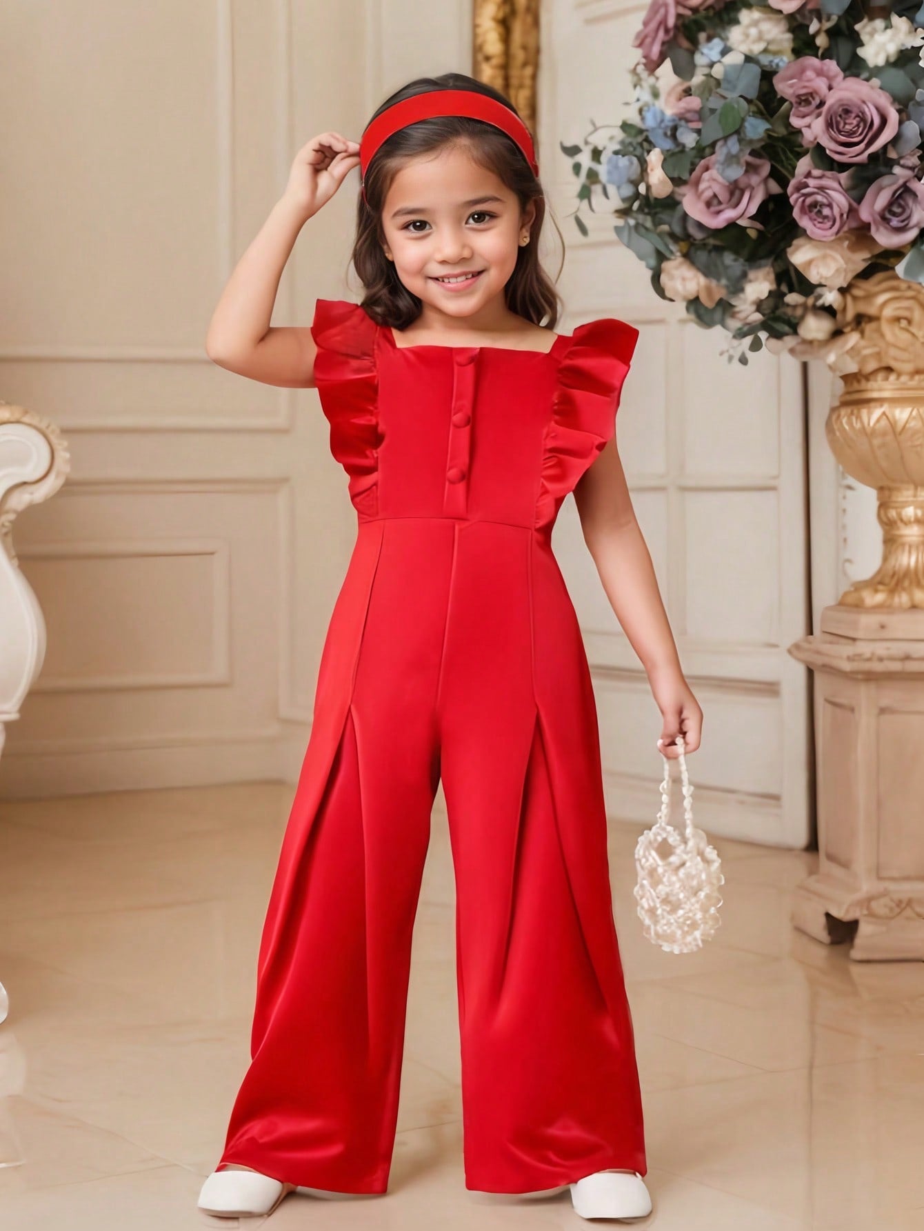 Young Girl' Ruffle Trim Wide Leg Jumpsuit