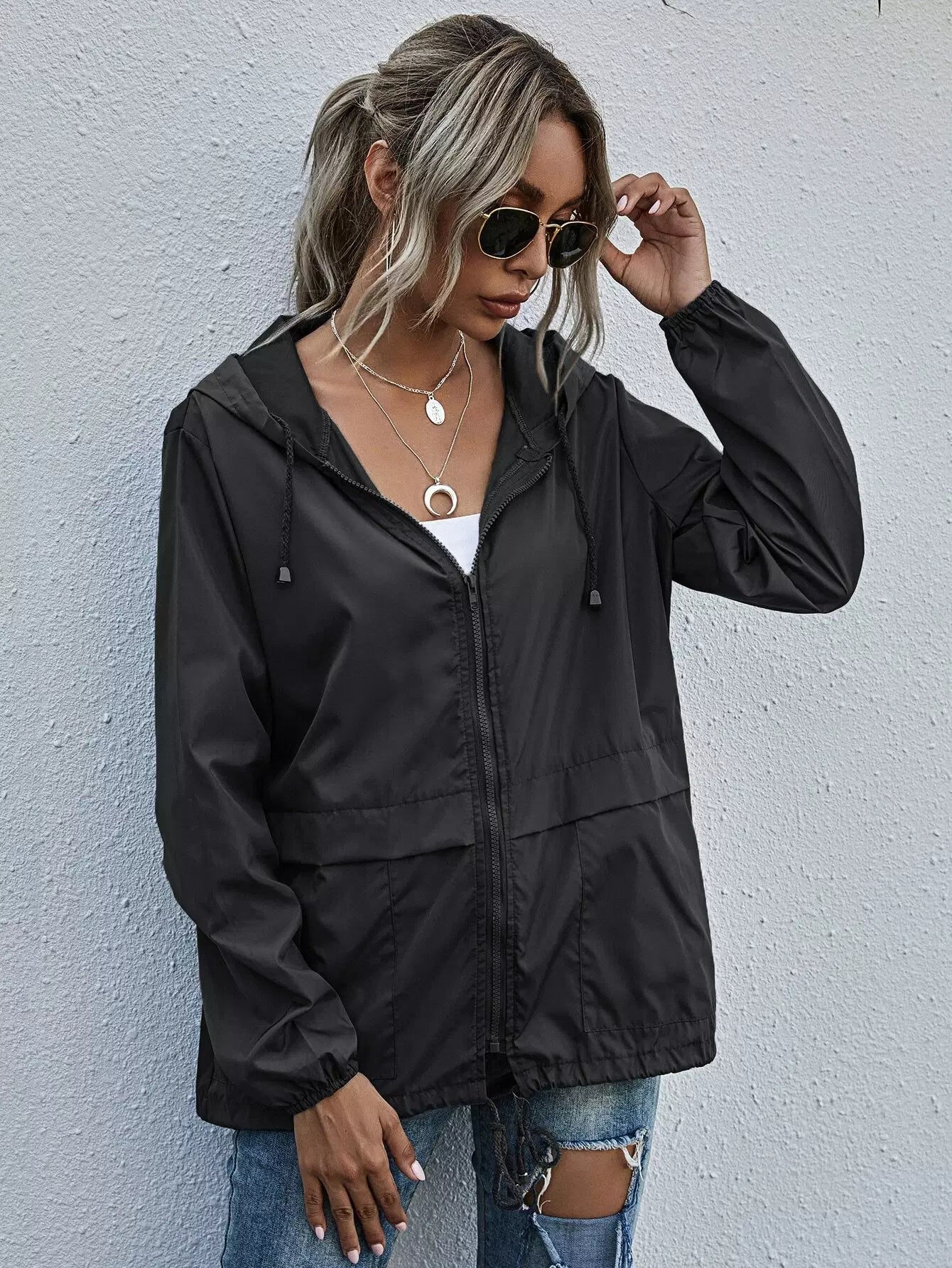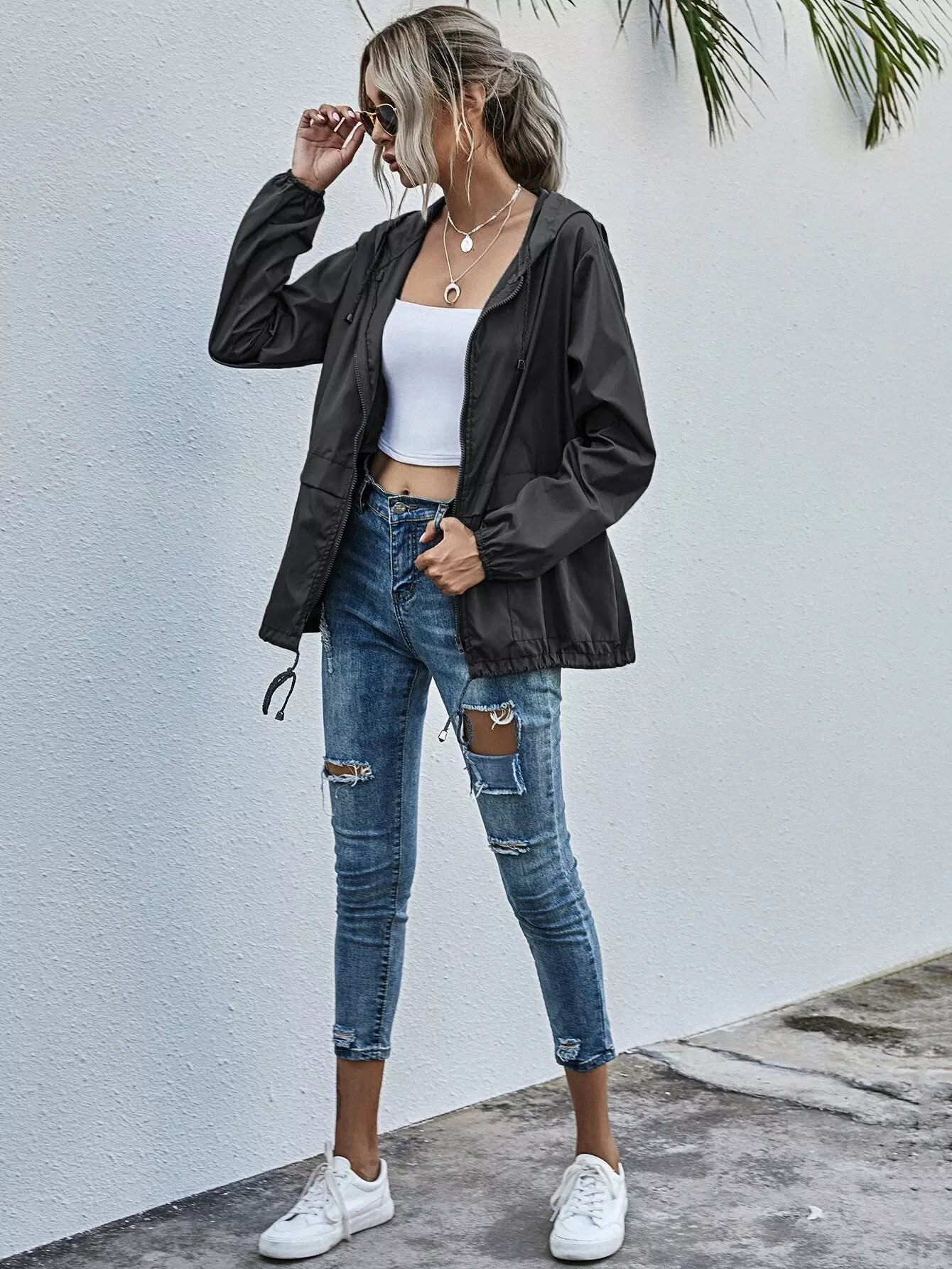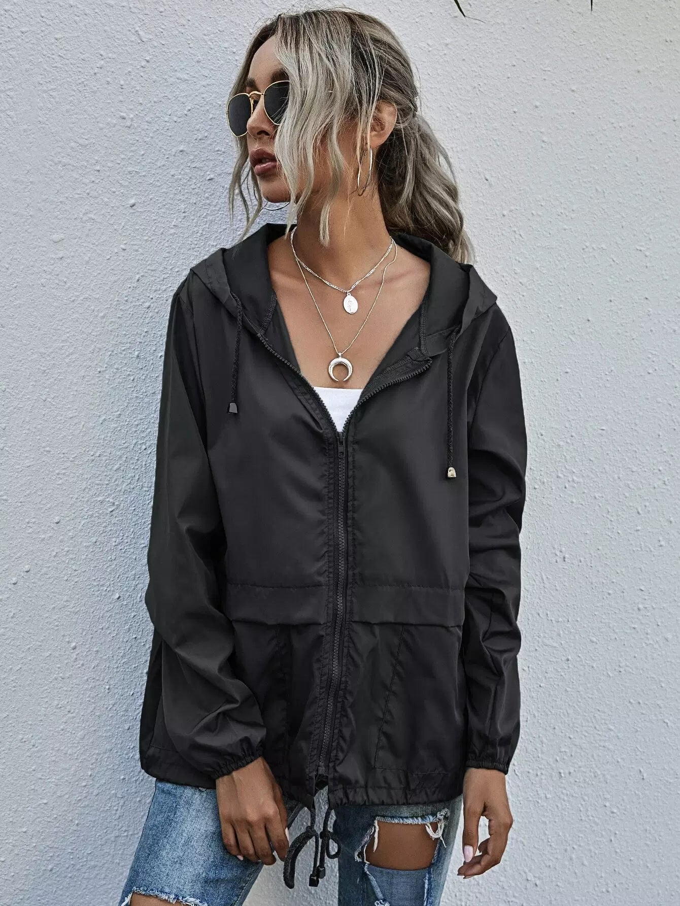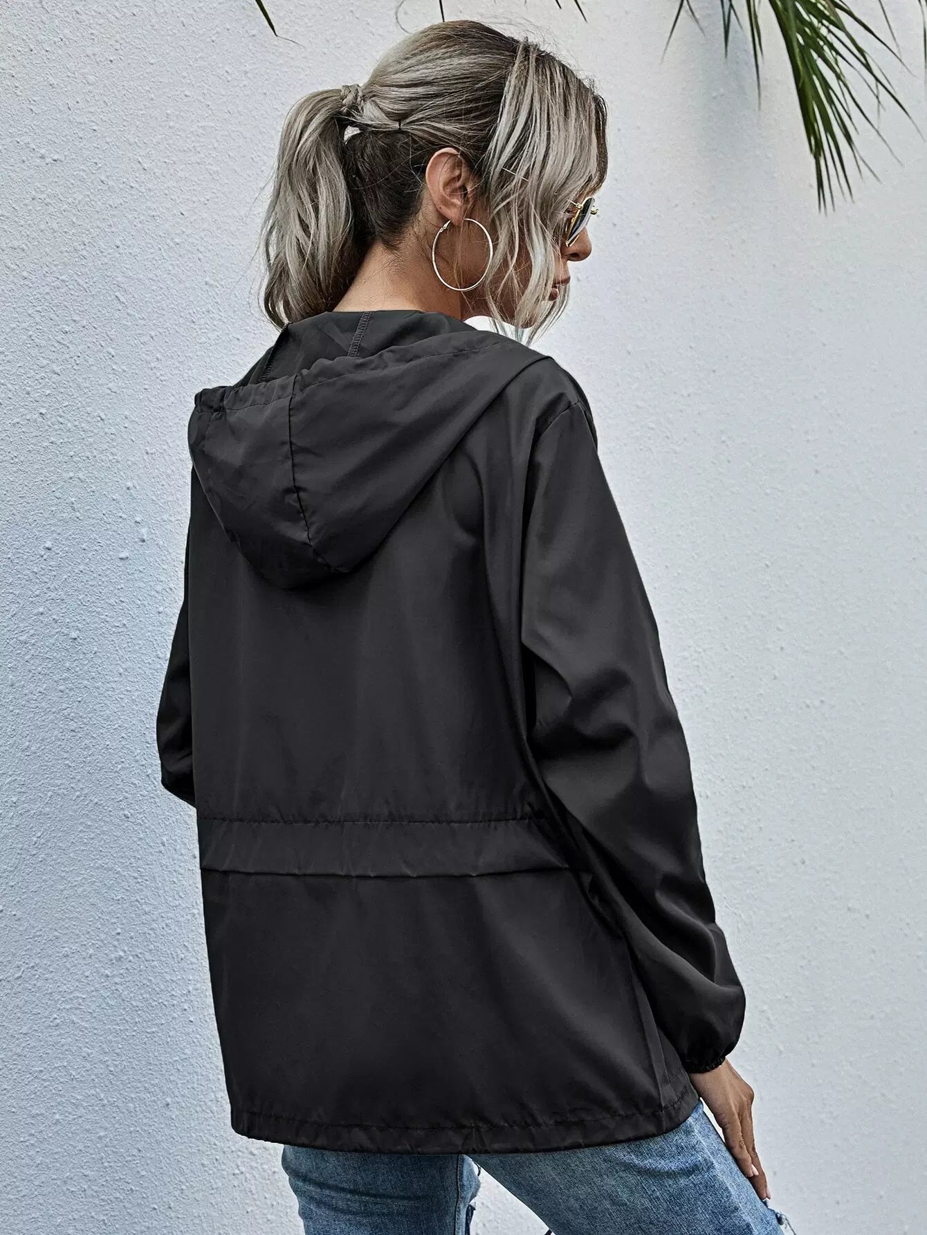 Zip Up Drawstring Windbreaker Jacket