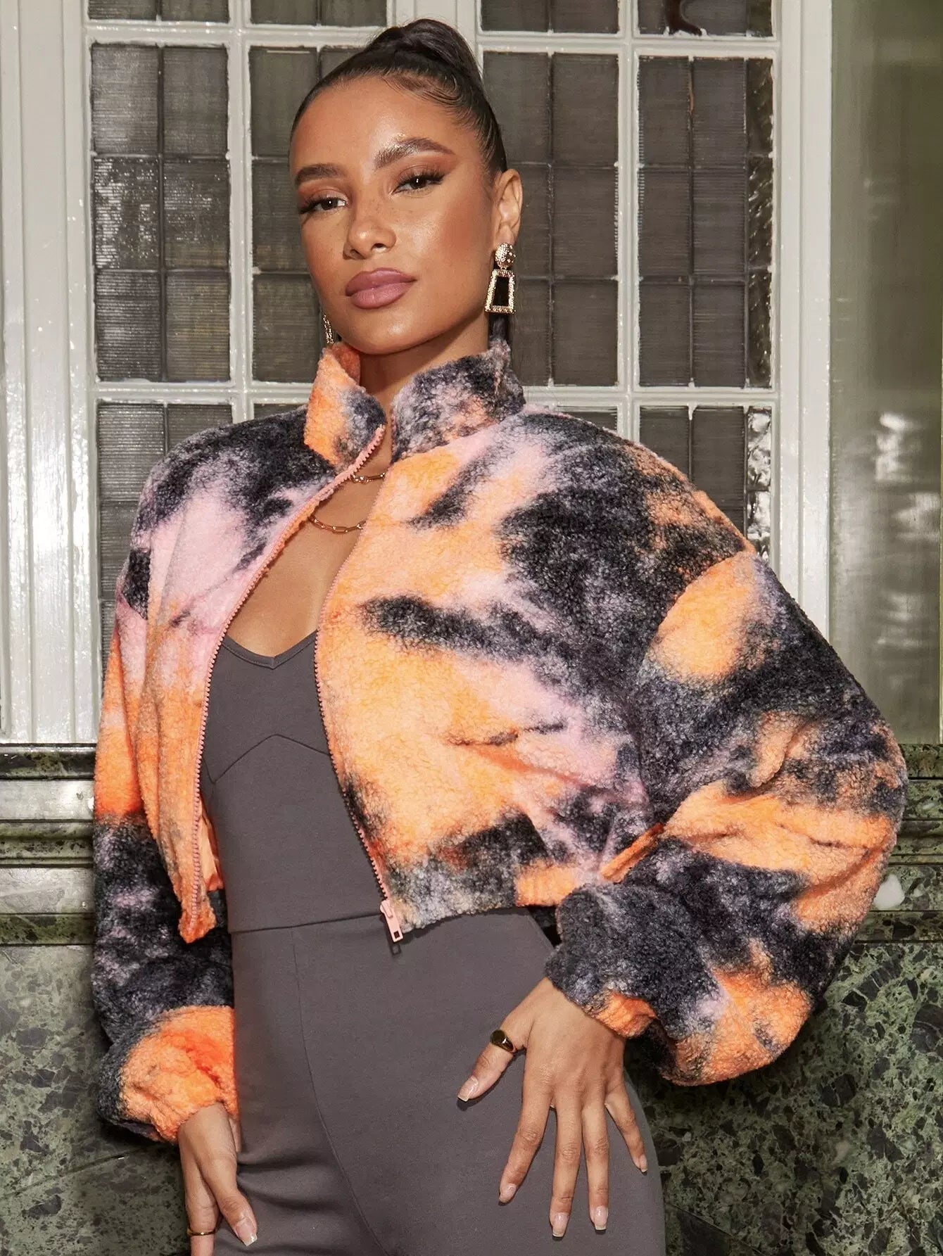 Women - Zipper Front Tie Dye Teddy Crop Jacket