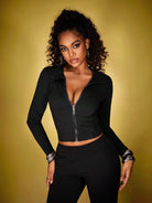 Zyxie 2pcs Solid Color Zip-Up Jacket & Fitted Leggings Set For Women, Autumn Fall Cloth For Women